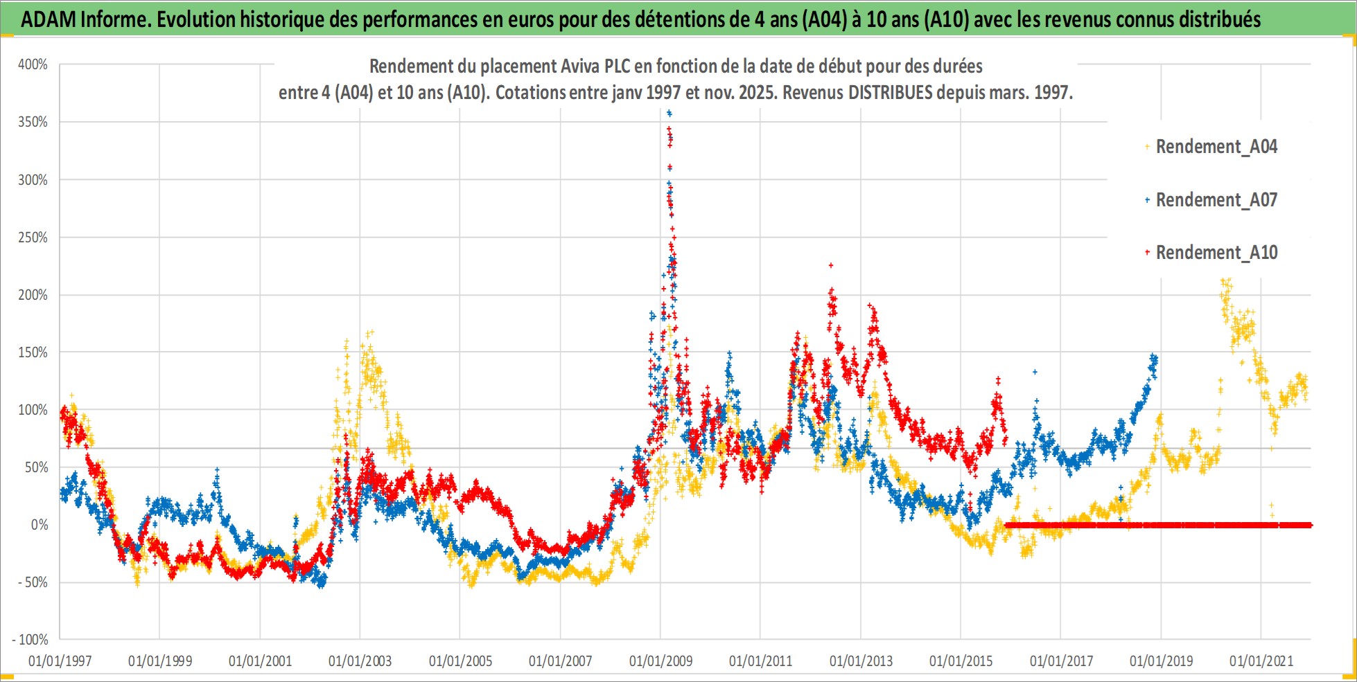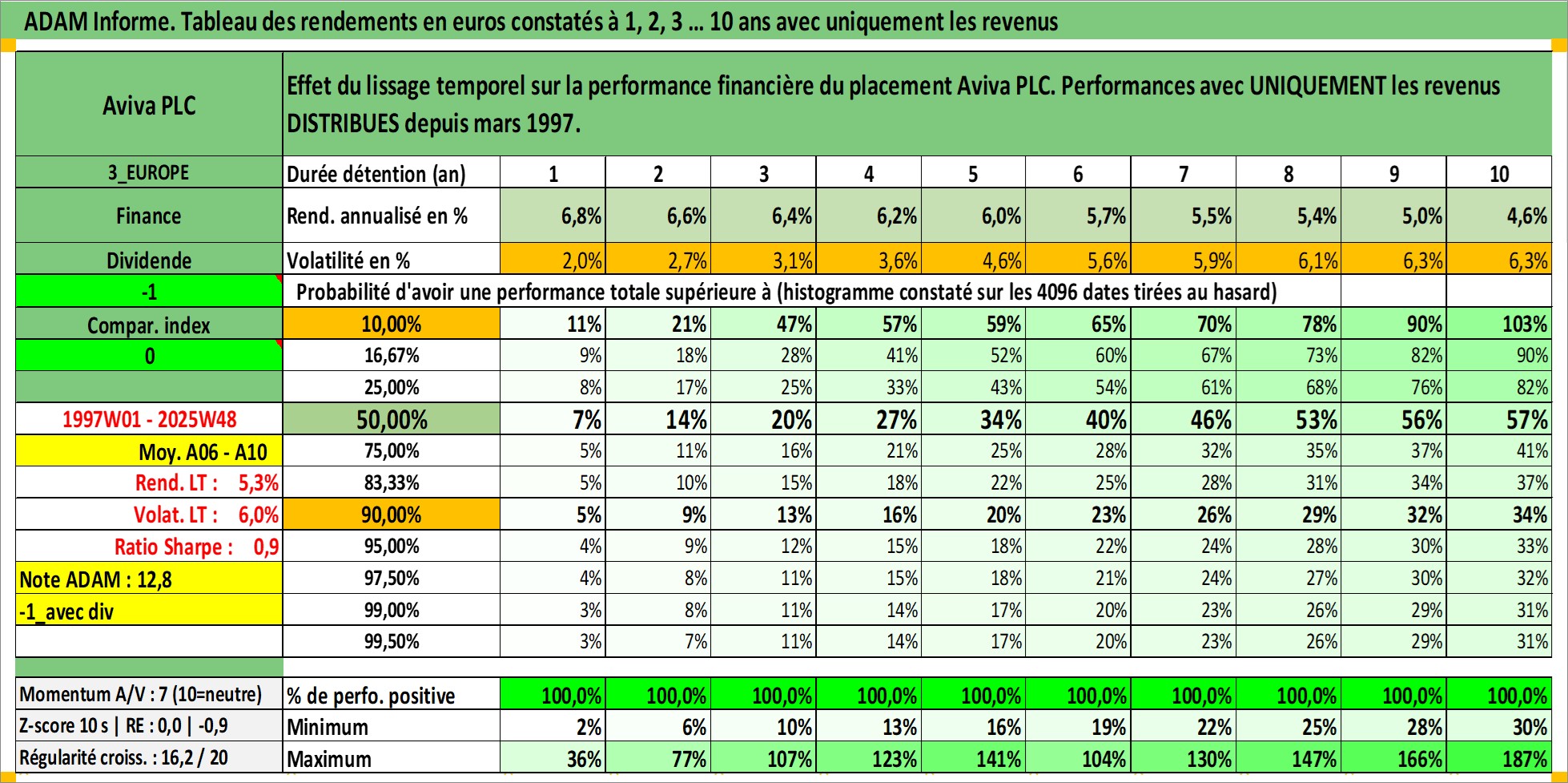 Site dédié aux investisseursPage dédiée sur site financeAnalyse des valorisations hebdomadaires de l'action Aviva PLC. Cet actif est cote en GBX. Les valorisations sont en contrevaleur EURO et couvrent les semaines 1997W01 a 2025W48. Les revenus de cet actif financier sont pris en compte depuis la semaine 1997W11. La note globale ESG de cet actif est estimee a 16.0 (apres rebasage entre 0 et 20).