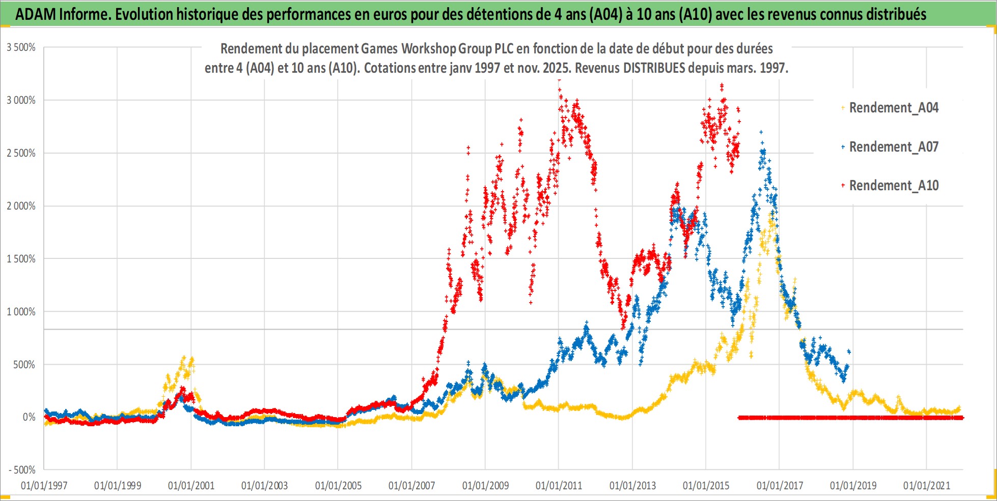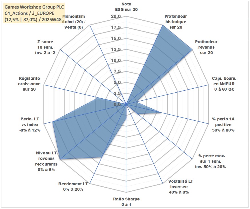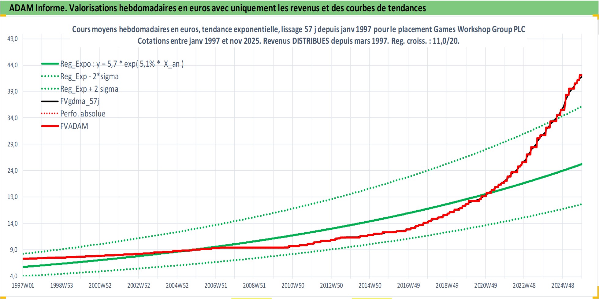 Site dédié aux investisseursPage dédiée sur site financeAnalyse des valorisations hebdomadaires de l'action Games Workshop Group PLC. Cet actif est cote en GBX. Les valorisations sont en contrevaleur EURO et couvrent les semaines 1997W01 a 2025W48. Les revenus de cet actif financier sont pris en compte depuis la semaine 1997W13. La note ESG de cet actif n'est pas connue.