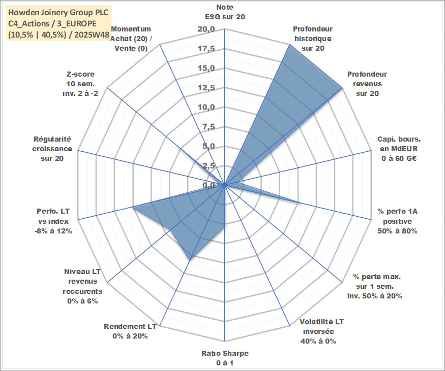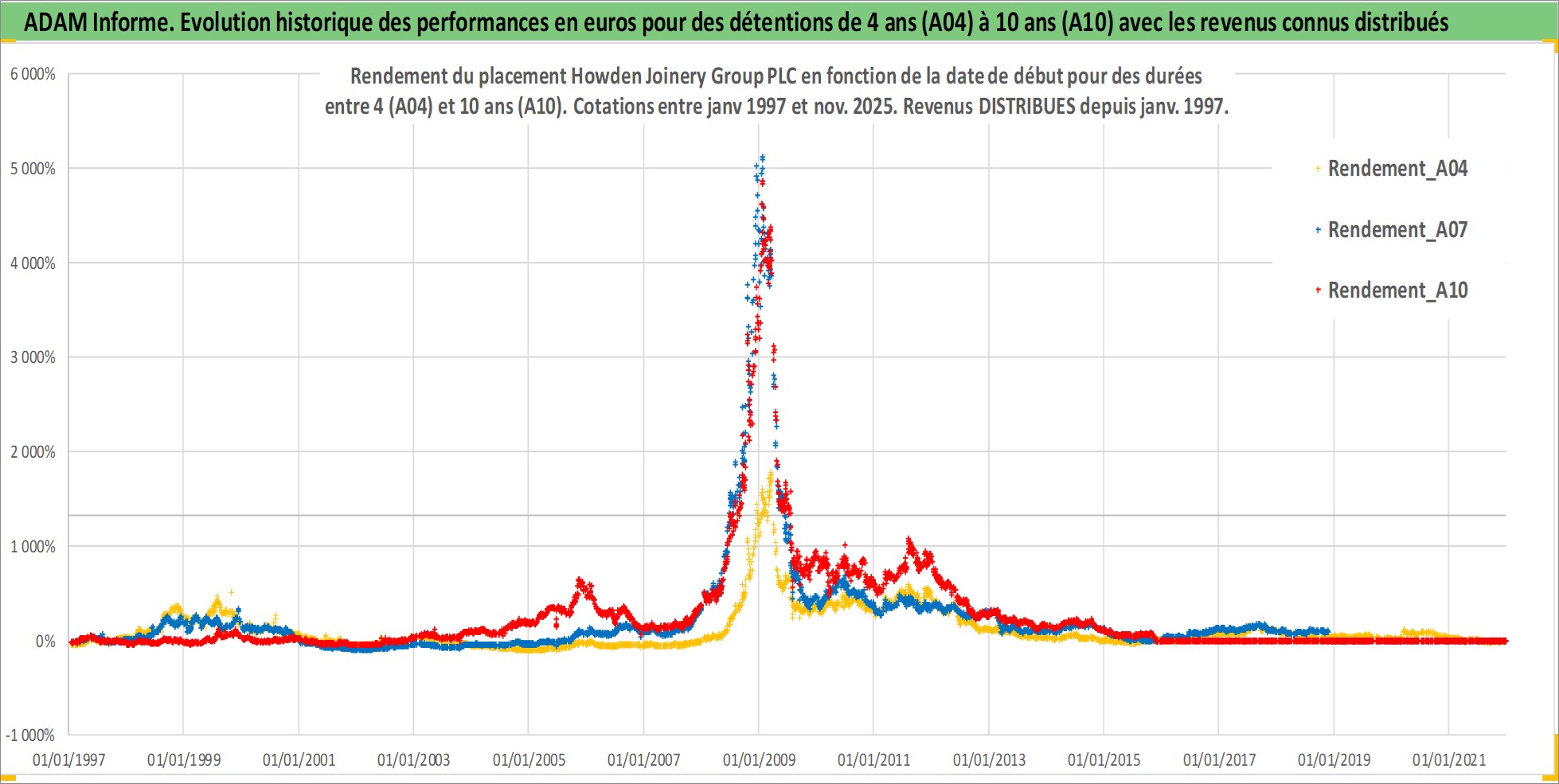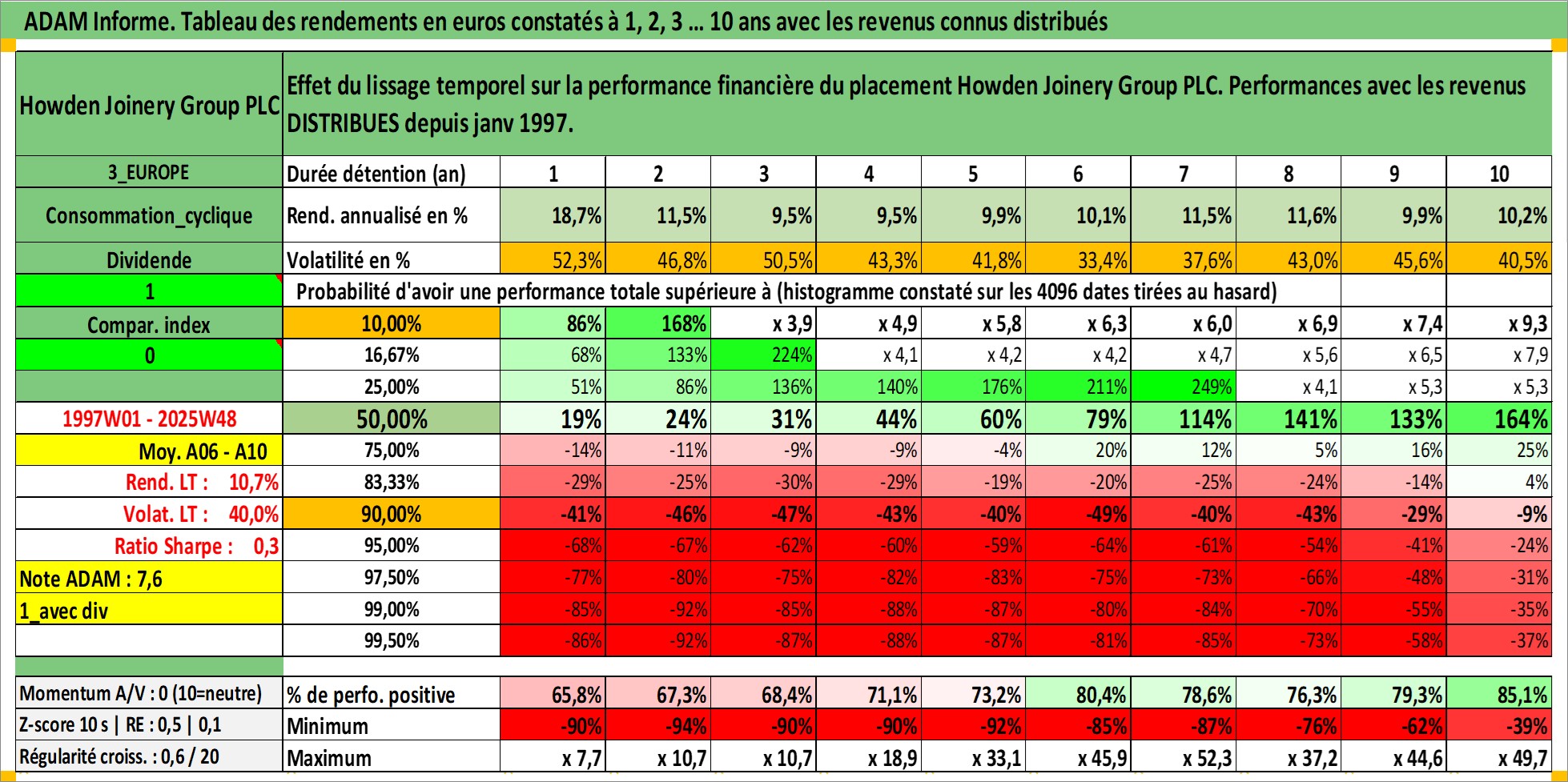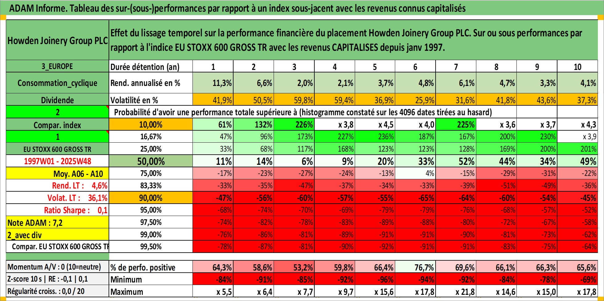 Site dédié aux investisseursPage dédiée sur site financeAnalyse des valorisations hebdomadaires de l'action Howden Joinery Group PLC. Cet actif est cote en GBX. Les valorisations sont en contrevaleur EURO et couvrent les semaines 1997W01 a 2025W48. Les revenus de cet actif financier sont pris en compte depuis la semaine 1997W02. La note ESG de cet actif n'est pas connue.