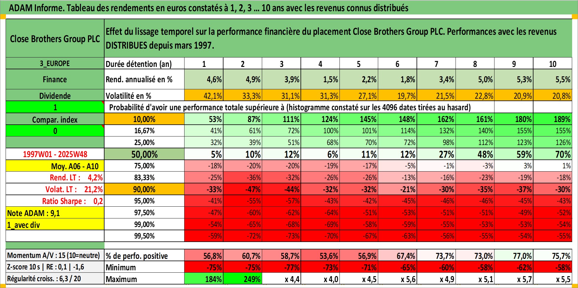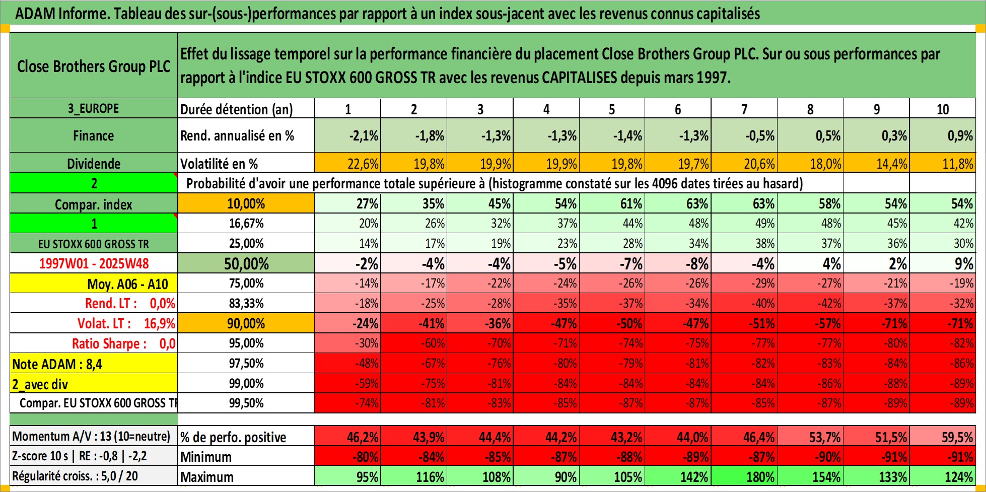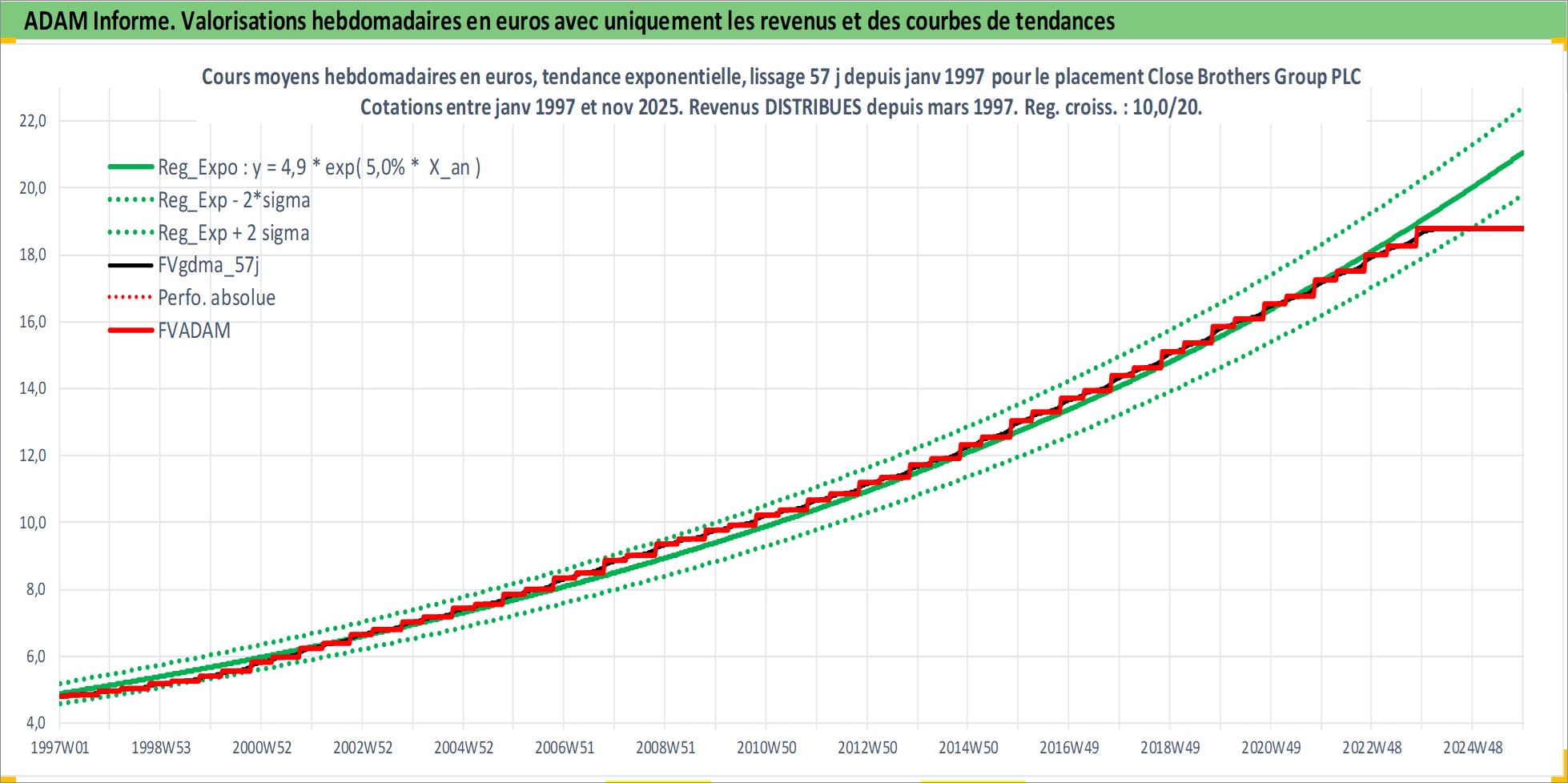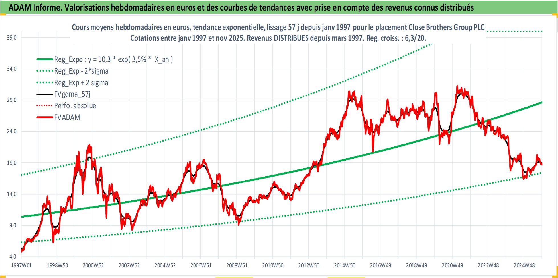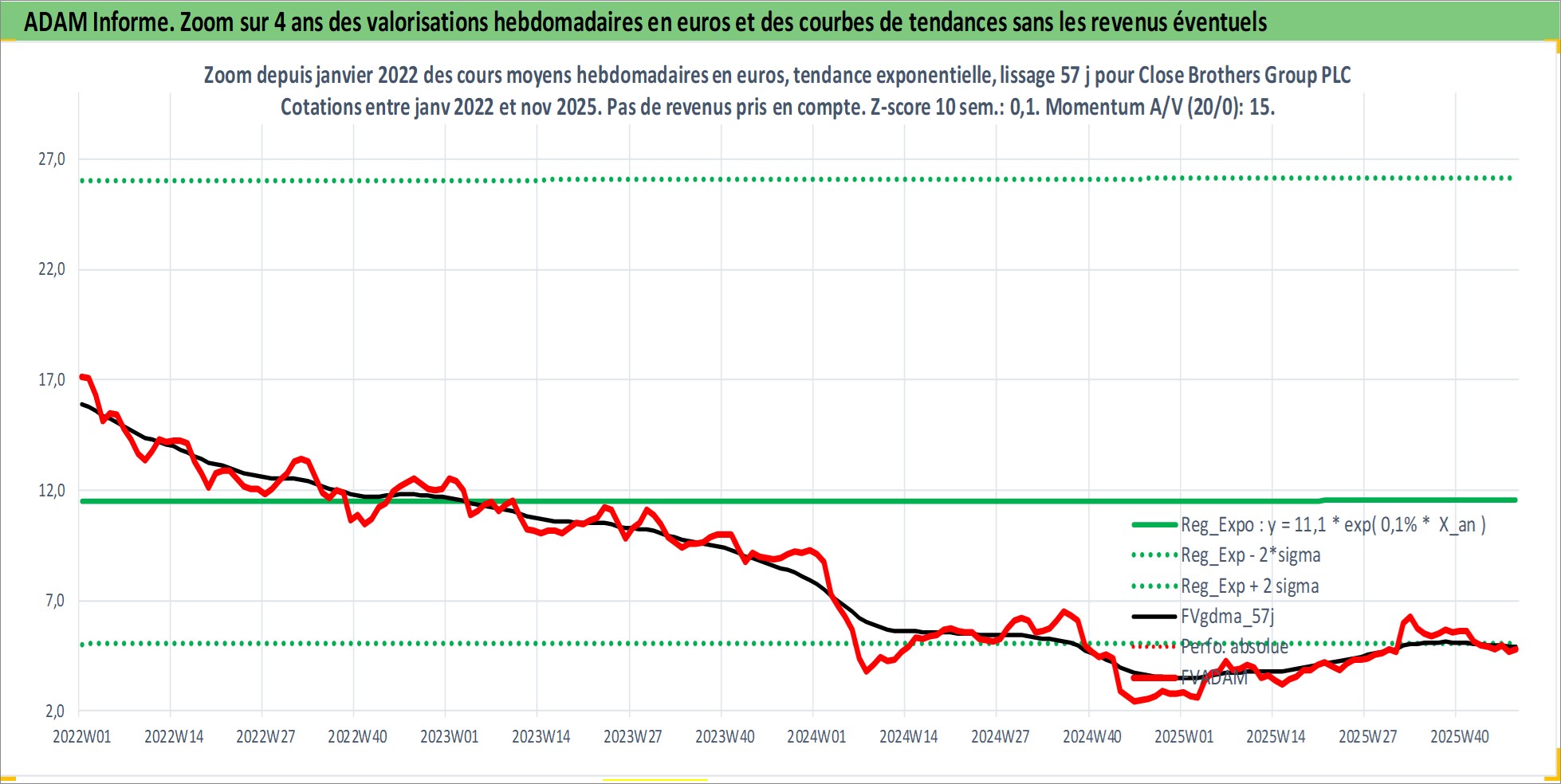 Site dédié aux investisseursPage dédiée sur site financeAnalyse des valorisations hebdomadaires de l'action Close Brothers Group PLC. Cet actif est cote en GBX. Les valorisations sont en contrevaleur EURO et couvrent les semaines 1997W01 a 2025W48. Les revenus de cet actif financier sont pris en compte depuis la semaine 1997W11. La note ESG de cet actif n'est pas connue.