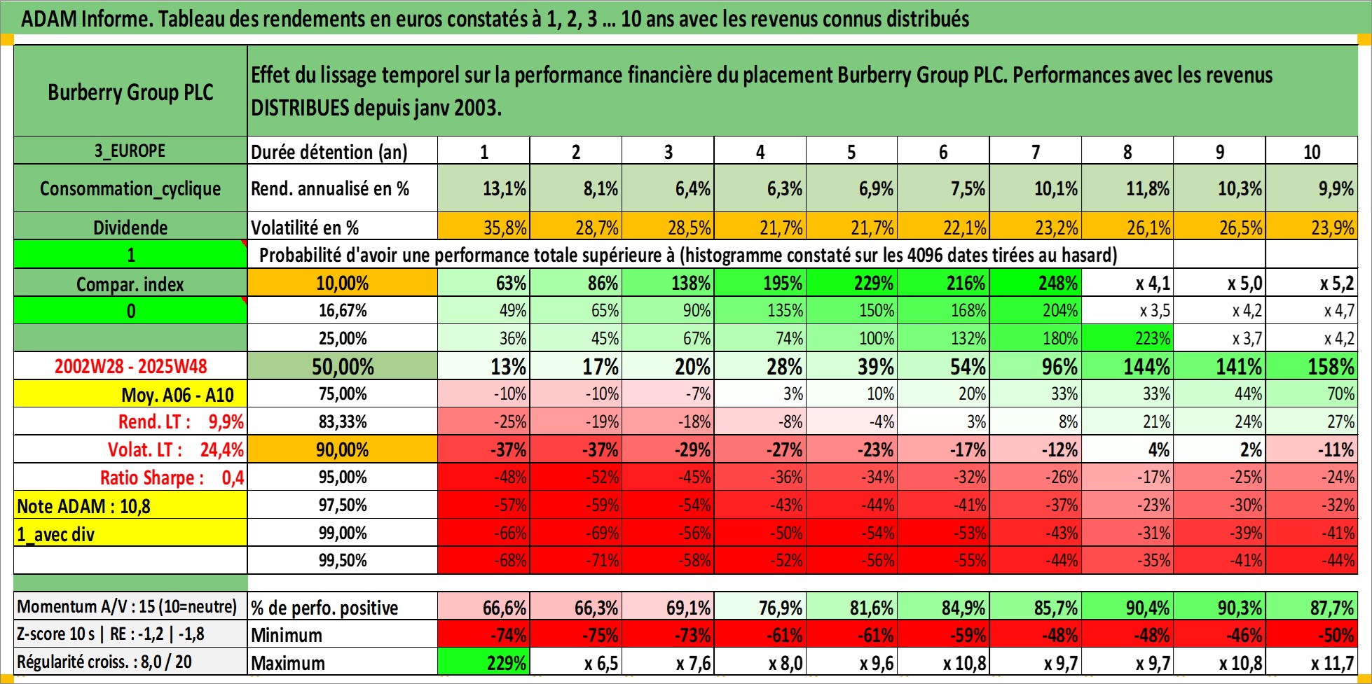 Dernière perfo 10 ans en %