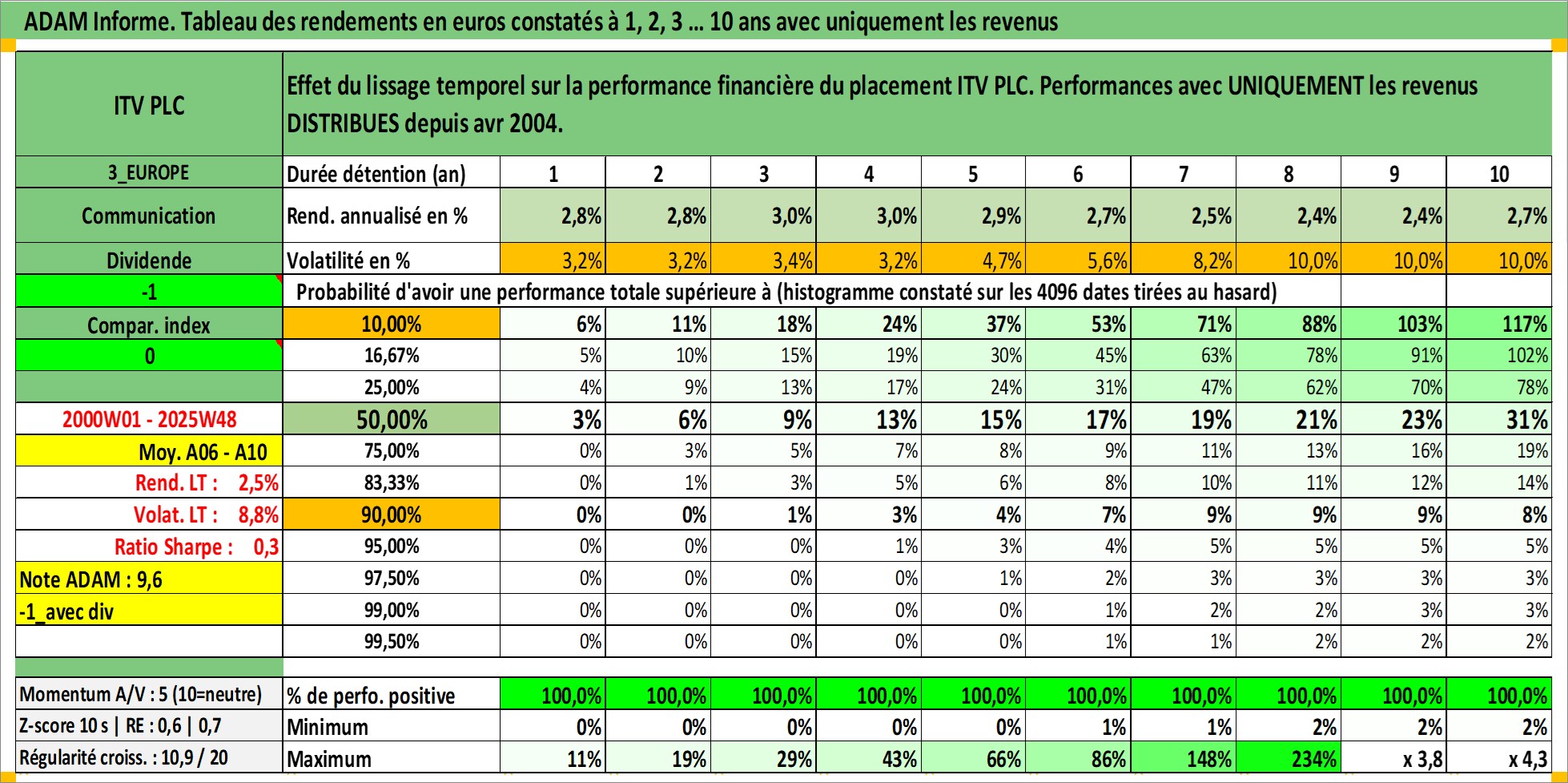 Site dédié aux investisseursPage dédiée sur site financeAnalyse des valorisations hebdomadaires de l'action ITV PLC. Cet actif est cote en GBX. Les valorisations sont en contrevaleur EURO et couvrent les semaines 2000W01 a 2025W48. Les revenus de cet actif financier sont pris en compte depuis la semaine 2004W17. La note globale ESG de cet actif est estimee a 16.0 (apres rebasage entre 0 et 20).