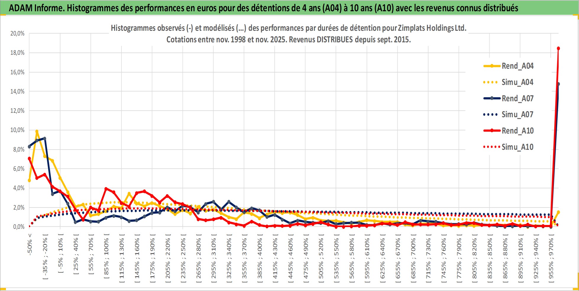 Site dédié aux investisseursPage dédiée sur site financeAnalyse des valorisations hebdomadaires de l'action Zimplats Holdings Ltd. Cet actif est cote en AUD. Les valorisations sont en contrevaleur EURO et couvrent les semaines 1998W45 a 2025W48. Les revenus de cet actif financier sont pris en compte depuis la semaine 2015W37. La note ESG de cet actif n'est pas connue.