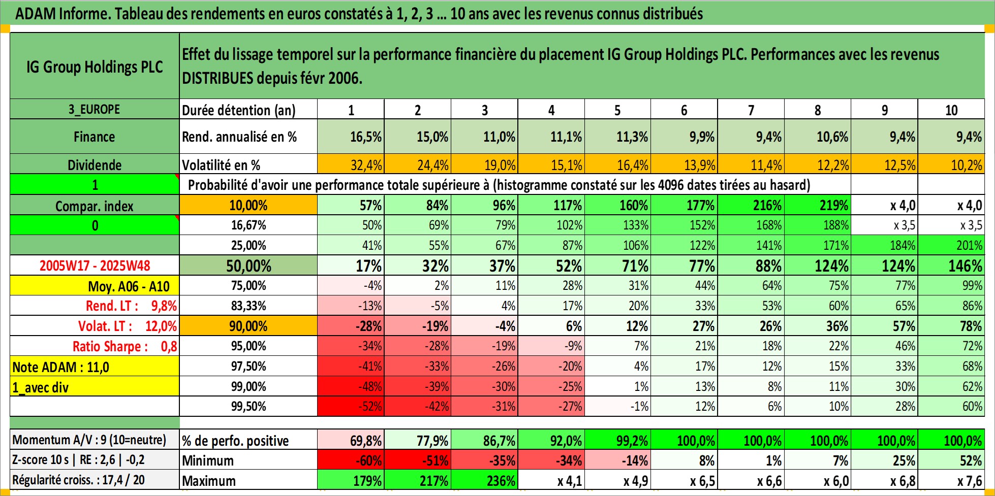 Site dédié aux investisseursPage dédiée sur site financeAnalyse des valorisations hebdomadaires de l'action IG Group Holdings PLC. Cet actif est cote en GBX. Les valorisations sont en contrevaleur EURO et couvrent les semaines 2005W17 a 2025W48. Les revenus de cet actif financier sont pris en compte depuis la semaine 2006W05. La note ESG de cet actif n'est pas connue.