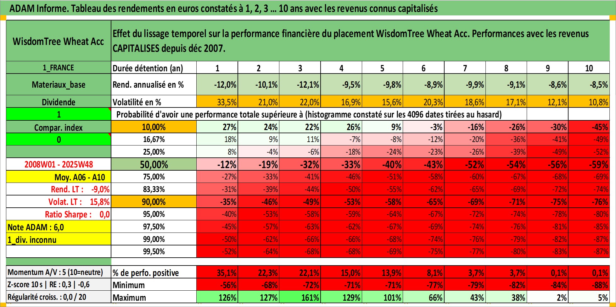 Site dédié aux investisseursPage dédiée sur site financeAnalyse des valorisations hebdomadaires du fonds WisdomTree Wheat Acc. Cet actif est cote en EUR. Les valorisations couvrent les semaines 2008W01 a 2025W48. Les revenus de cet actif financier sont pris en compte depuis la semaine 2008W01. La note ESG de cet actif n'est pas connue.