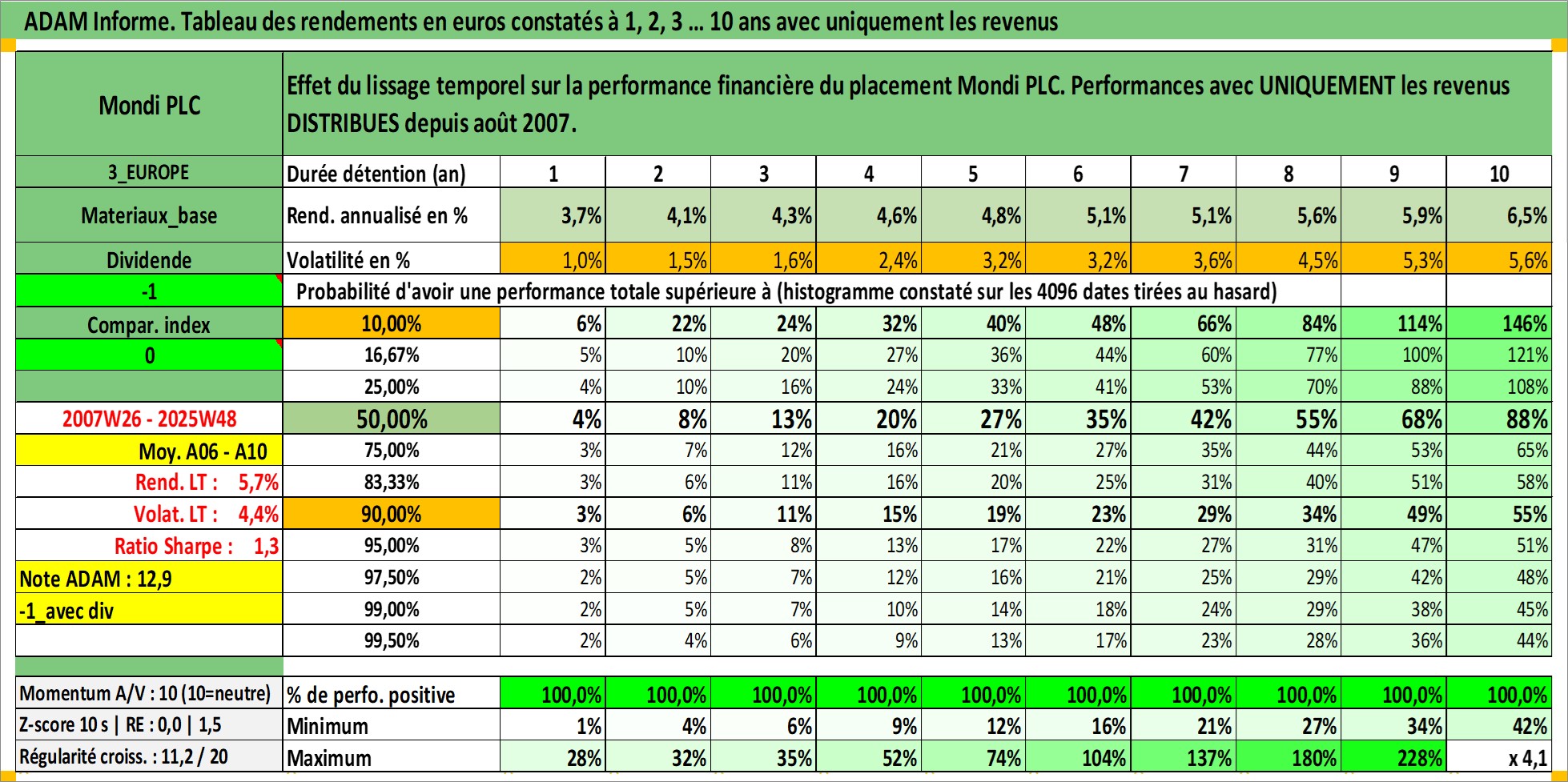 Site dédié aux investisseursPage dédiée sur site financeAnalyse des valorisations hebdomadaires de l'action Mondi PLC. Cet actif est cote en GBX. Les valorisations sont en contrevaleur EURO et couvrent les semaines 2007W26 a 2025W48. Les revenus de cet actif financier sont pris en compte depuis la semaine 2007W35. La note globale ESG de cet actif est estimee a 16.0 (apres rebasage entre 0 et 20).