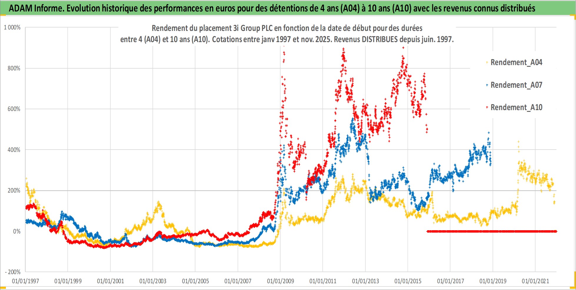 Site dédié aux investisseursPage dédiée sur site financeAnalyse des valorisations hebdomadaires de l'action 3i Group PLC. Cet actif est cote en GBX. Les valorisations sont en contrevaleur EURO et couvrent les semaines 1997W01 a 2025W48. Les revenus de cet actif financier sont pris en compte depuis la semaine 1997W25. La note globale ESG de cet actif est estimee a 16.0 (apres rebasage entre 0 et 20).