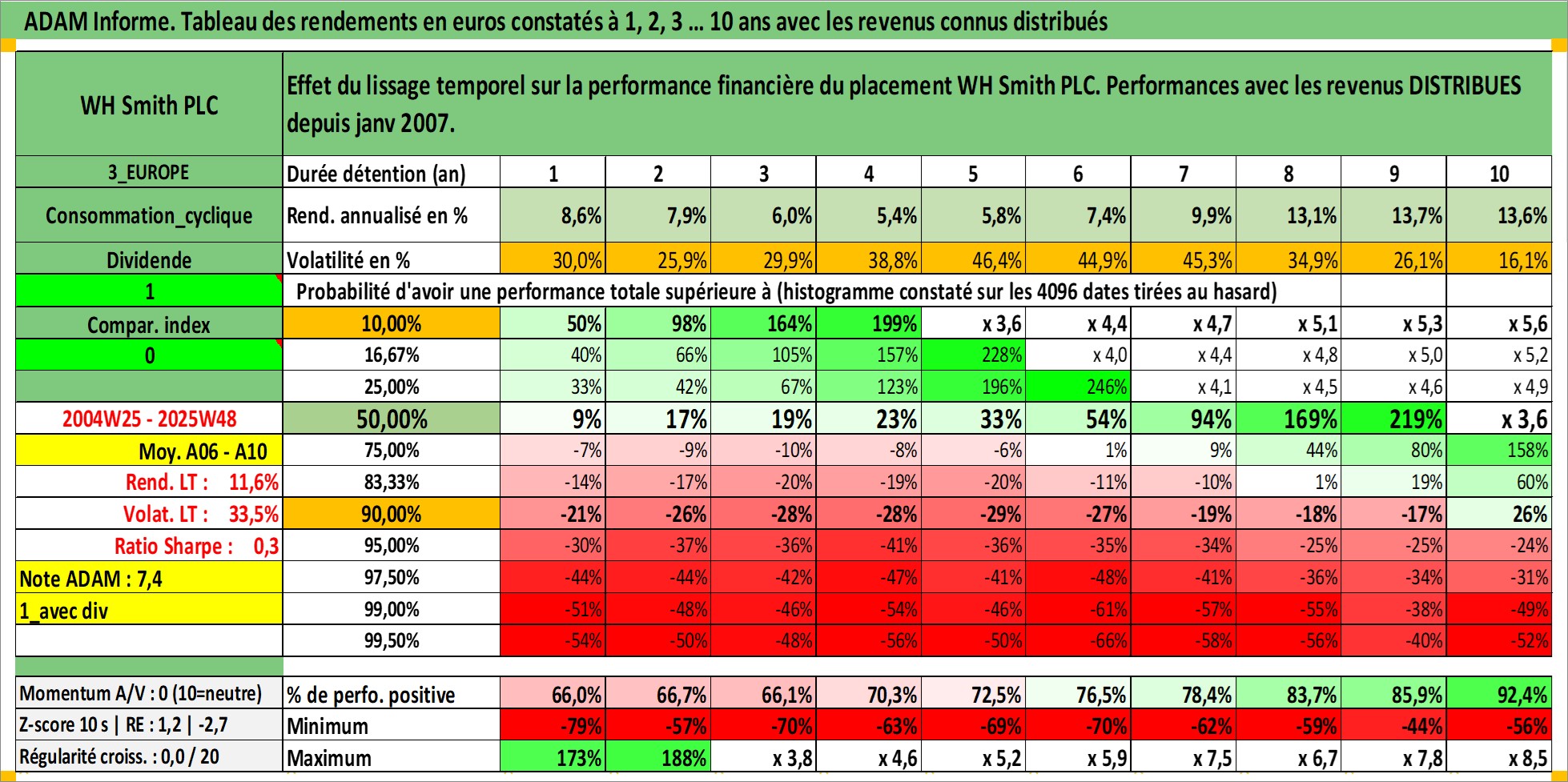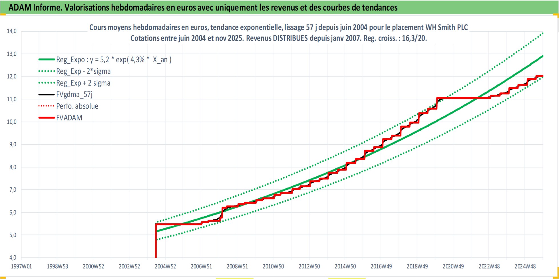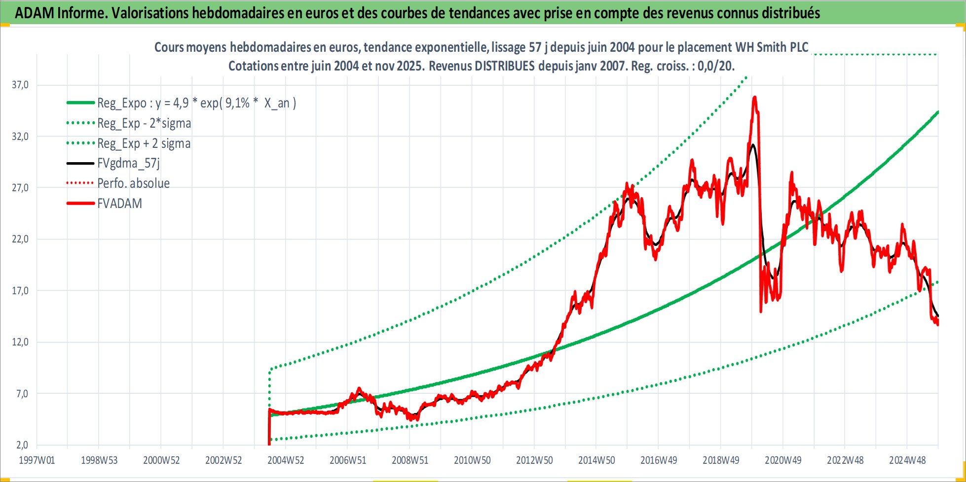 Site dédié aux investisseursPage dédiée sur site financeAnalyse des valorisations hebdomadaires de l'action WH Smith PLC. Cet actif est cote en GBX. Les valorisations sont en contrevaleur EURO et couvrent les semaines 2004W25 a 2025W48. Les revenus de cet actif financier sont pris en compte depuis la semaine 2007W01. La note ESG de cet actif n'est pas connue.