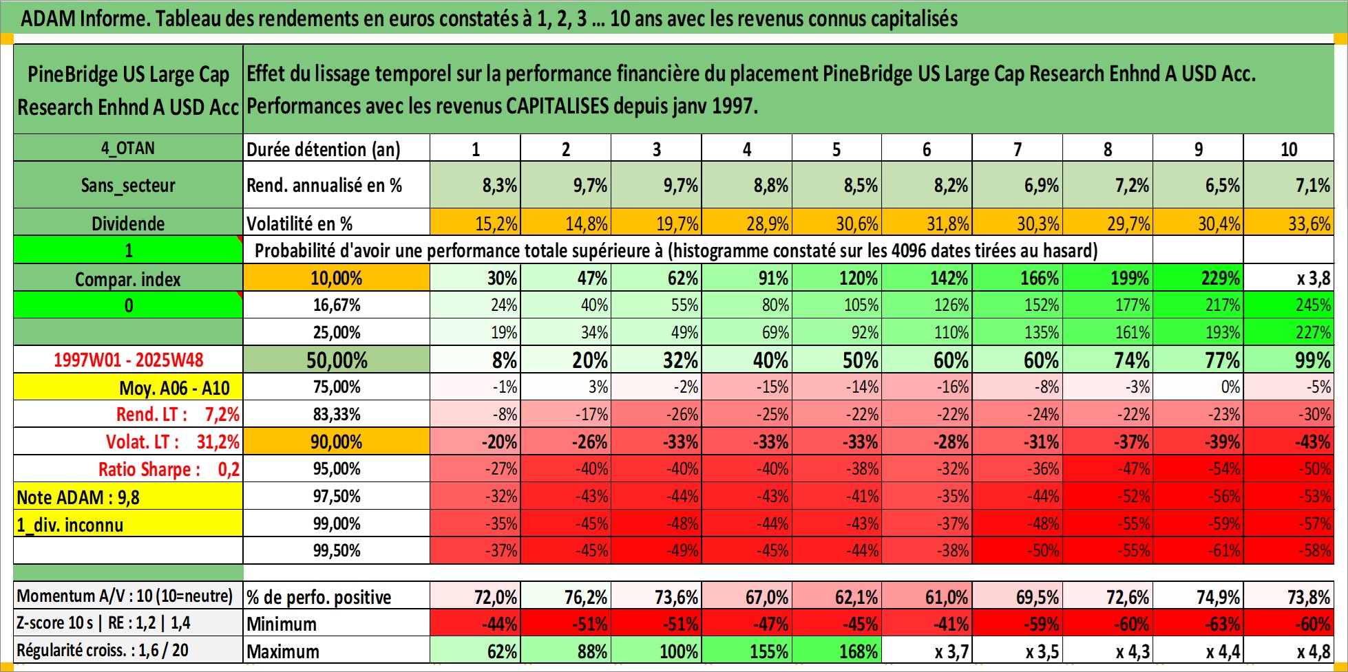 Site dédié aux investisseursPage dédiée sur site financeAnalyse des valorisations hebdomadaires du fonds PineBridge US Large Cap Research Enhnd A USD Acc. Cet actif est cote en USD. Les valorisations sont en contrevaleur EURO et couvrent les semaines 1997W01 a 2025W48. Les revenus de cet actif financier sont pris en compte depuis la semaine 1997W01. La note ESG de cet actif n'est pas connue.