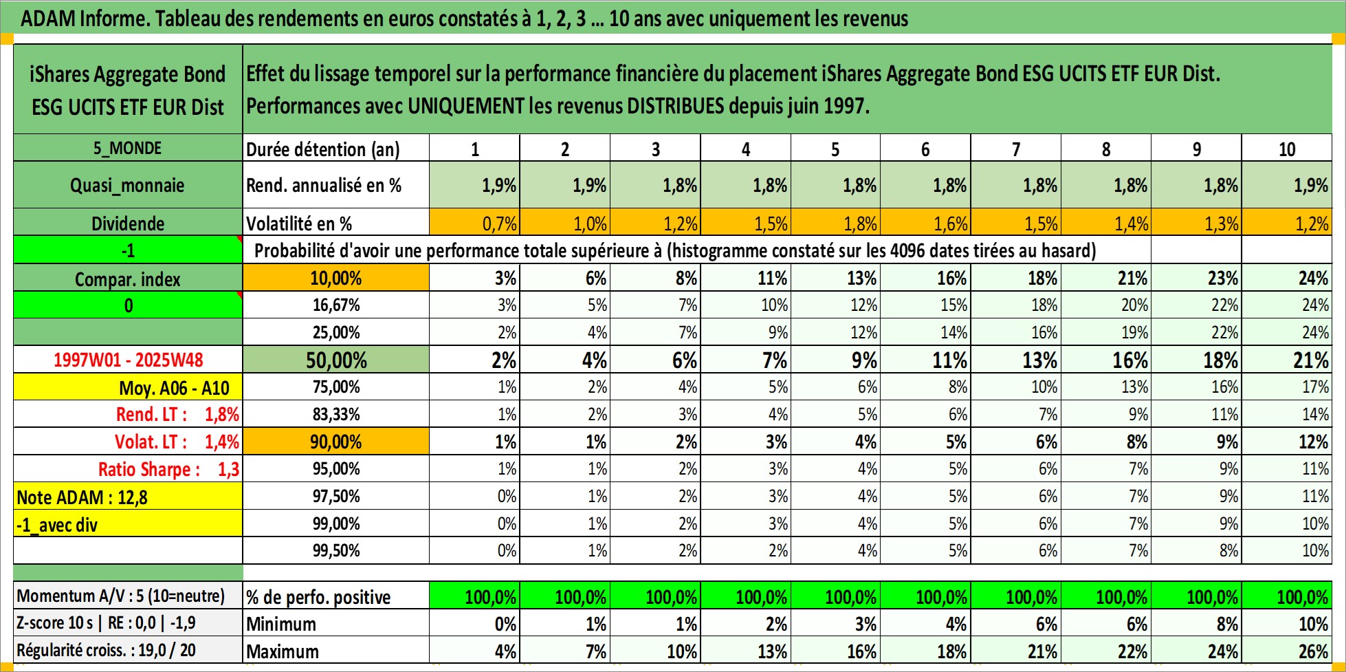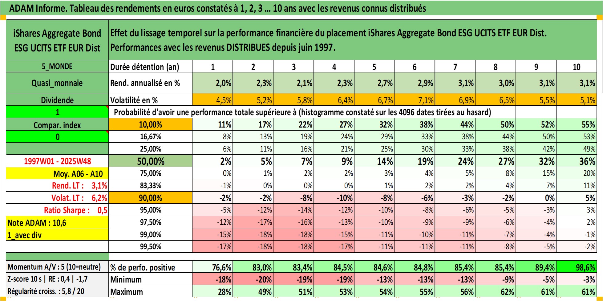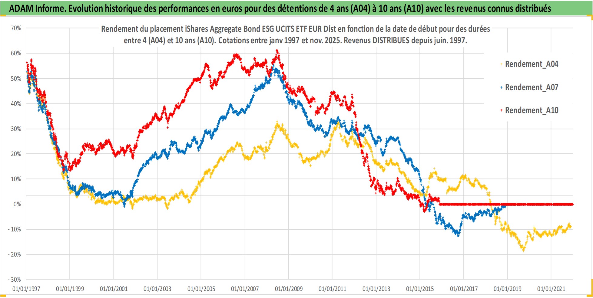 Site dédié aux investisseursPage dédiée sur site financeAnalyse des valorisations hebdomadaires du fonds iShares Aggregate Bond ESG UCITS ETF EUR Dist. Cet actif est cote en EUR. Les valorisations couvrent les semaines 1997W01 a 2025W48. Les revenus de cet actif financier sont pris en compte depuis la semaine 1997W26. La note ESG de cet actif n'est pas connue.