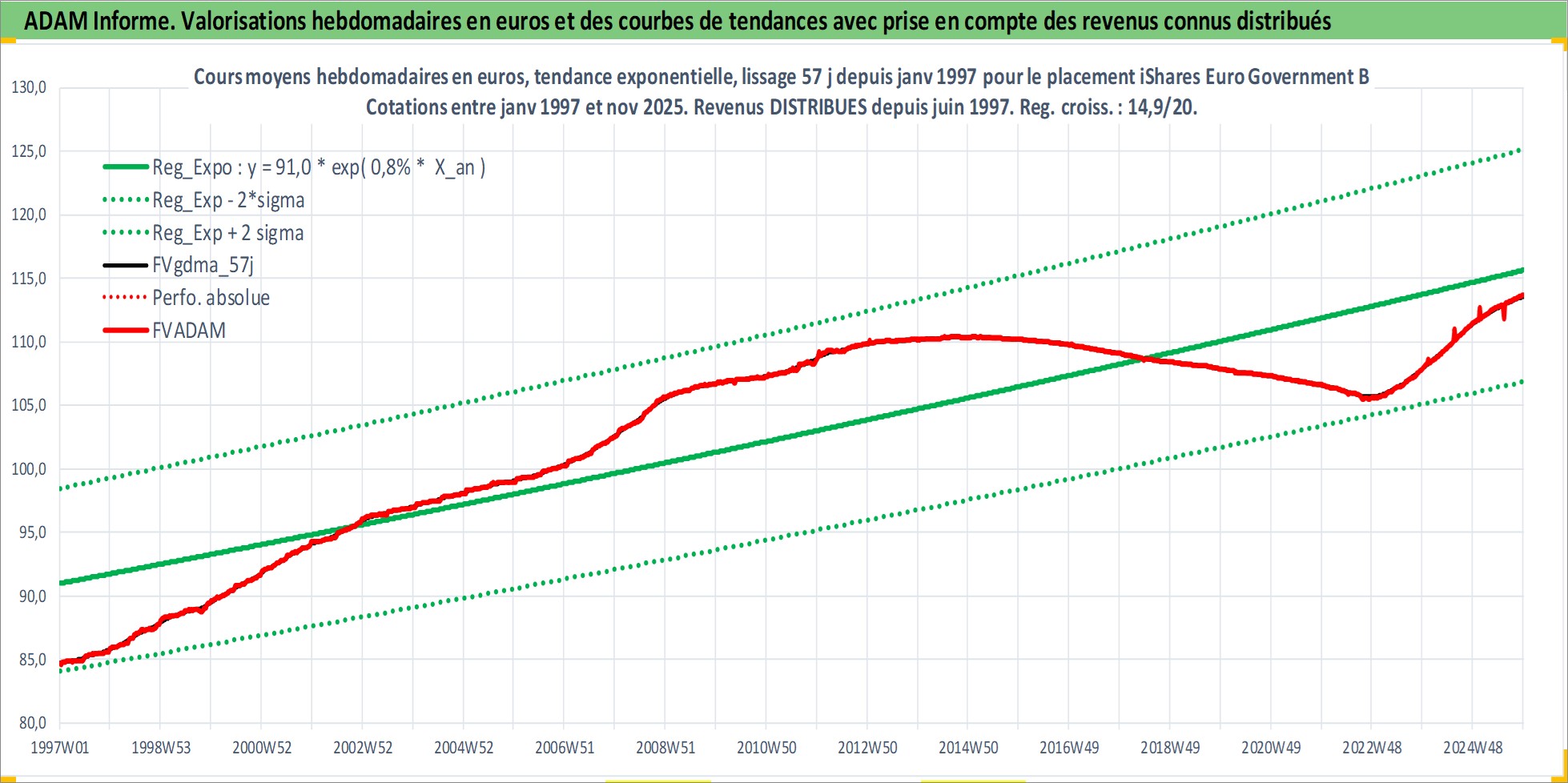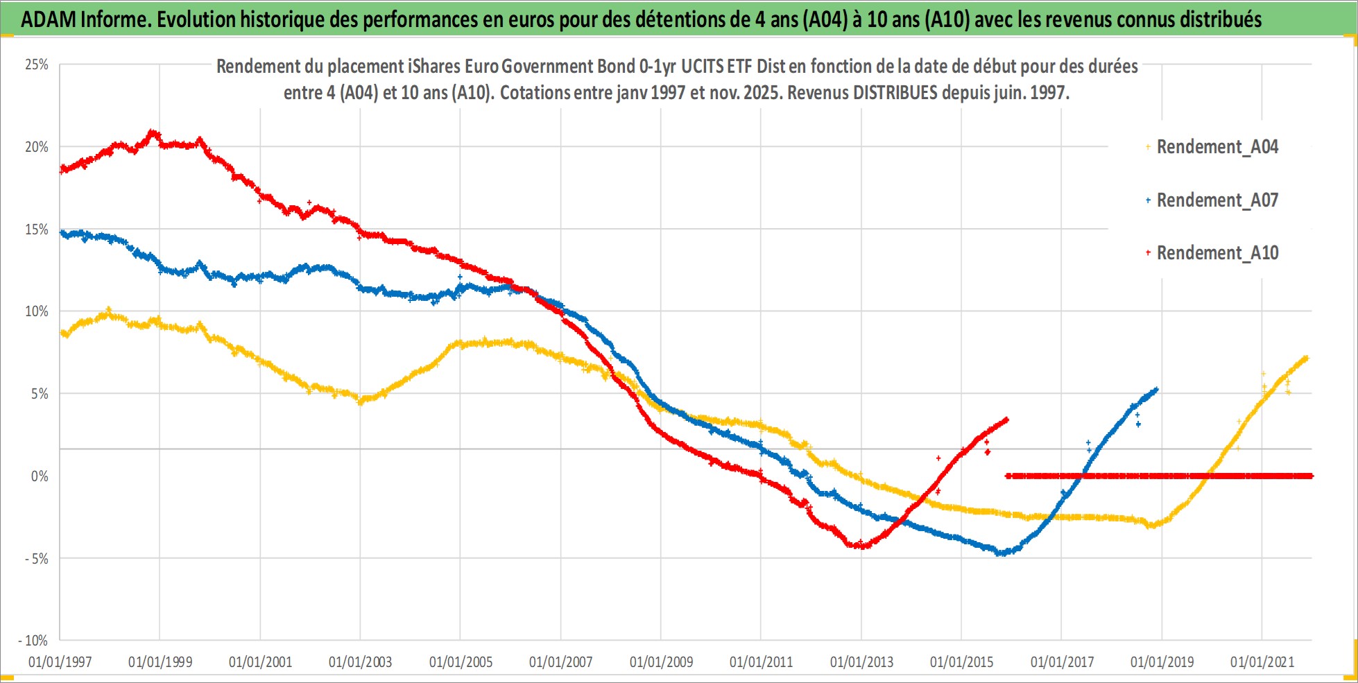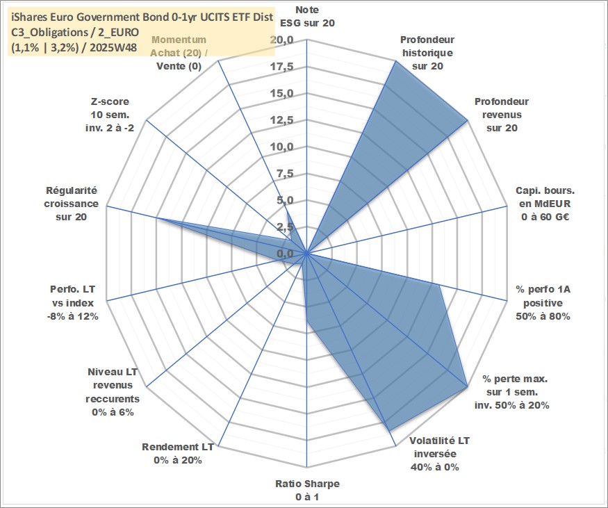 Site dédié aux investisseursPage dédiée sur site financeAnalyse des valorisations hebdomadaires du fonds iShares Euro Government Bond 0-1yr UCITS ETF Dist. Cet actif est cote en EUR. Les valorisations couvrent les semaines 1997W01 a 2025W48. Les revenus de cet actif financier sont pris en compte depuis la semaine 1997W26. La note ESG de cet actif n'est pas connue.