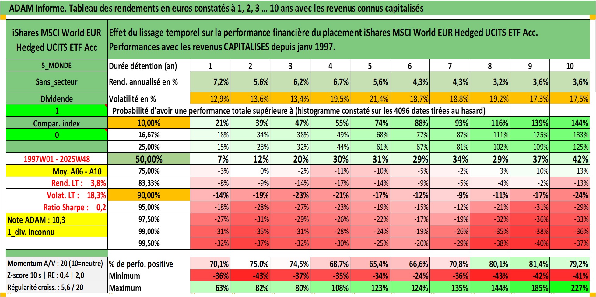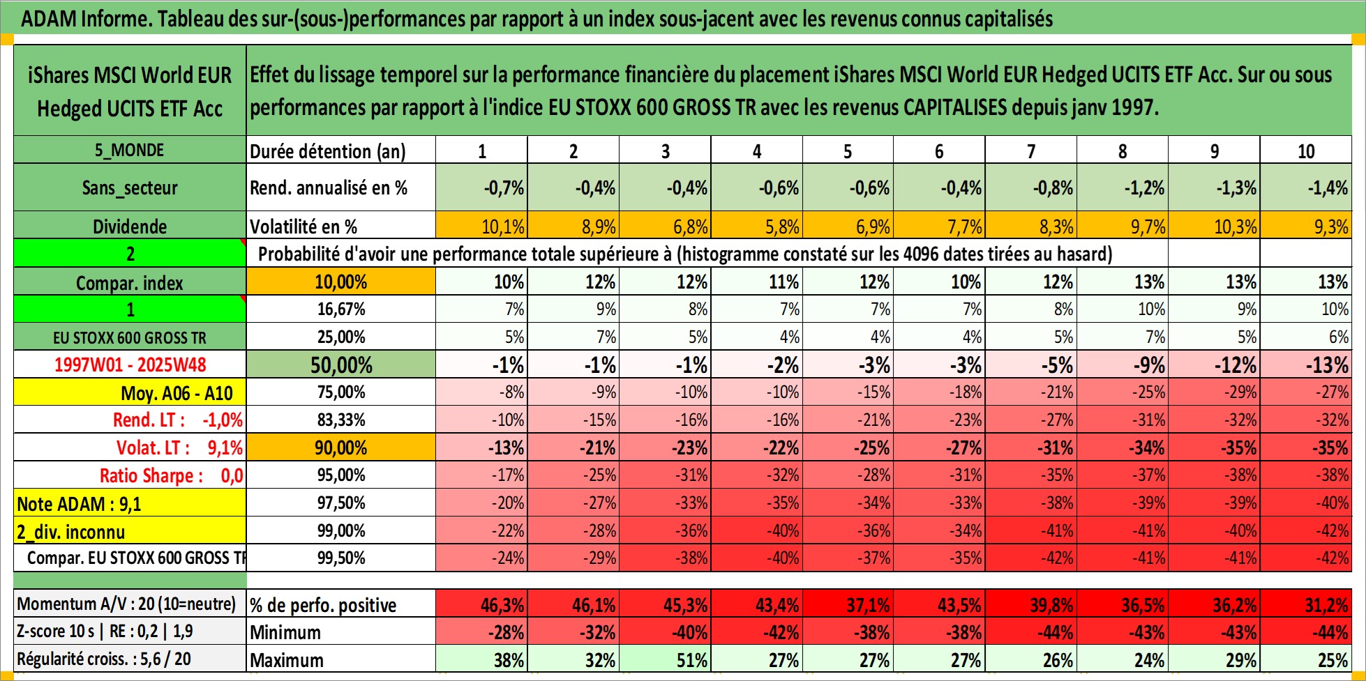 Site dédié aux investisseursPage dédiée sur site financeAnalyse des valorisations hebdomadaires du fonds iShares MSCI World EUR Hedged UCITS ETF Acc. Cet actif est cote en EUR. Les valorisations couvrent les semaines 1997W01 a 2025W48. Les revenus de cet actif financier sont pris en compte depuis la semaine 1997W01. La note ESG de cet actif n'est pas connue.