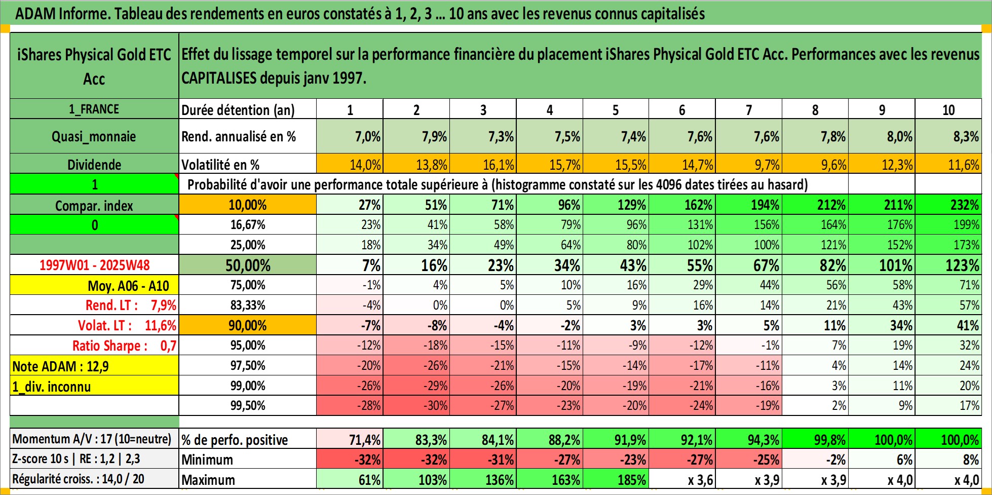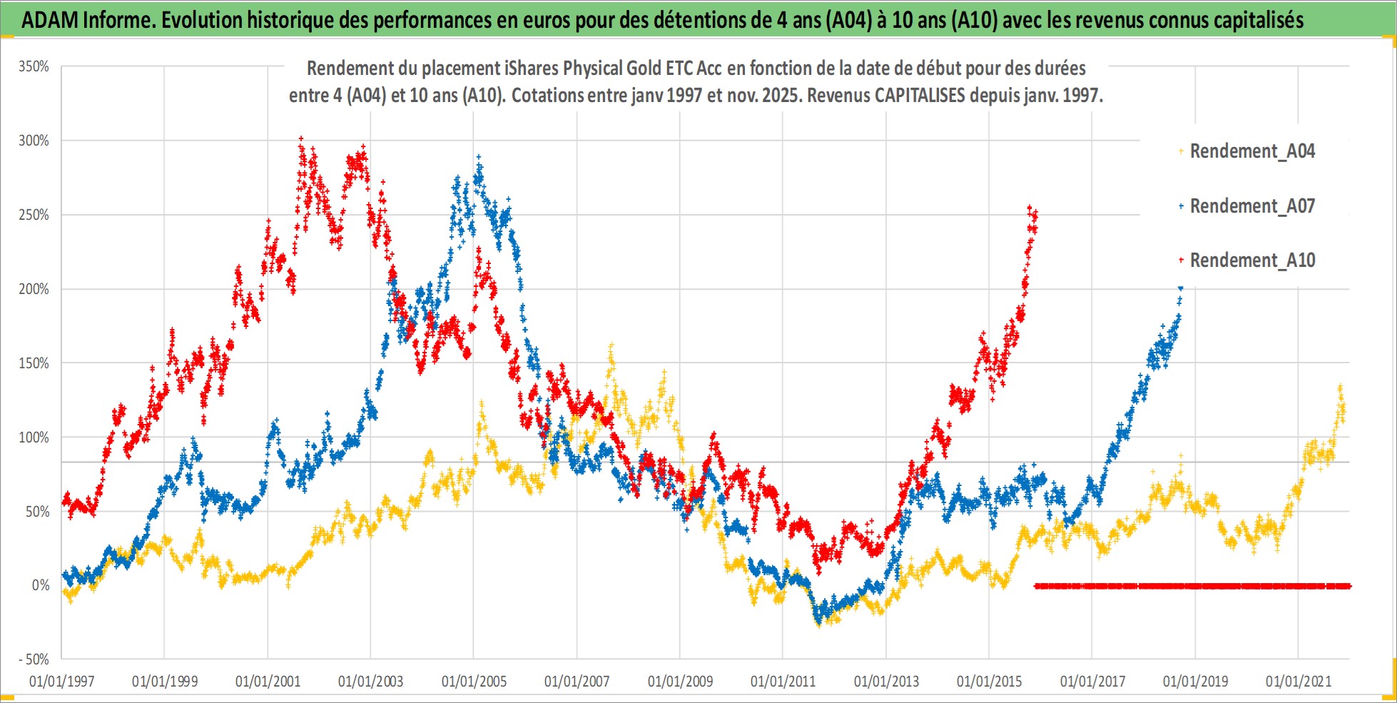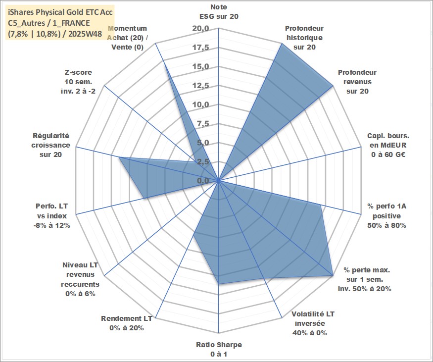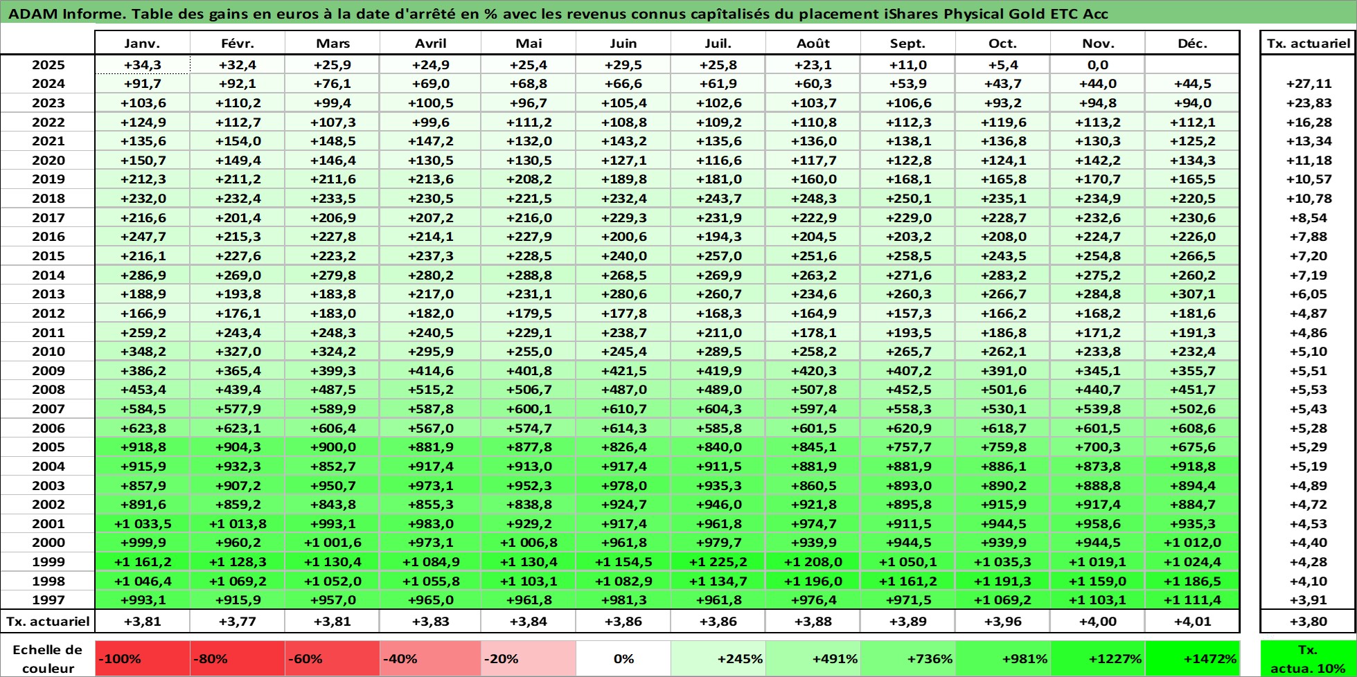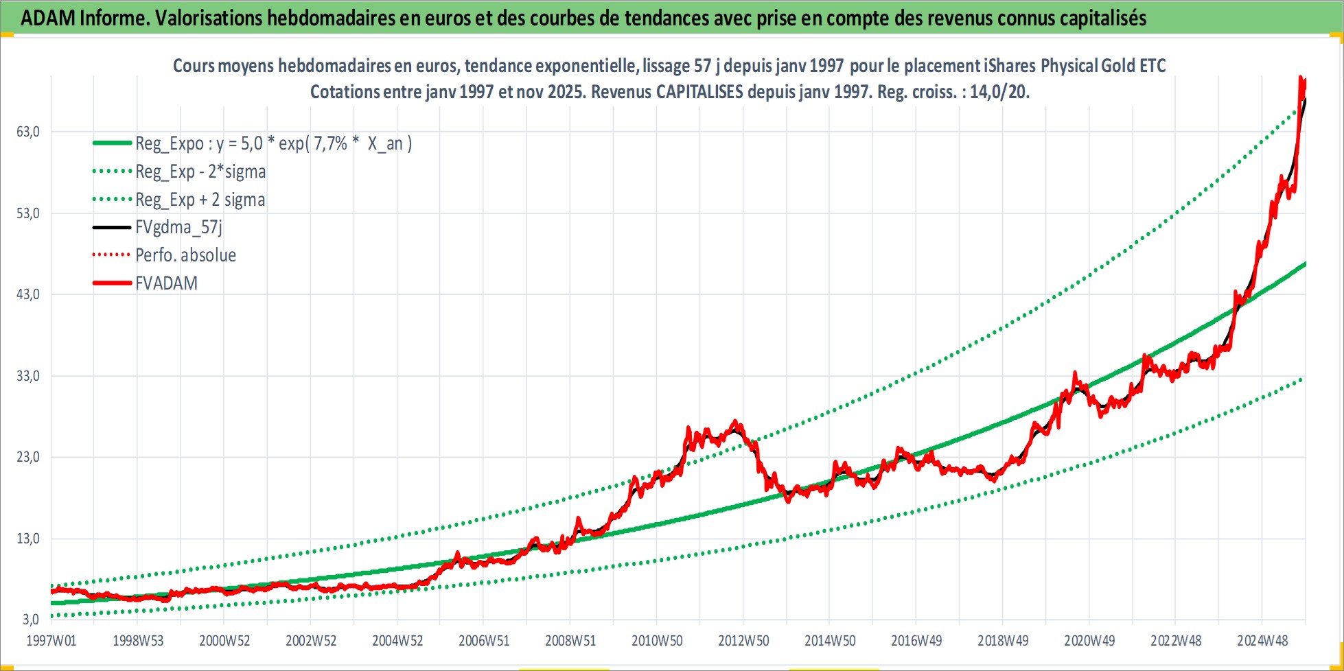 Site dédié aux investisseursPage dédiée sur site financeAnalyse des valorisations hebdomadaires du fonds iShares Physical Gold ETC Acc. Cet actif est cote en USD. Les valorisations sont en contrevaleur EURO et couvrent les semaines 1997W01 a 2025W48. Les revenus de cet actif financier sont pris en compte depuis la semaine 1997W01. La note ESG de cet actif n'est pas connue.