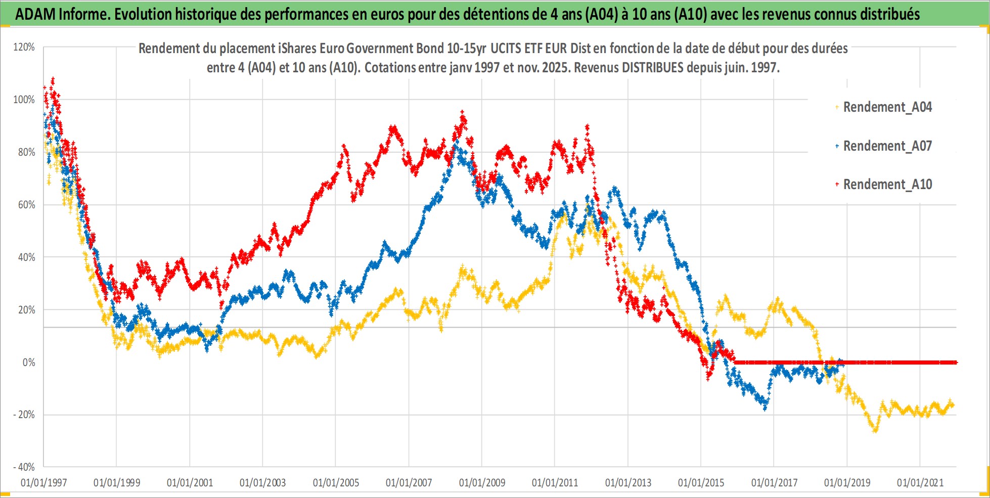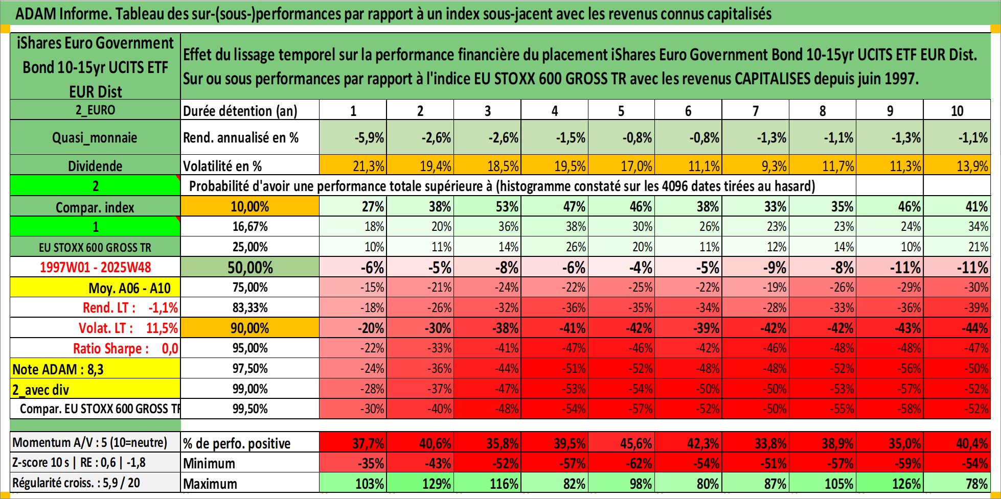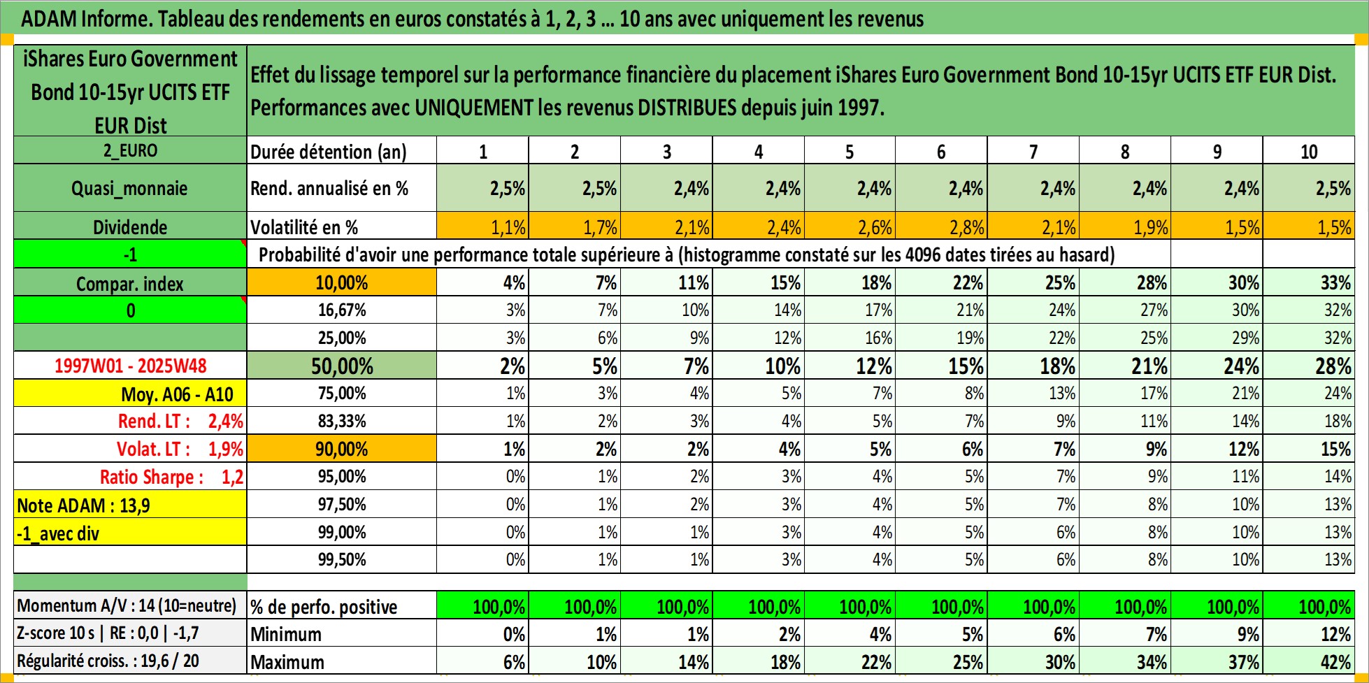 Site dédié aux investisseursPage dédiée sur site financeAnalyse des valorisations hebdomadaires du fonds iShares Euro Government Bond 10-15yr UCITS ETF EUR Dist. Cet actif est cote en EUR. Les valorisations couvrent les semaines 1997W01 a 2025W48. Les revenus de cet actif financier sont pris en compte depuis la semaine 1997W26. La note ESG de cet actif n'est pas connue.