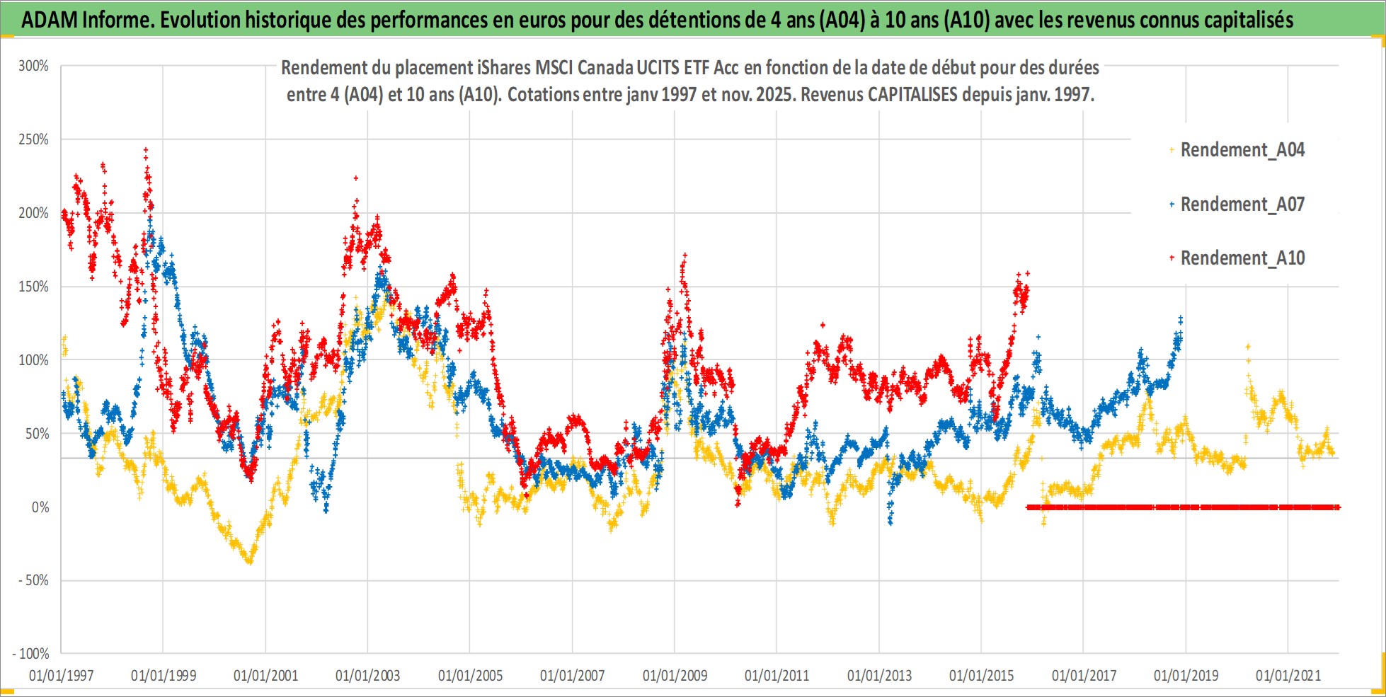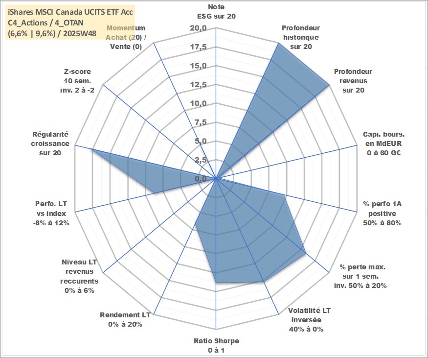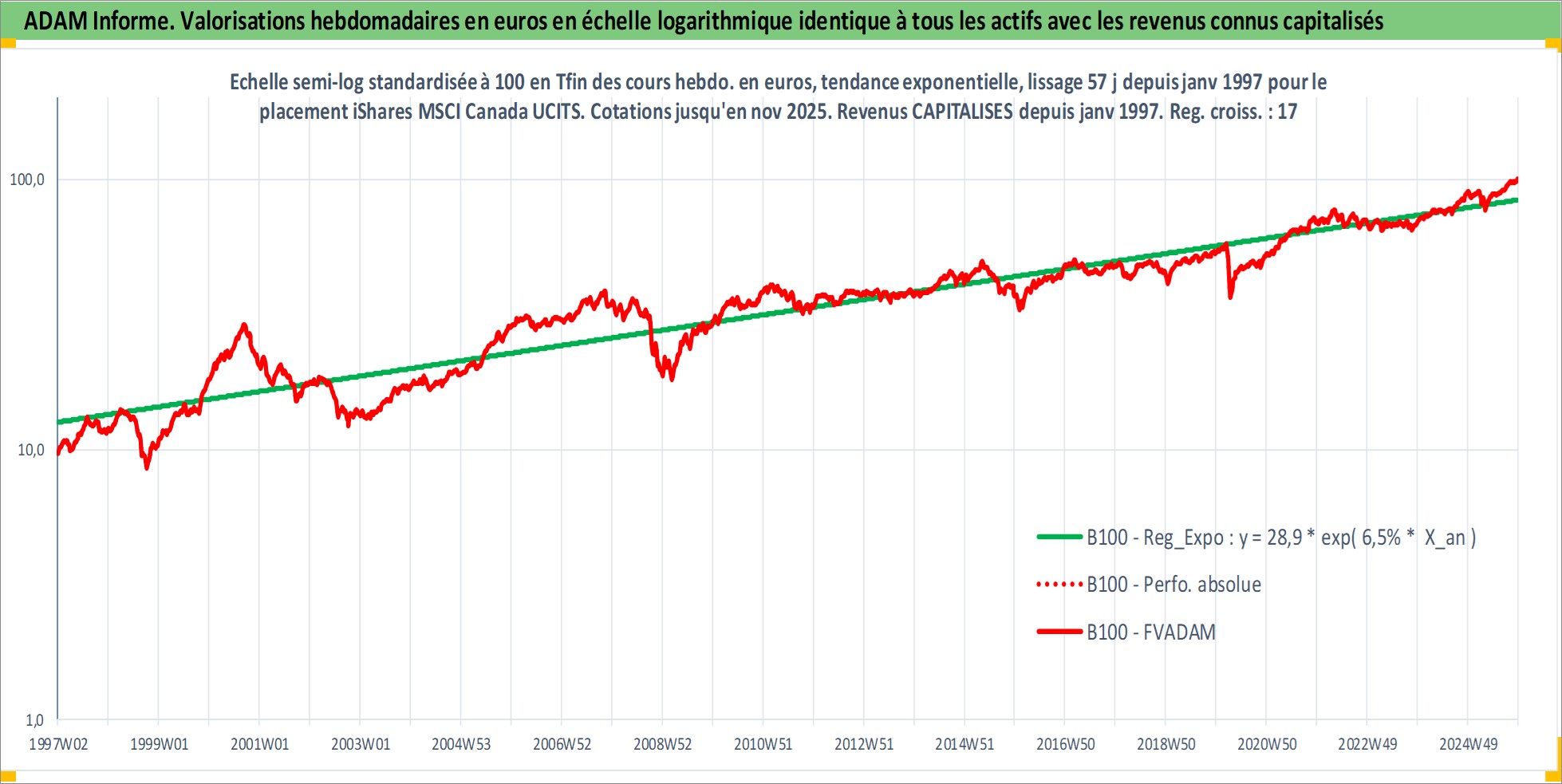 Site dédié aux investisseursPage dédiée sur site financeAnalyse des valorisations hebdomadaires du fonds iShares MSCI Canada UCITS ETF Acc. Cet actif est cote en USD. Les valorisations sont en contrevaleur EURO et couvrent les semaines 1997W01 a 2025W48. Les revenus de cet actif financier sont pris en compte depuis la semaine 1997W01. La note ESG de cet actif n'est pas connue.