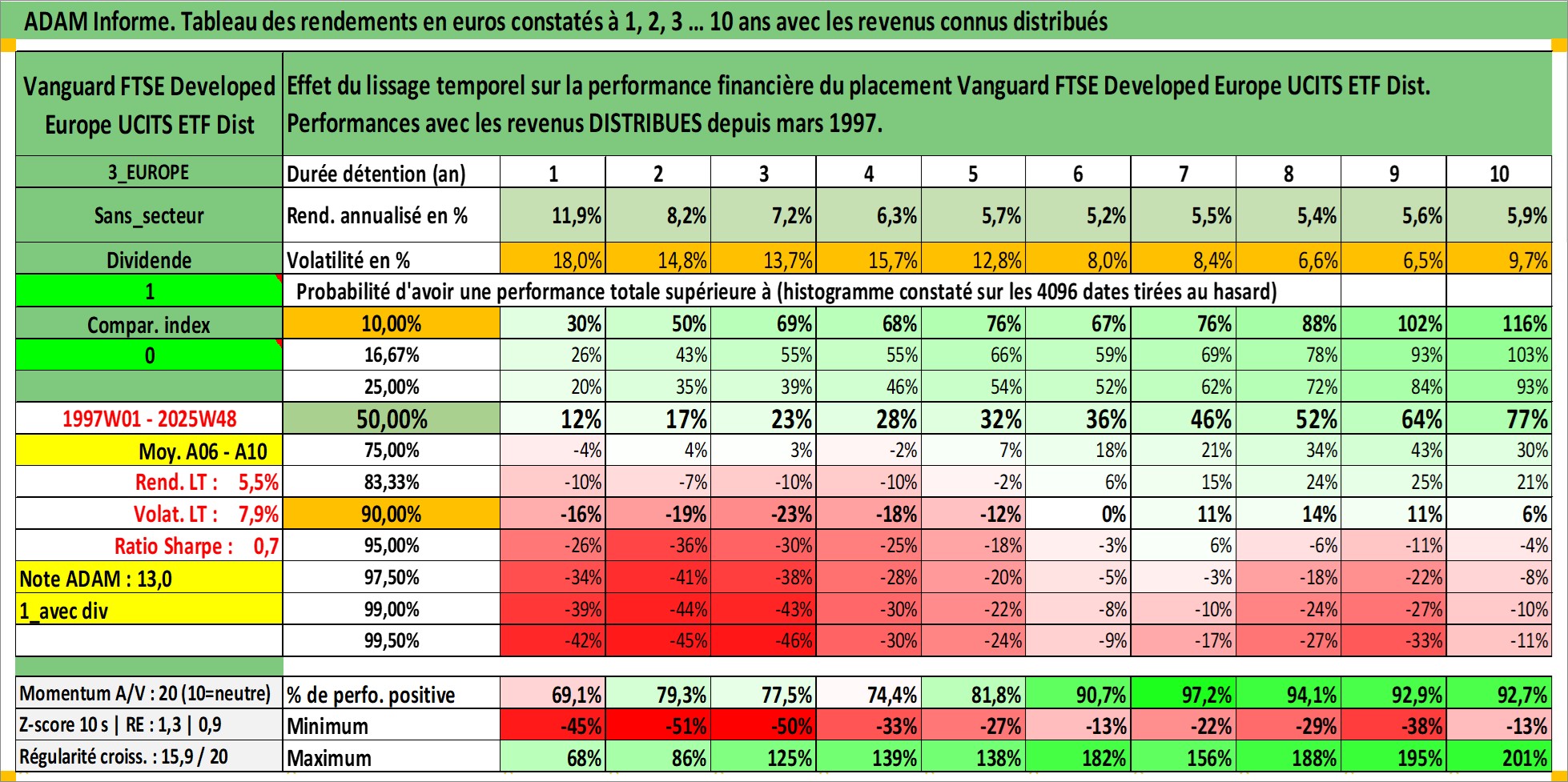 Site dédié aux investisseursPage dédiée sur site financeAnalyse des valorisations hebdomadaires du fonds Vanguard FTSE Developed Europe UCITS ETF Dist. Cet actif est cote en EUR. Les valorisations couvrent les semaines 1997W01 a 2025W48. Les revenus de cet actif financier sont pris en compte depuis la semaine 1997W12. La note ESG de cet actif n'est pas connue.