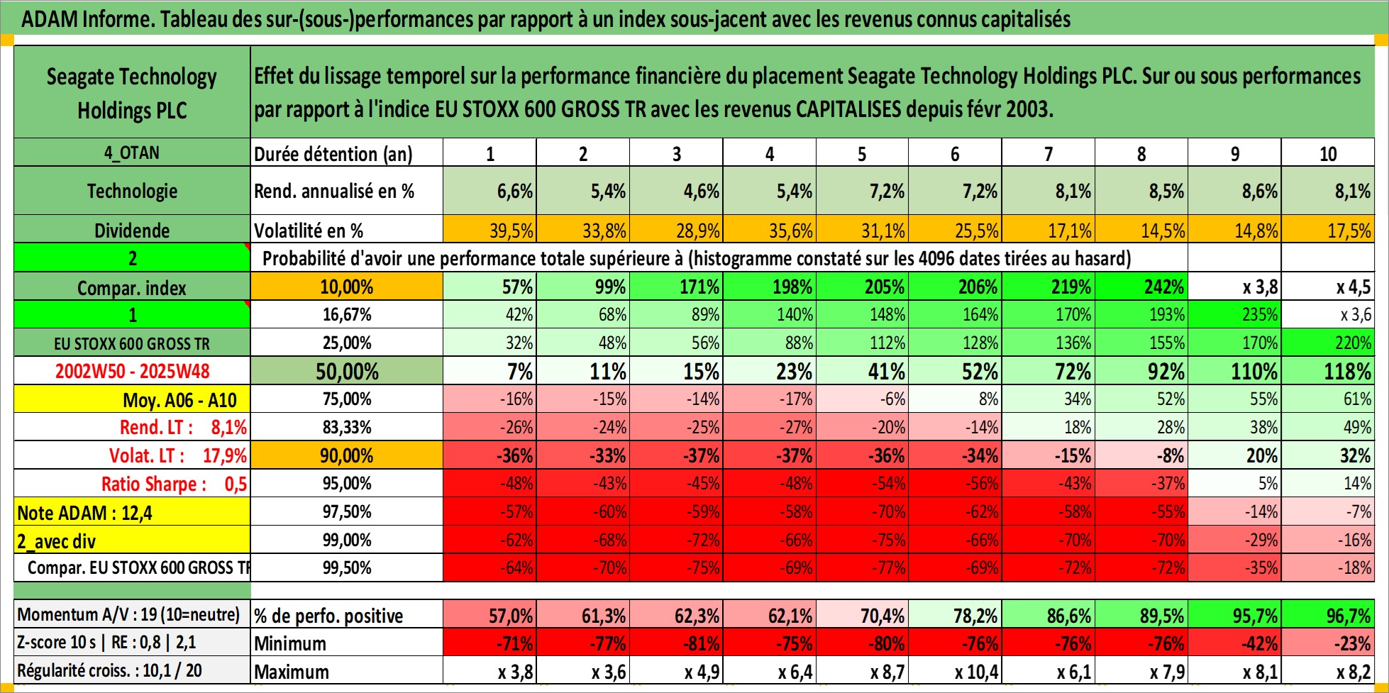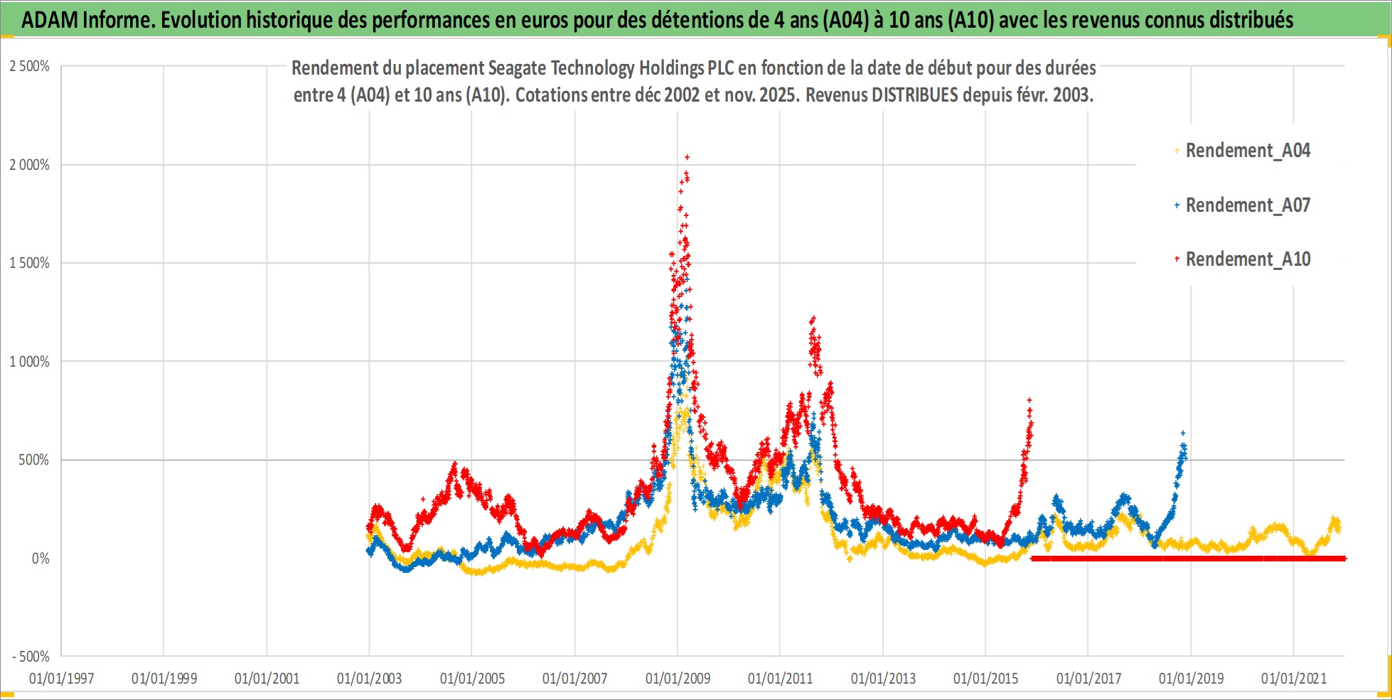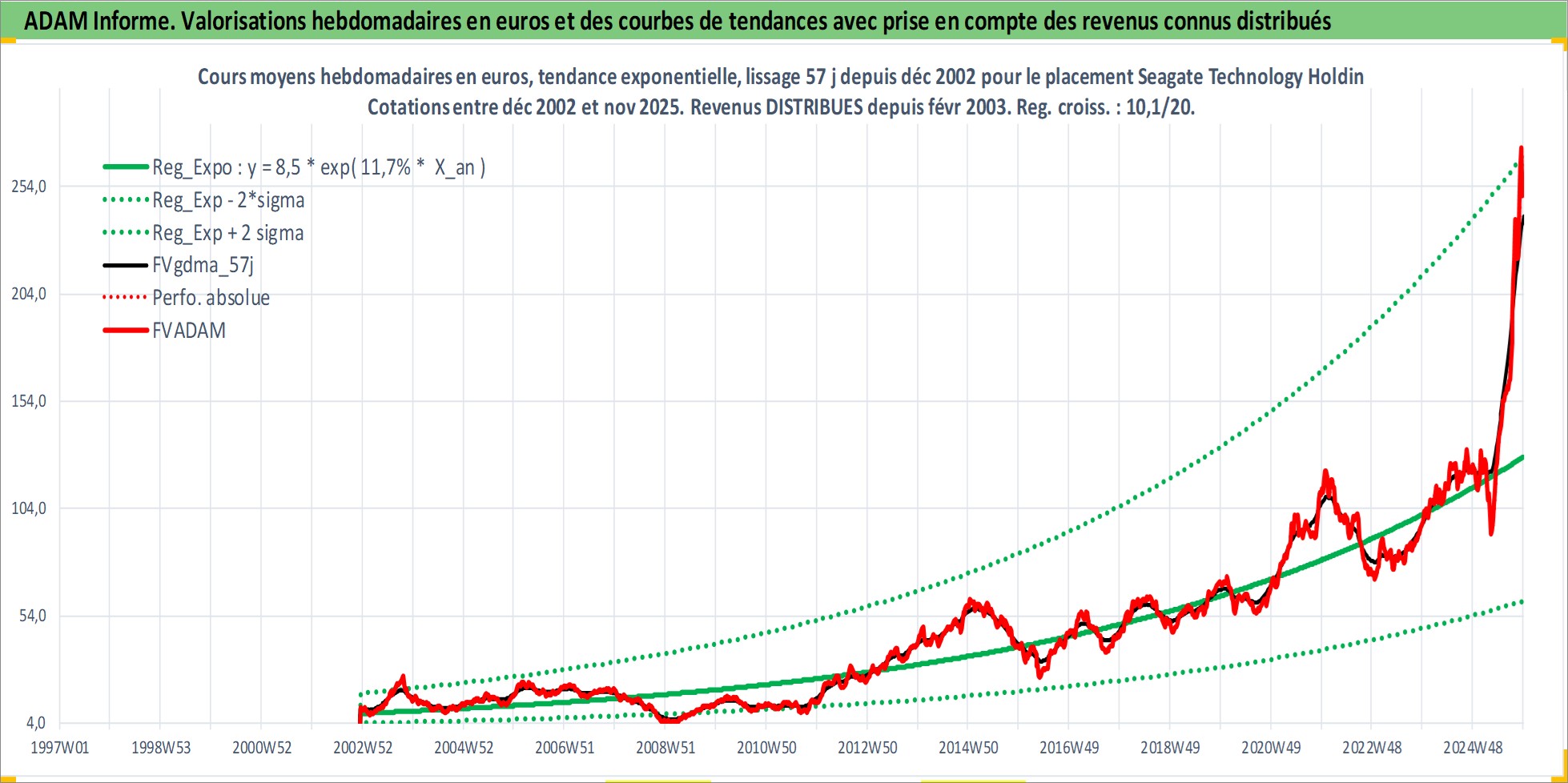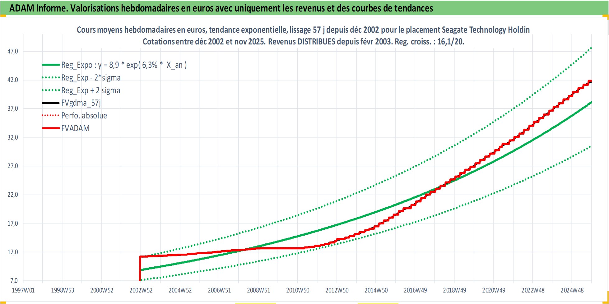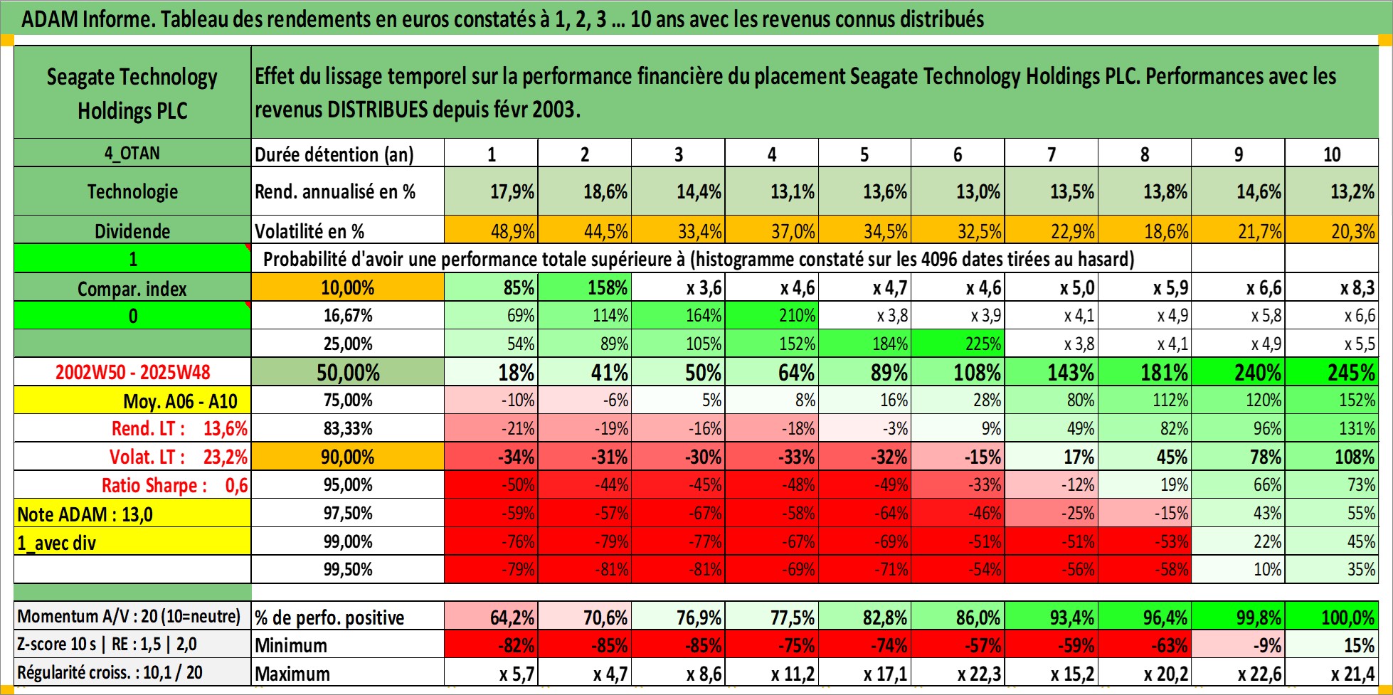 Site dédié aux investisseursPage dédiée sur site financeAnalyse des valorisations hebdomadaires de l'action Seagate Technology Holdings PLC. Cet actif est cote en USD. Les valorisations sont en contrevaleur EURO et couvrent les semaines 2002W50 a 2025W48. Les revenus de cet actif financier sont pris en compte depuis la semaine 2003W07. La note globale ESG de cet actif est estimee a 16.0 (apres rebasage entre 0 et 20).