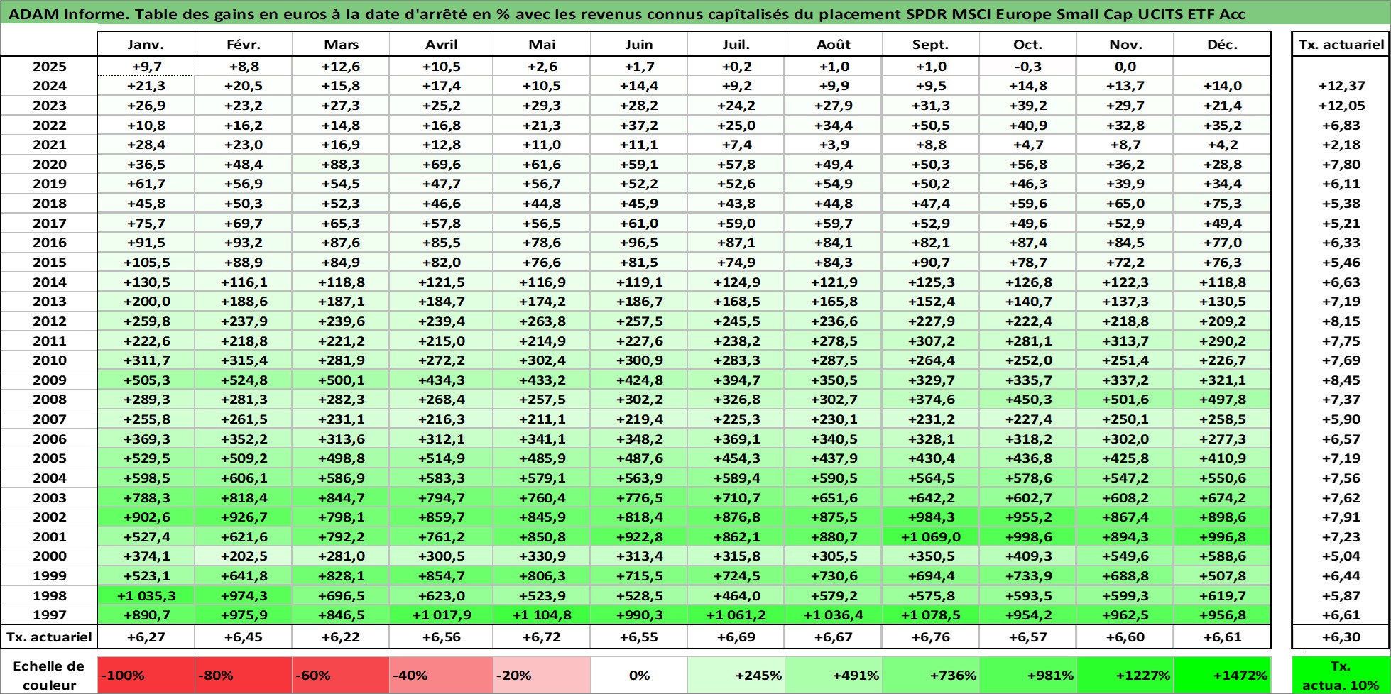 Site dédié aux investisseursPage dédiée sur site financeAnalyse des valorisations hebdomadaires du fonds SPDR MSCI Europe Small Cap UCITS ETF Acc. Cet actif est cote en EUR. Les valorisations couvrent les semaines 1997W01 a 2025W48. Les revenus de cet actif financier sont pris en compte depuis la semaine 1997W01. La note ESG de cet actif n'est pas connue.