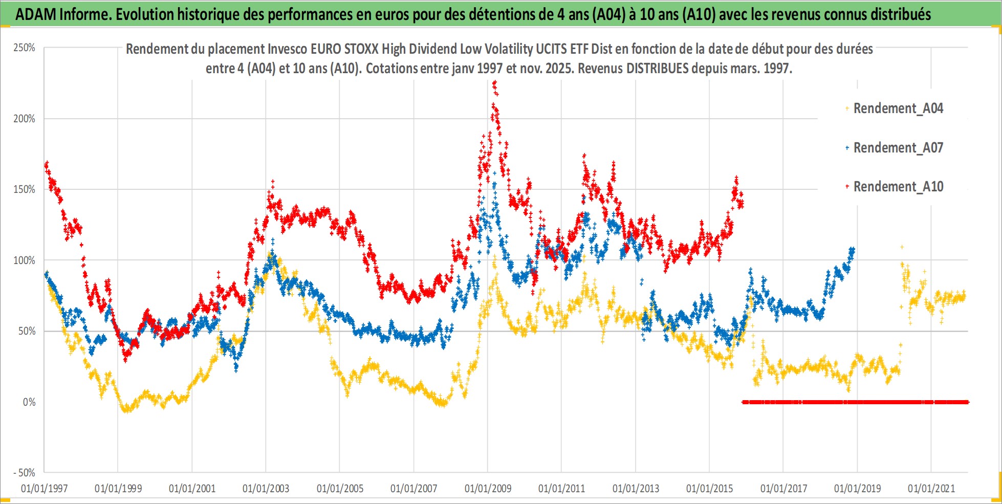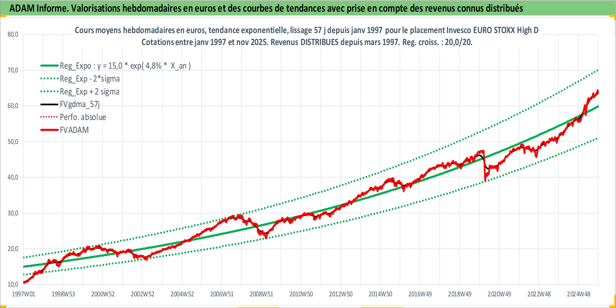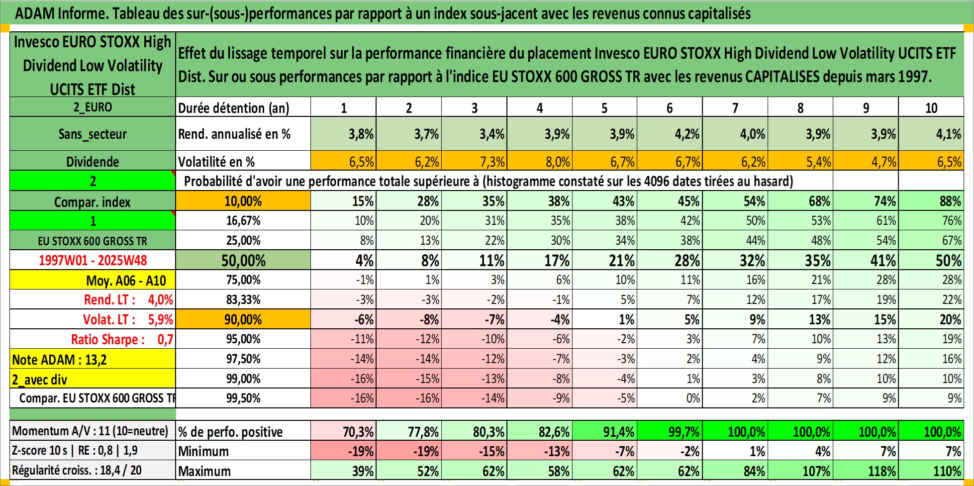 Site dédié aux investisseursPage dédiée sur site financeAnalyse des valorisations hebdomadaires du fonds Invesco EURO STOXX High Dividend Low Volatility UCITS ETF Dist. Cet actif est cote en EUR. Les valorisations couvrent les semaines 1997W01 a 2025W48. Les revenus de cet actif financier sont pris en compte depuis la semaine 1997W14. La note ESG de cet actif n'est pas connue.