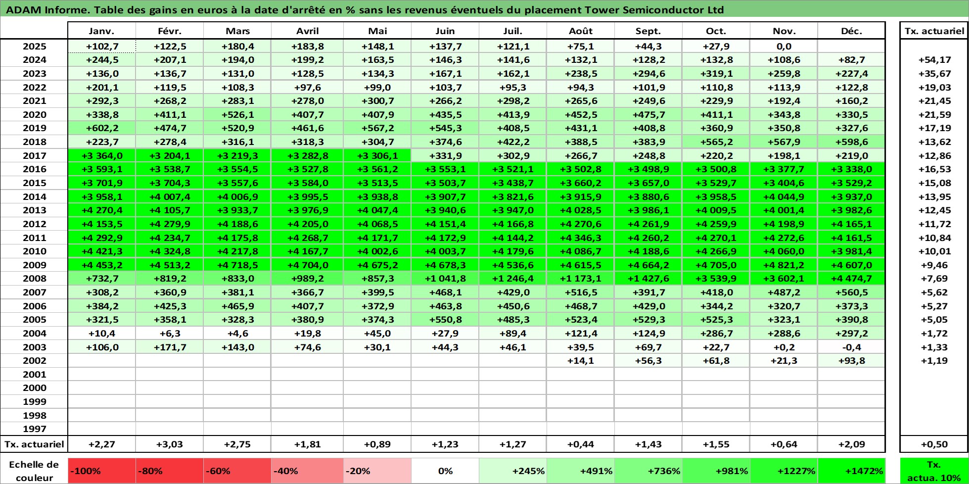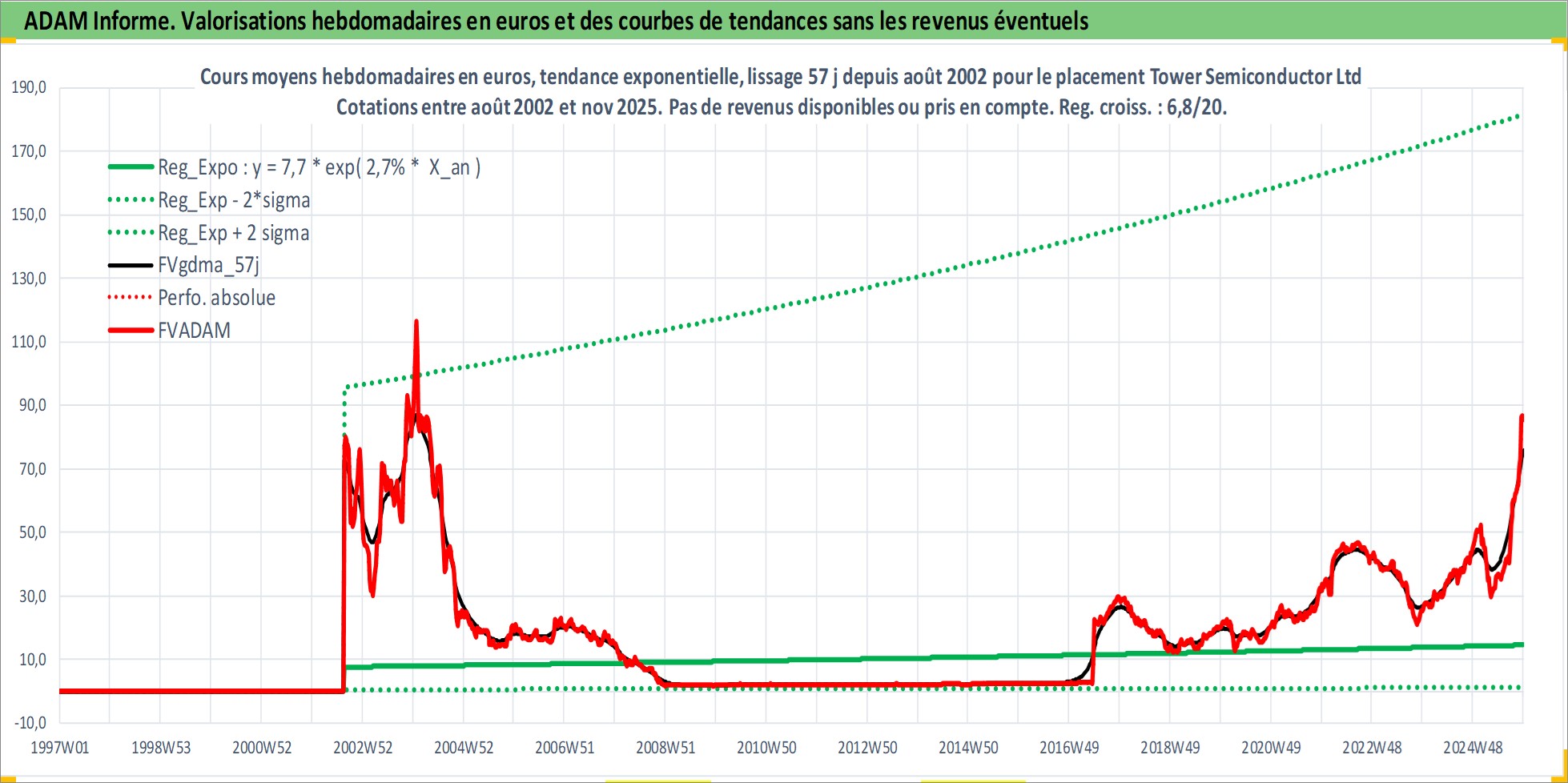 Site dédié aux investisseursPage dédiée sur site financeAnalyse des valorisations hebdomadaires de l'action Tower Semiconductor Ltd. Cet actif est cote en ILA. Les valorisations sont en contrevaleur EURO et couvrent les semaines 2002W33 a 2025W48. Les revenus de cet actif financier ne sont pas connus car non existants ou non disponibles sur le site Yahoo Finance. La note ESG de cet actif n'est pas connue.