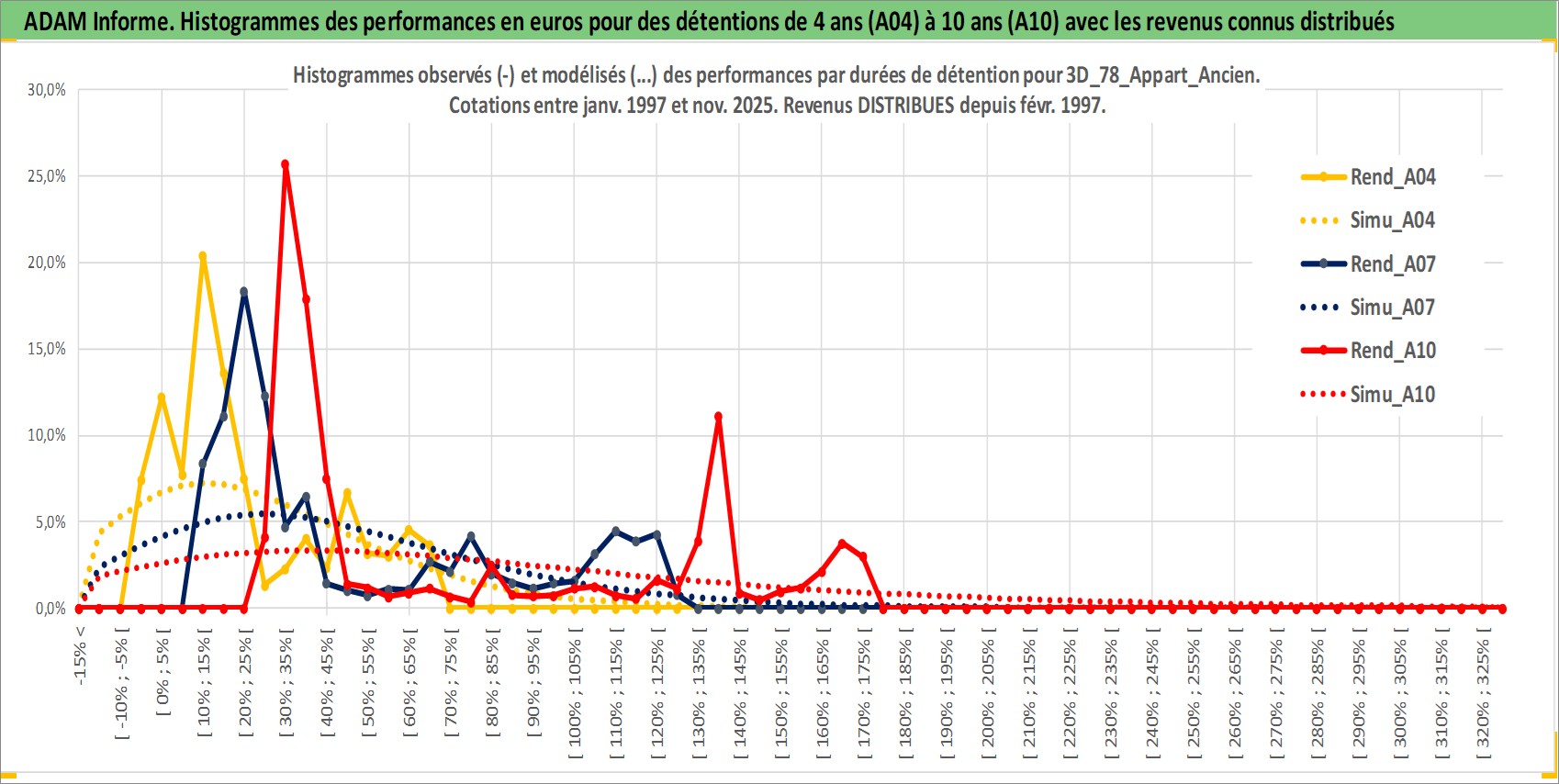 Site dédié aux investisseursPage dédiée sur site financeAnalyse des valorisations hebdomadaires de l'actif 3D_78_Appart_Ancien. Cet actif est cote en EUR. Les valorisations couvrent les semaines 1997W01 a 2025W48. Les loyers de cet actif immobilier sont pris egaux a 3,33% annuels de la valeur venale du logement.