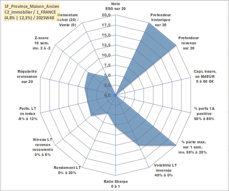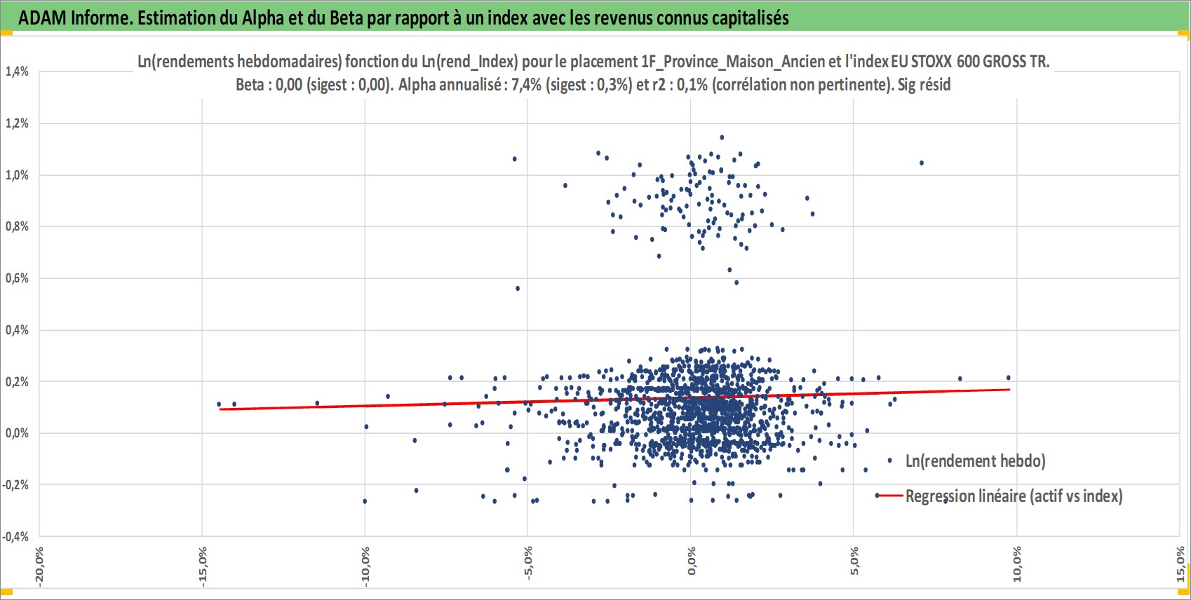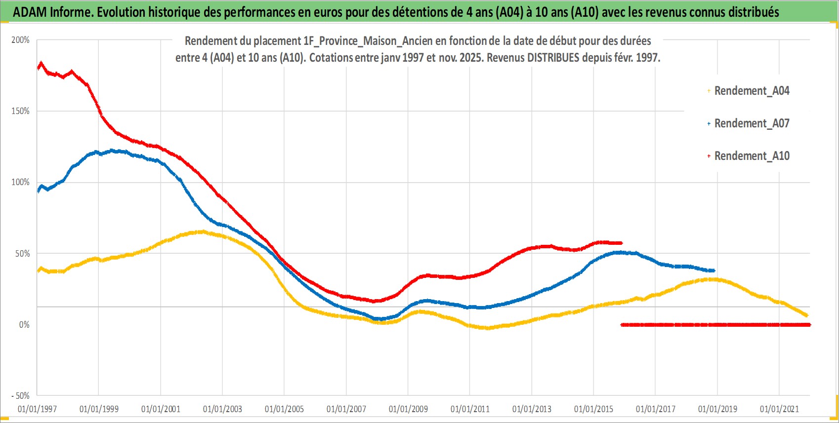 Site dédié aux investisseursPage dédiée sur site financeAnalyse des valorisations hebdomadaires de l'actif 1F_Province_Maison_Ancien. Cet actif est cote en EUR. Les valorisations couvrent les semaines 1997W01 a 2025W48. Les loyers de cet actif immobilier sont pris egaux a 3,33% annuels de la valeur venale du logement.
