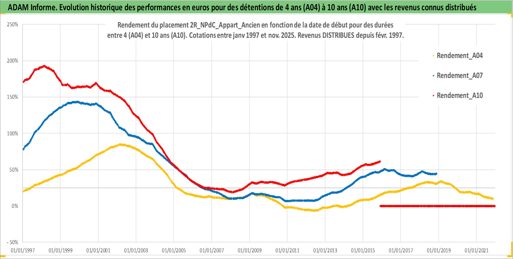 Site dédié aux investisseursPage dédiée sur site financeAnalyse des valorisations hebdomadaires de l'actif 2R_NPdC_Appart_Ancien. Cet actif est cote en EUR. Les valorisations couvrent les semaines 1997W01 a 2025W48. Les loyers de cet actif immobilier sont pris egaux a 3,33% annuels de la valeur venale du logement.