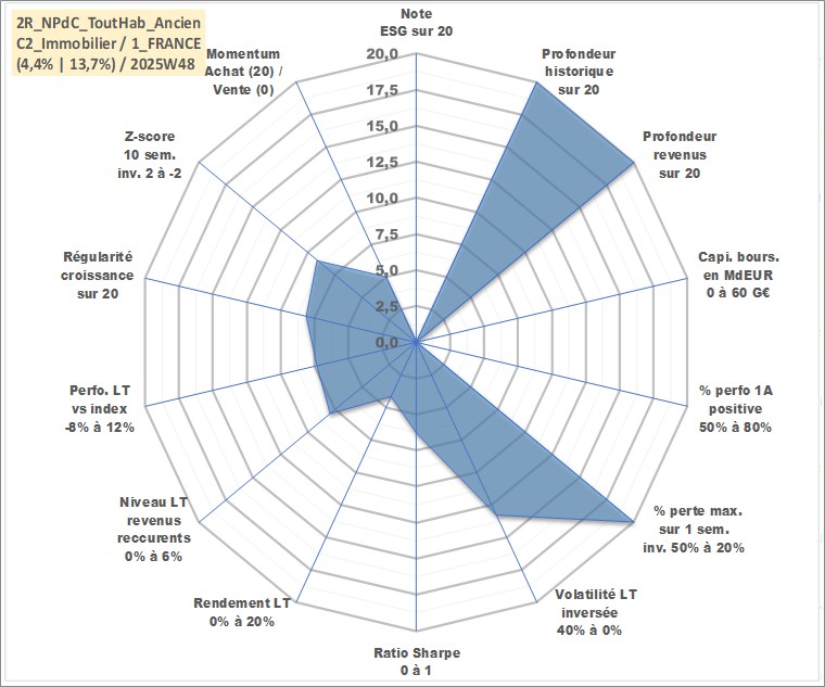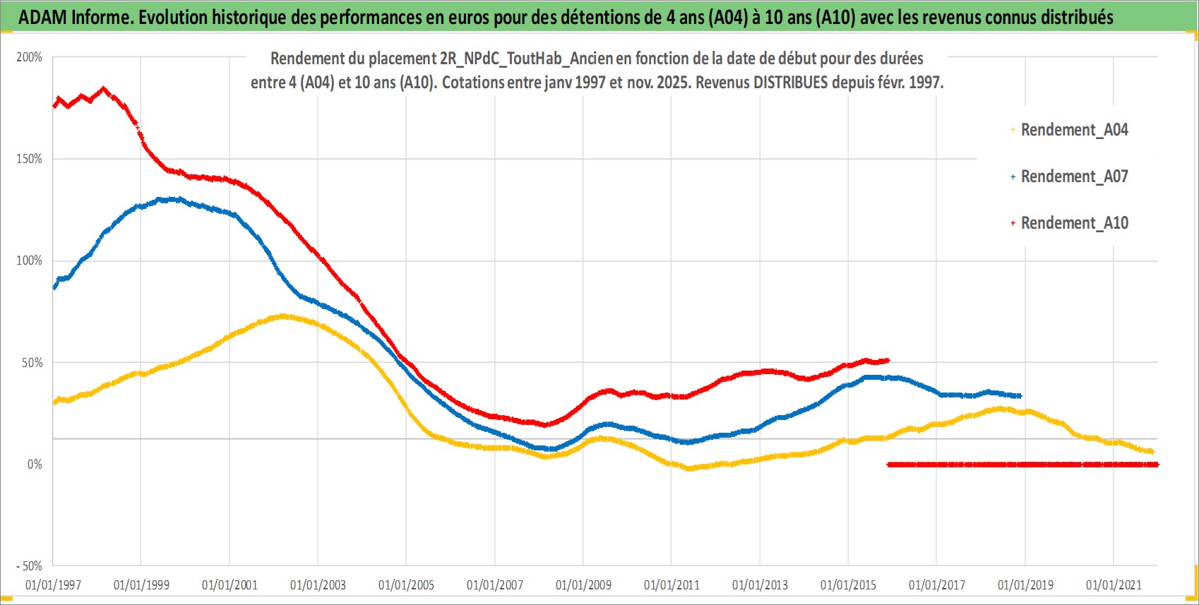 Site dédié aux investisseursPage dédiée sur site financeAnalyse des valorisations hebdomadaires de l'actif 2R_NPdC_ToutHab_Ancien. Cet actif est cote en EUR. Les valorisations couvrent les semaines 1997W01 a 2025W48. Les loyers de cet actif immobilier sont pris egaux a 3,33% annuels de la valeur venale du logement.