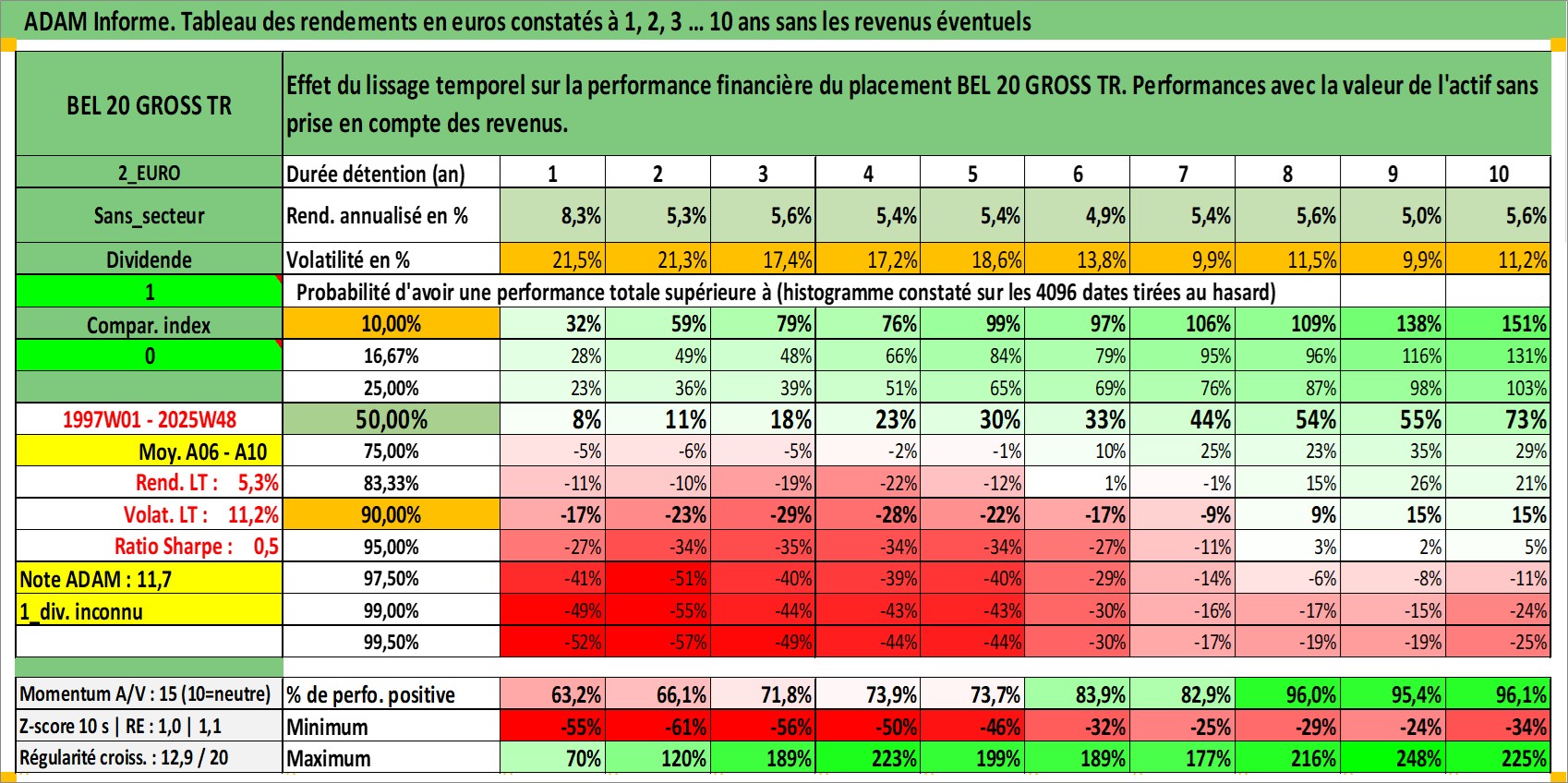 Site dédié aux investisseursPage dédiée sur site financeAnalyse des valorisations hebdomadaires de l'actif BEL 20 GROSS TR. Cet actif est cote en EUR. Les valorisations couvrent les semaines 1997W01 a 2025W48. Les revenus de cet actif financier ne sont pas connus car non existants ou non disponibles sur le site Yahoo Finance. La note ESG de cet actif n'est pas connue.