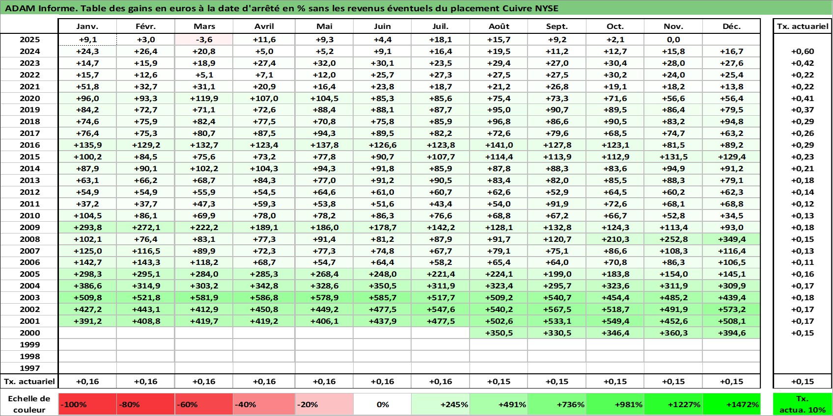 Site dédié aux investisseursPage dédiée sur site financeAnalyse des valorisations hebdomadaires de l'actif Cuivre NYSE. Cet actif est cote en USD. Les valorisations sont en contrevaleur EURO et couvrent les semaines 2000W35 a 2025W48. Les revenus de cet actif financier ne sont pas connus car non existants ou non disponibles sur le site Yahoo Finance. La note ESG de cet actif n'est pas connue.