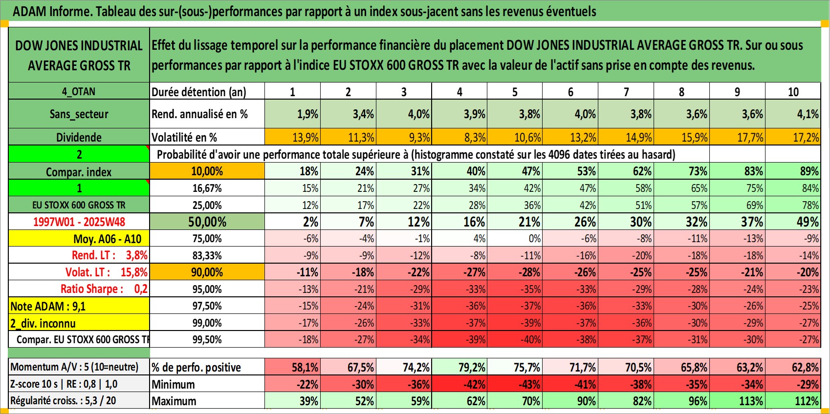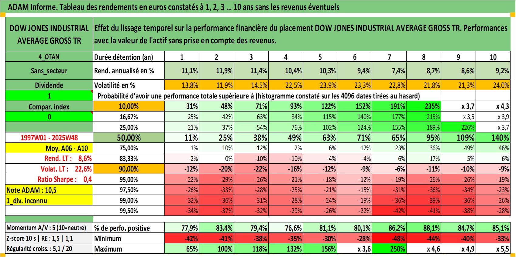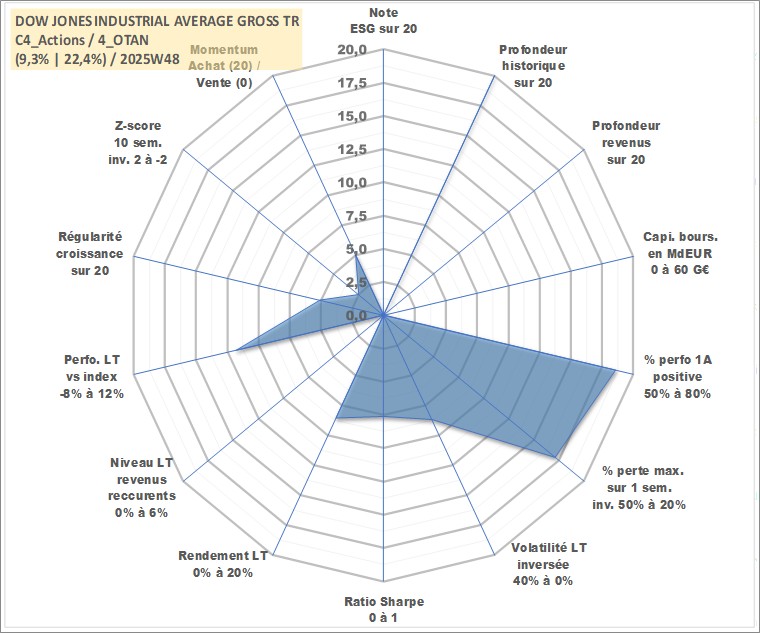 Site dédié aux investisseursPage dédiée sur site financeAnalyse des valorisations hebdomadaires de l'actif DOW JONES INDUSTRIAL AVERAGE GROSS TR. Cet actif est cote en USD. Les valorisations sont en contrevaleur EURO et couvrent les semaines 1997W01 a 2025W14. Les revenus de cet actif financier ne sont pas connus car non existants ou non disponibles sur le site Yahoo Finance. La note ESG de cet actif n'est pas connue.