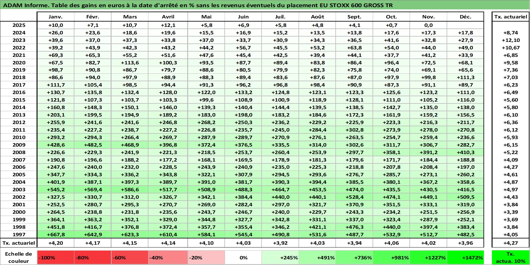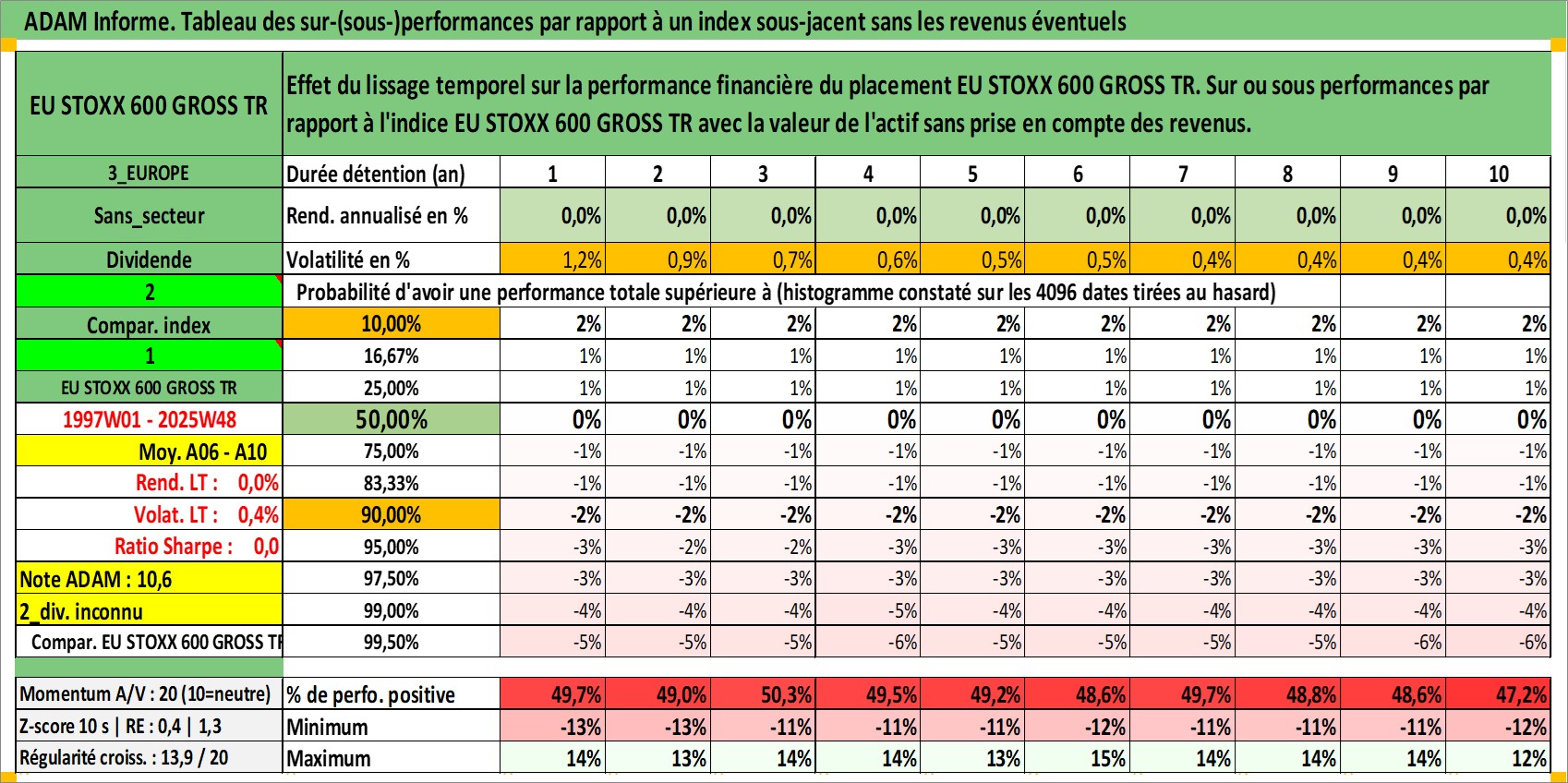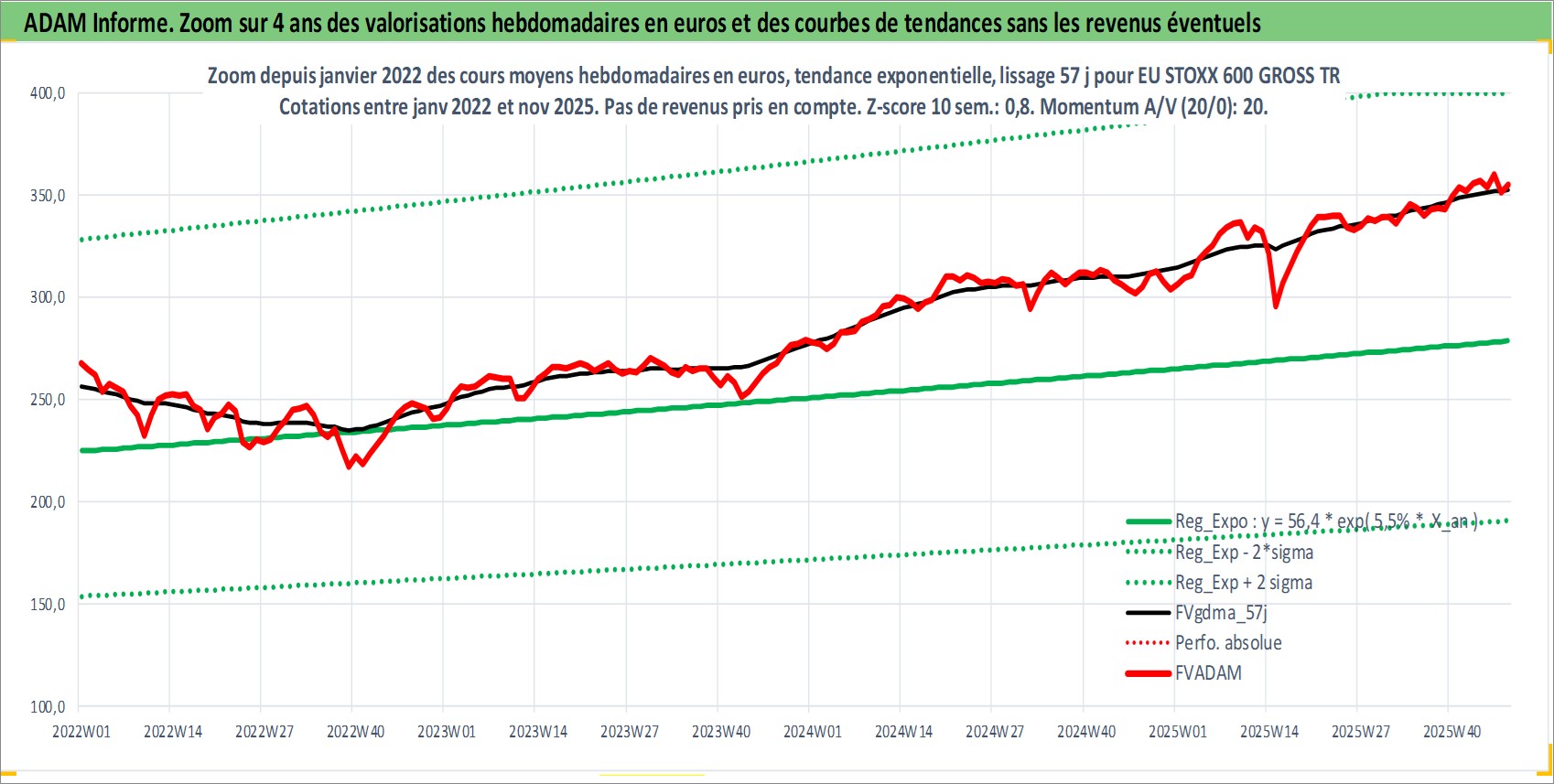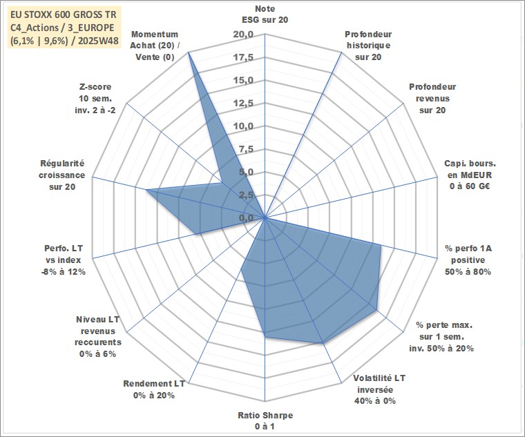Site dédié aux investisseursPage dédiée sur site financeAnalyse des valorisations hebdomadaires de l'actif EU STOXX 600 GROSS TR. Cet actif est cote en EUR. Les valorisations couvrent les semaines 1997W01 a 2025W48. Les revenus de cet actif financier ne sont pas connus car non existants ou non disponibles sur le site Yahoo Finance. La note ESG de cet actif n'est pas connue.