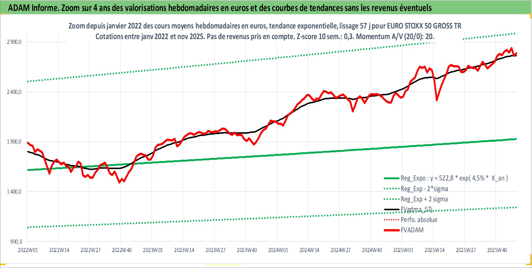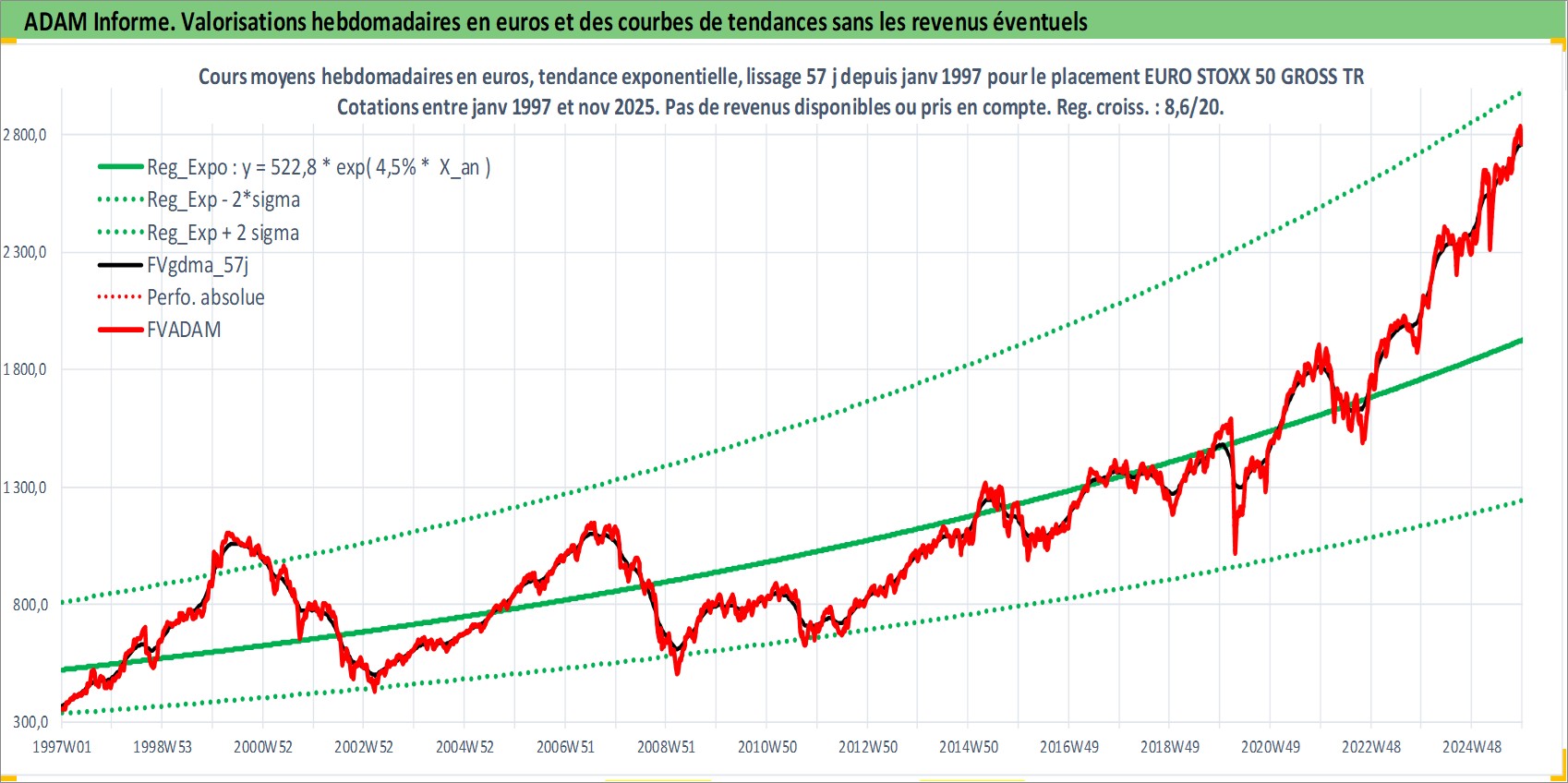 Site dédié aux investisseursPage dédiée sur site financeAnalyse des valorisations hebdomadaires de l'actif EURO STOXX 50 GROSS TR. Cet actif est cote en EUR. Les valorisations couvrent les semaines 1997W01 a 2025W48. Les revenus de cet actif financier ne sont pas connus car non existants ou non disponibles sur le site Yahoo Finance. La note ESG de cet actif n'est pas connue.