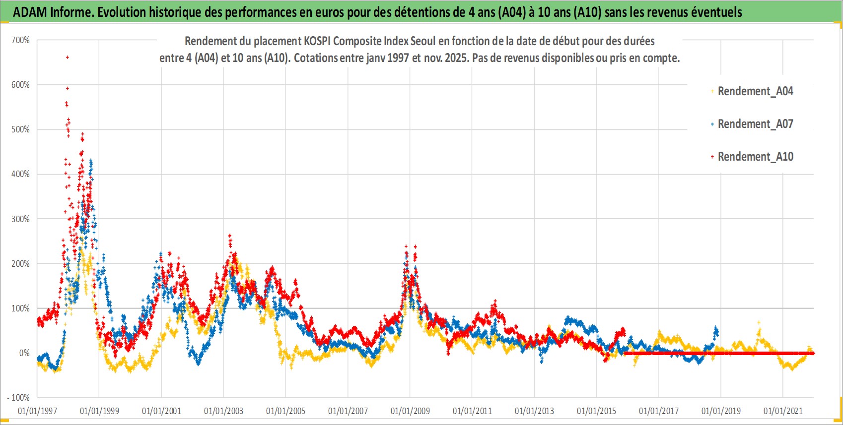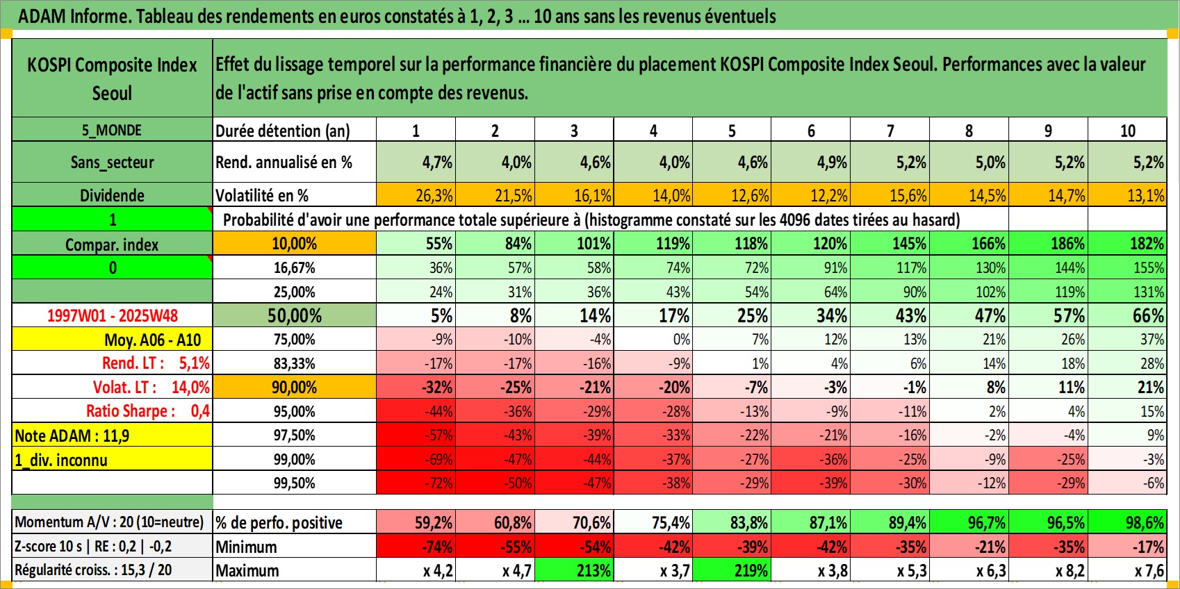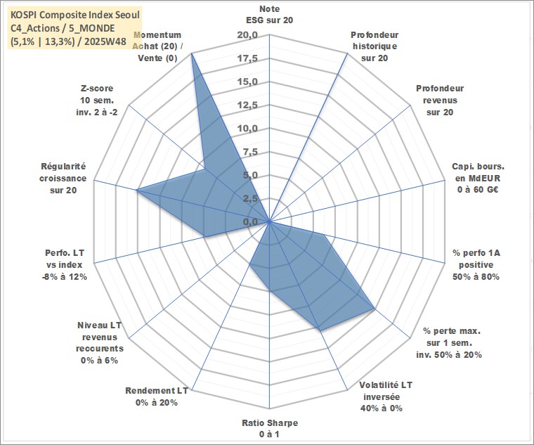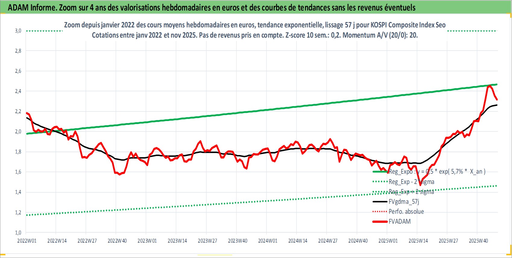 Site dédié aux investisseursPage dédiée sur site financeAnalyse des valorisations hebdomadaires de l'actif KOSPI Composite Index Seoul. Cet actif est cote en KRW. Les valorisations sont en contrevaleur EURO et couvrent les semaines 1997W01 a 2025W48. Les revenus de cet actif financier ne sont pas connus car non existants ou non disponibles sur le site Yahoo Finance. La note ESG de cet actif n'est pas connue.