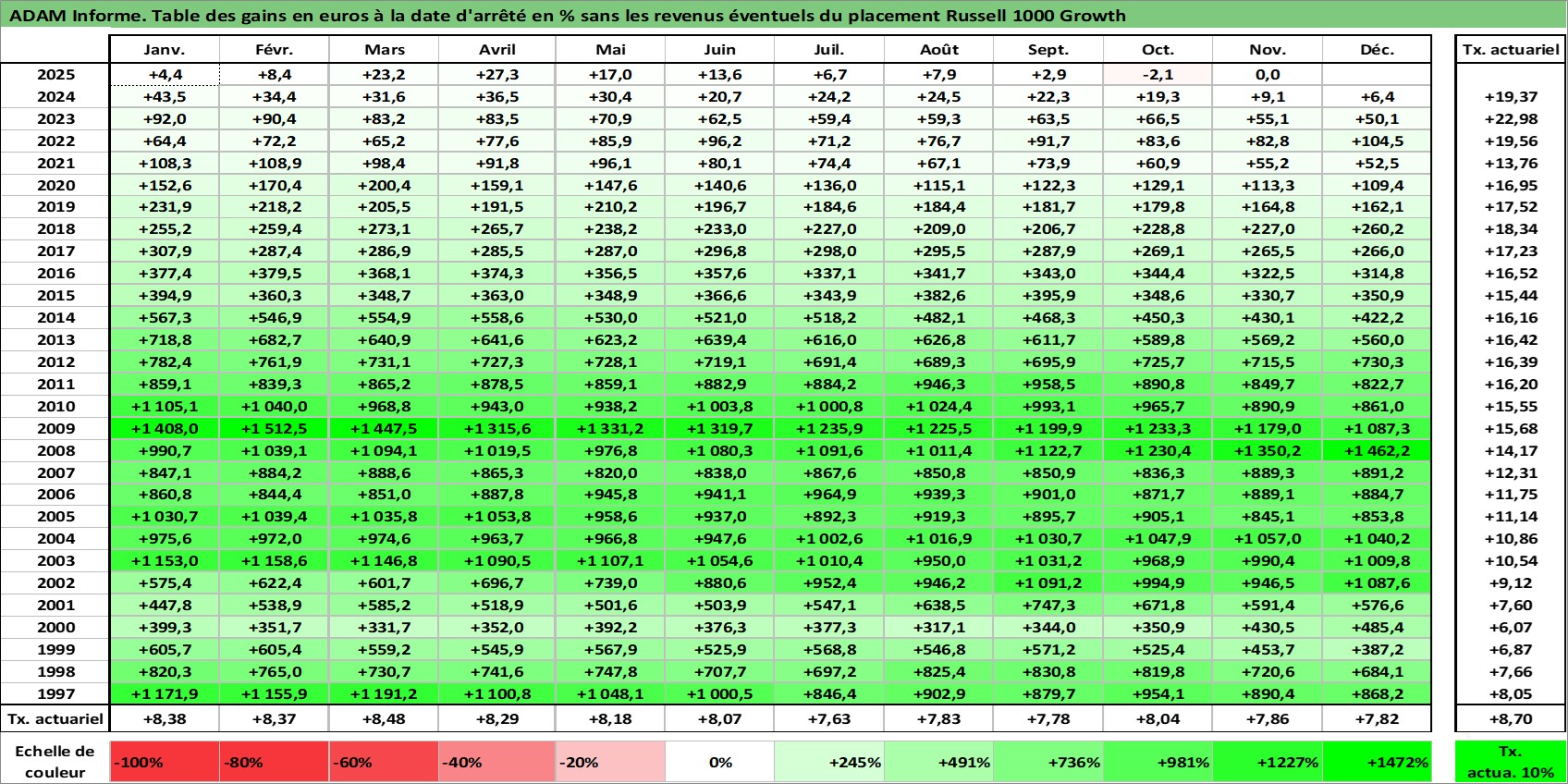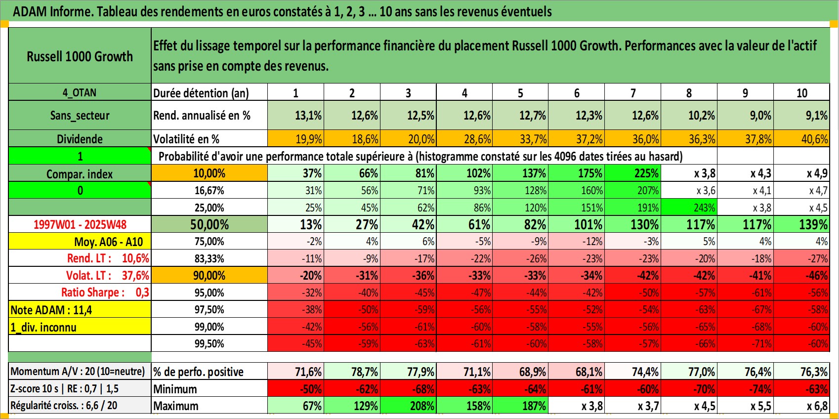 Dernière perfo 10 ans en %