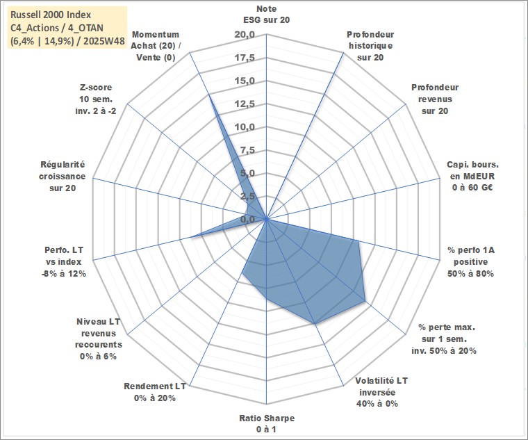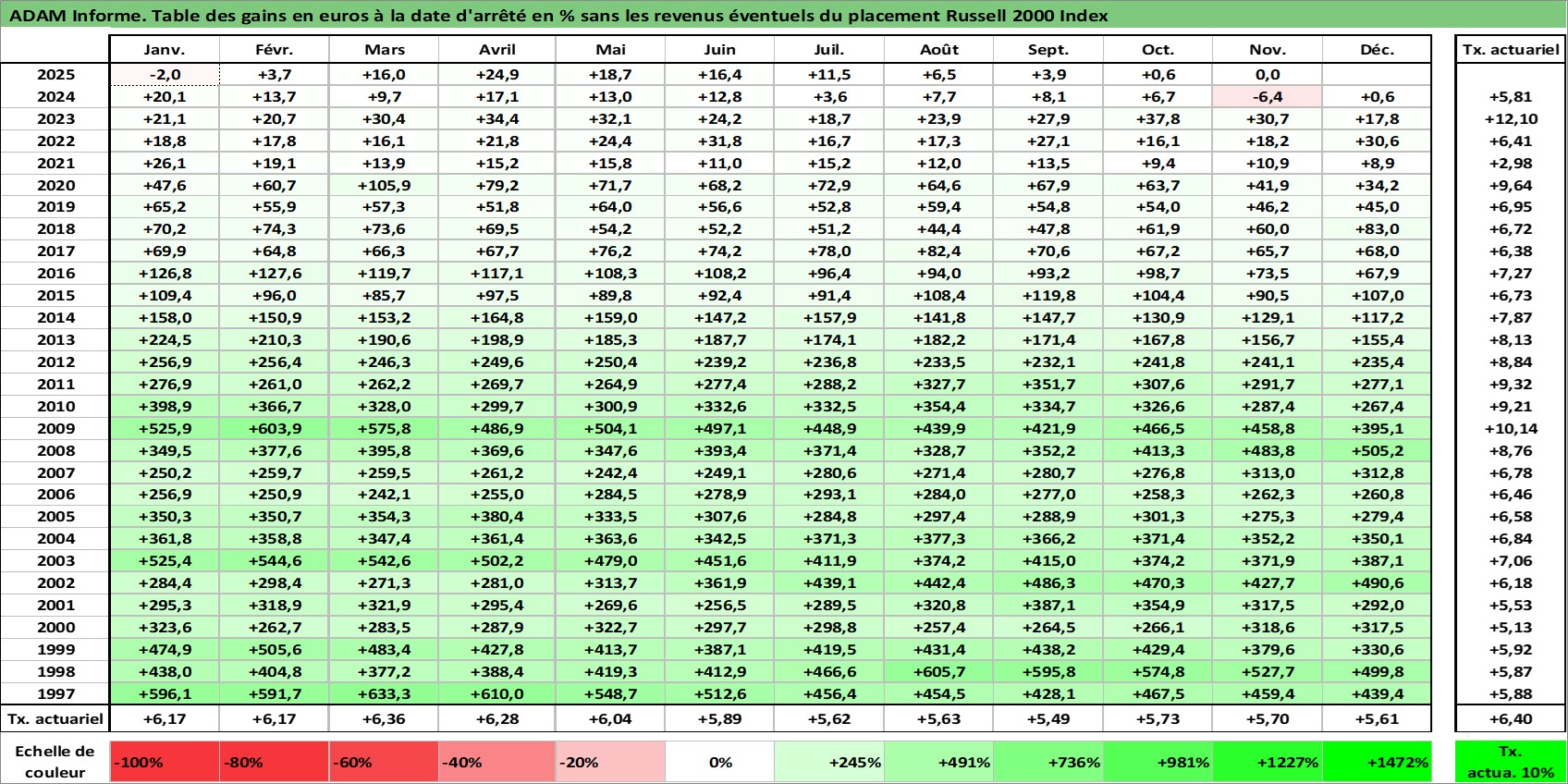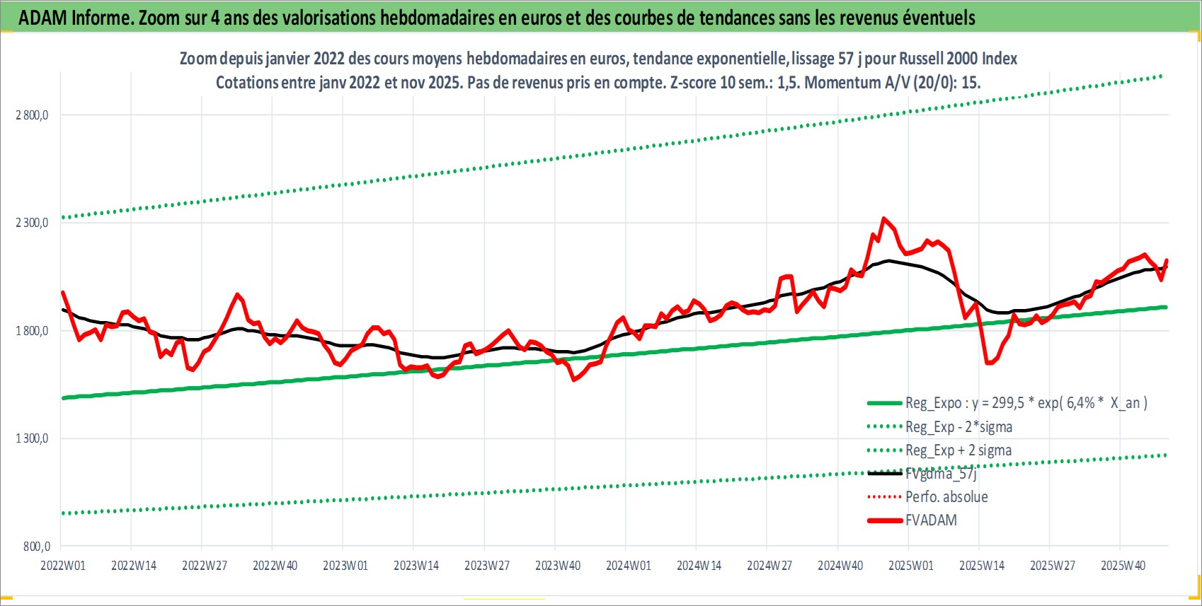 Site dédié aux investisseursPage dédiée sur site financeAnalyse des valorisations hebdomadaires de l'actif Russell 2000 Index. Cet actif est cote en USD. Les valorisations sont en contrevaleur EURO et couvrent les semaines 1997W01 a 2025W48. Les revenus de cet actif financier ne sont pas connus car non existants ou non disponibles sur le site Yahoo Finance. La note ESG de cet actif n'est pas connue.