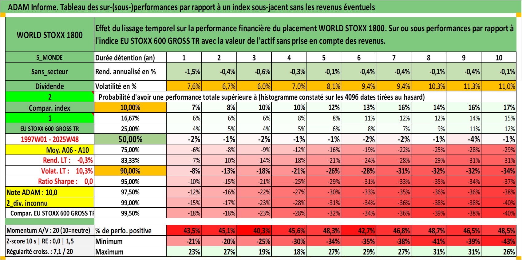 Site dédié aux investisseursPage dédiée sur site financeAnalyse des valorisations hebdomadaires de l'actif WORLD STOXX 1800. Cet actif est cote en USD. Les valorisations sont en contrevaleur EURO et couvrent les semaines 1997W01 a 2025W48. Les revenus de cet actif financier ne sont pas connus car non existants ou non disponibles sur le site Yahoo Finance. La note ESG de cet actif n'est pas connue.
