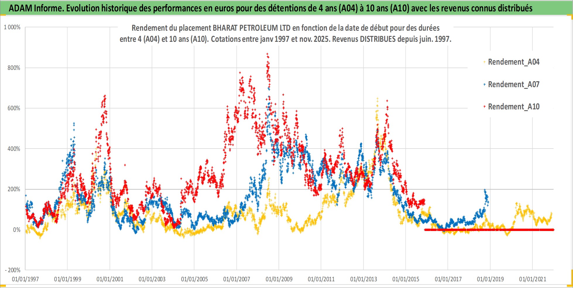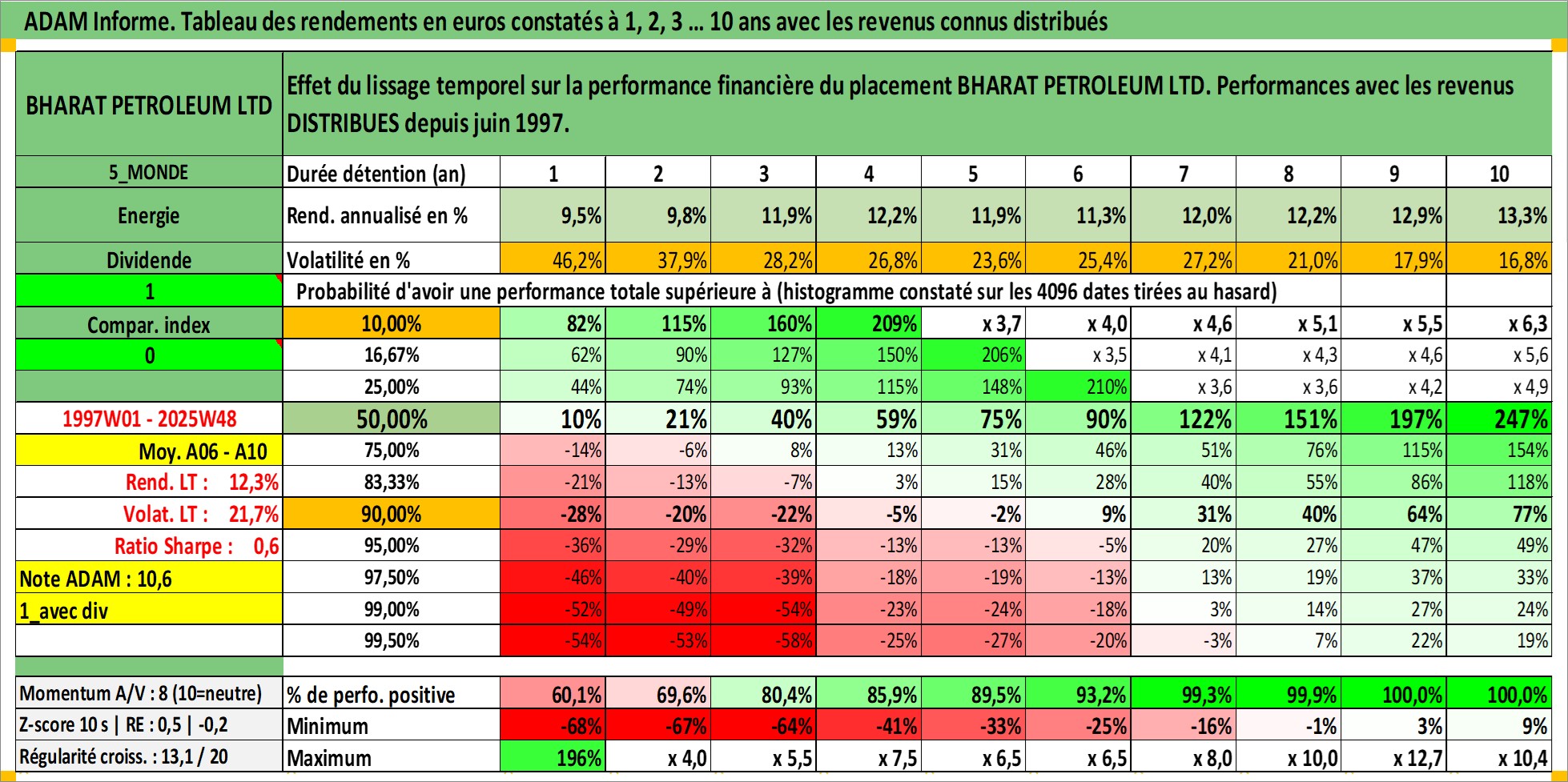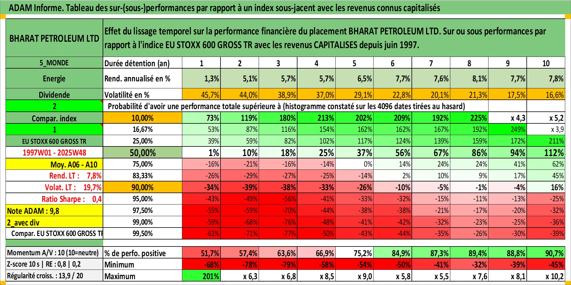 Site dédié aux investisseursPage dédiée sur site financeAnalyse des valorisations hebdomadaires de l'action BHARAT PETROLEUM LTD. Cet actif est cote en INR. Les valorisations sont en contrevaleur EURO et couvrent les semaines 1997W01 a 2025W48. Les revenus de cet actif financier sont pris en compte depuis la semaine 1997W26. La note globale ESG de cet actif est estimee a 3.0 (apres rebasage entre 0 et 20).