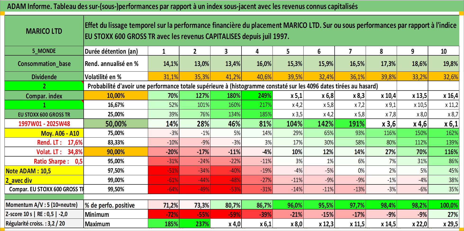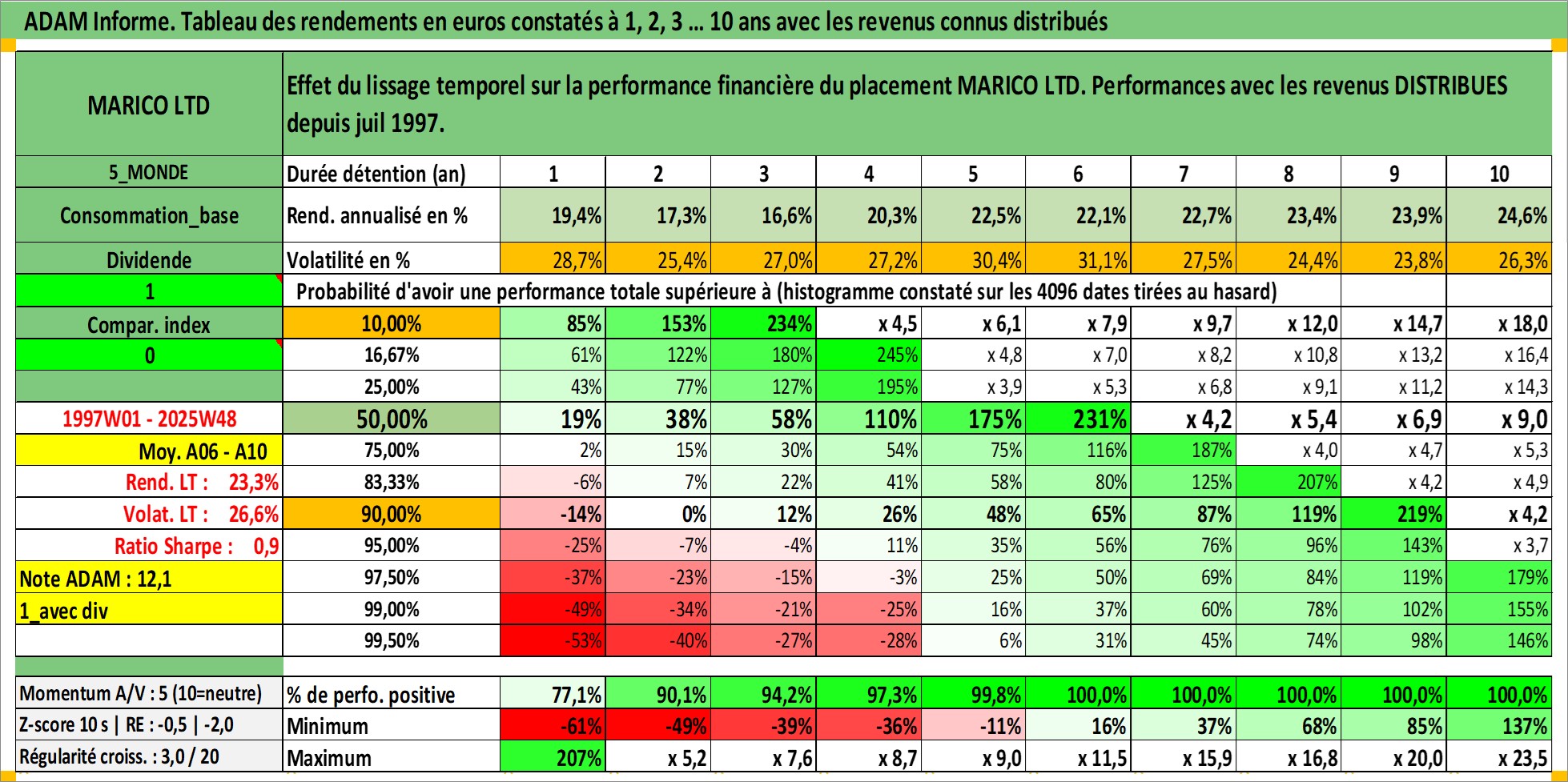 Dernière perfo 10 ans en %
