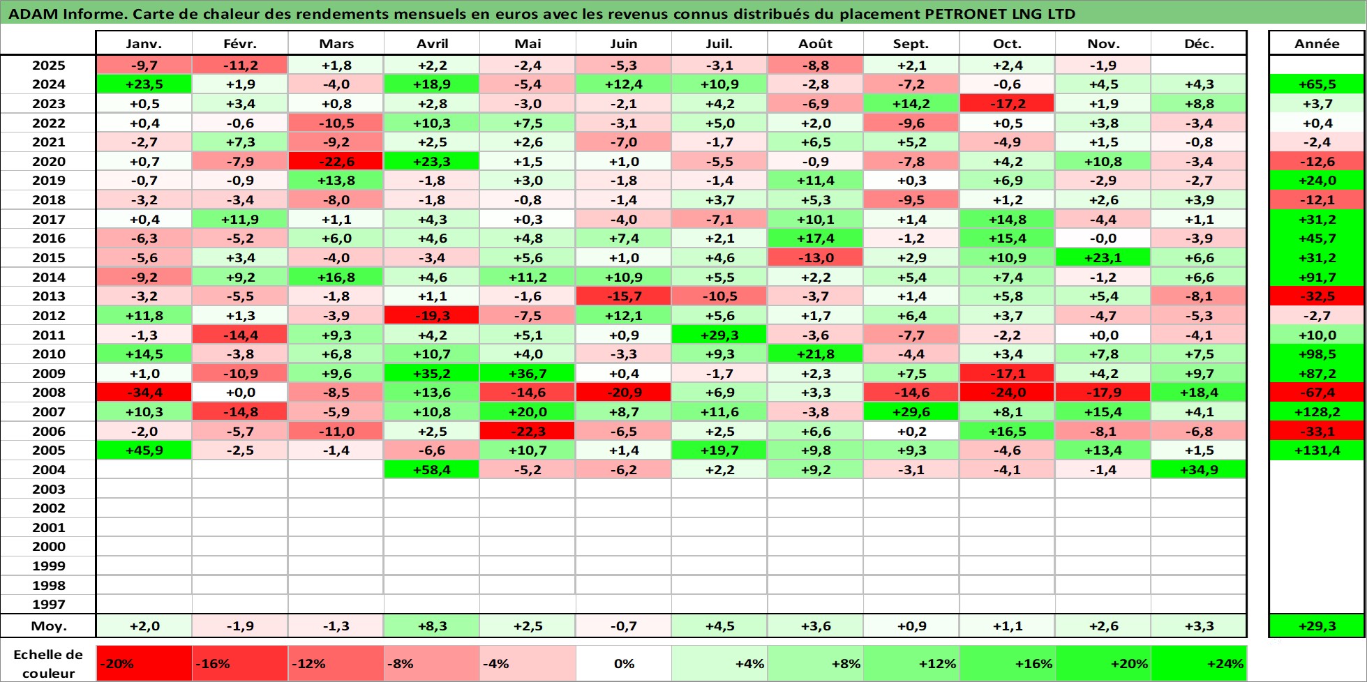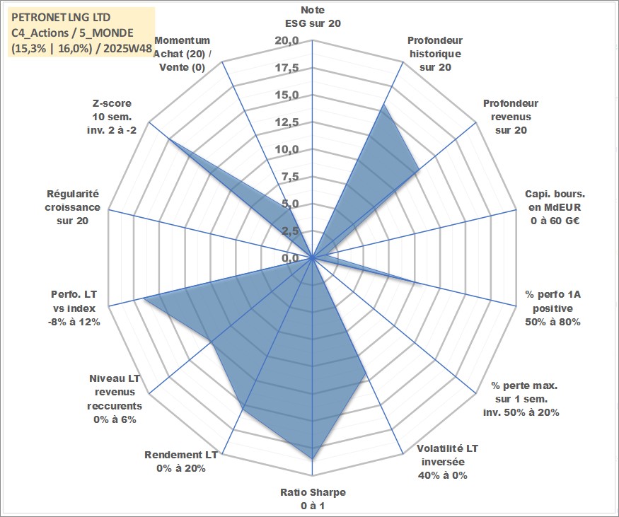 Site dédié aux investisseursPage dédiée sur site financeAnalyse des valorisations hebdomadaires de l'action PETRONET LNG LTD. Cet actif est cote en INR. Les valorisations sont en contrevaleur EURO et couvrent les semaines 2004W13 a 2025W48. Les revenus de cet actif financier sont pris en compte depuis la semaine 2007W22. La note ESG de cet actif n'est pas connue.