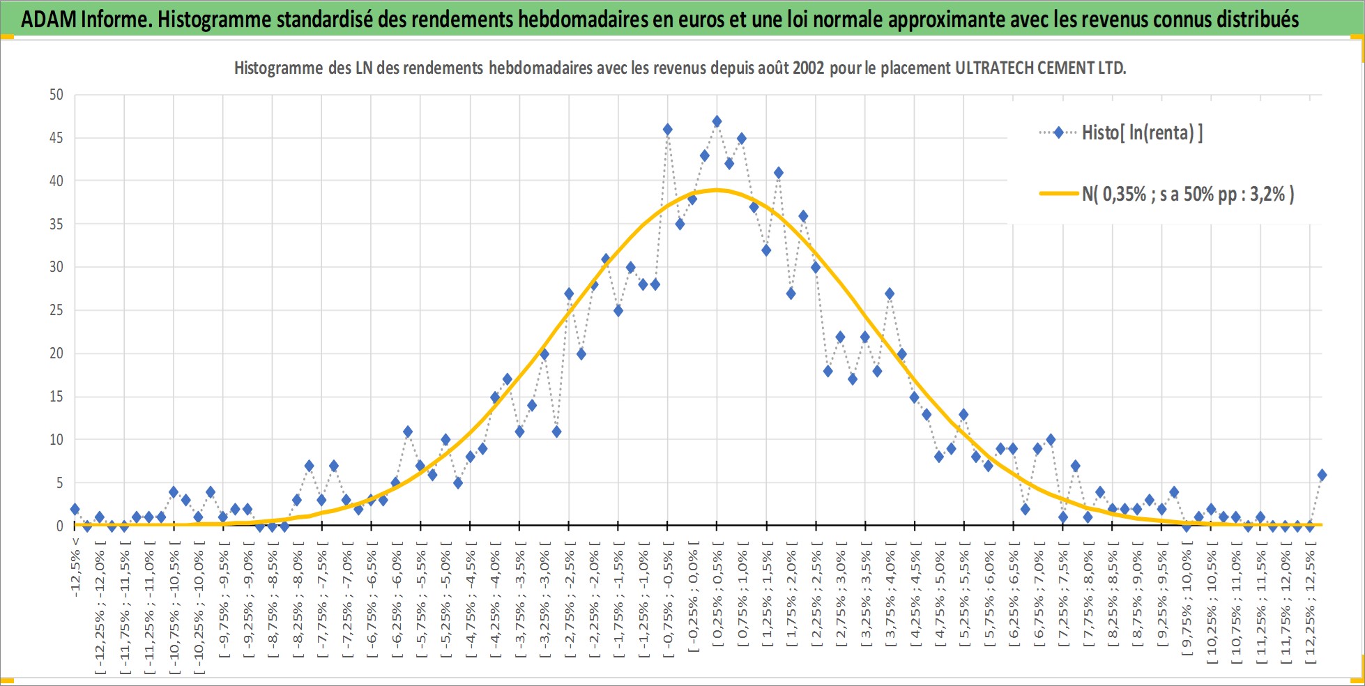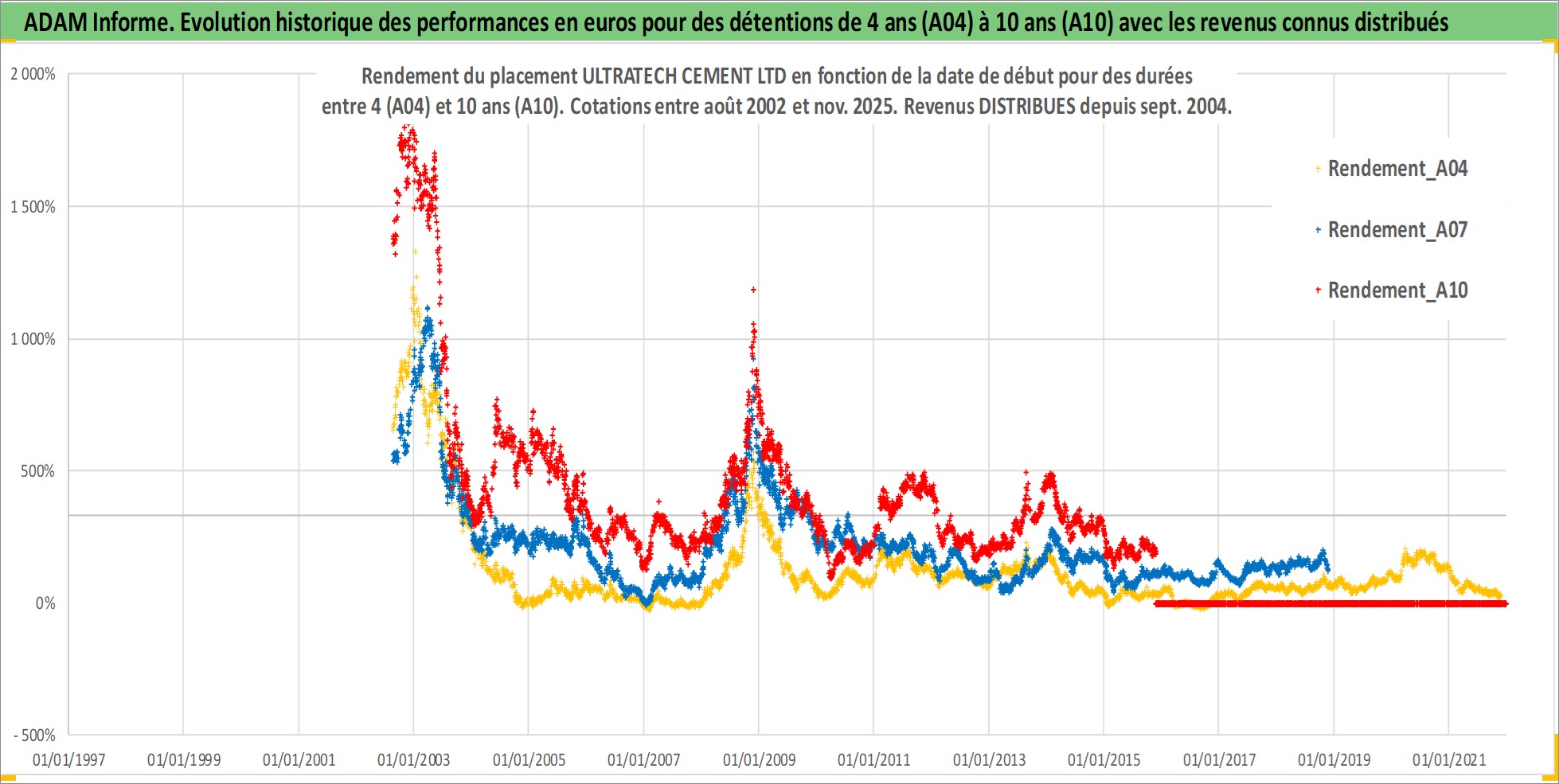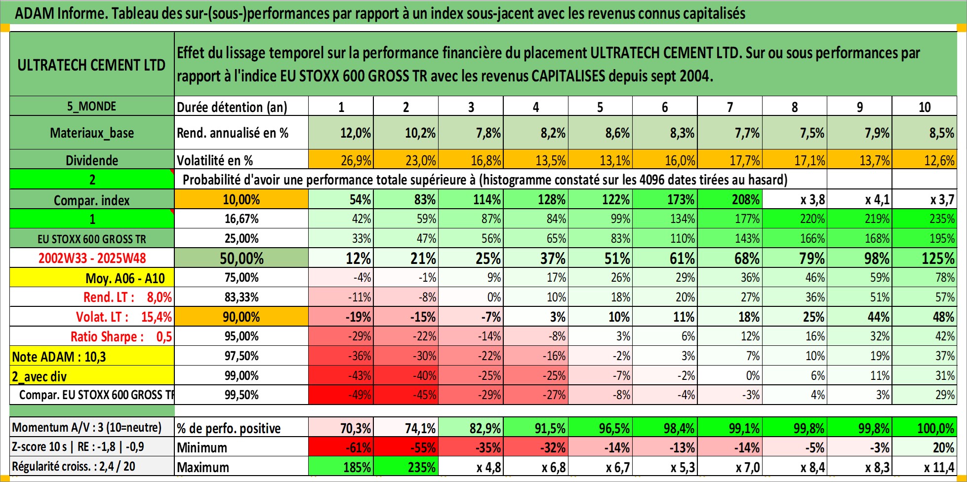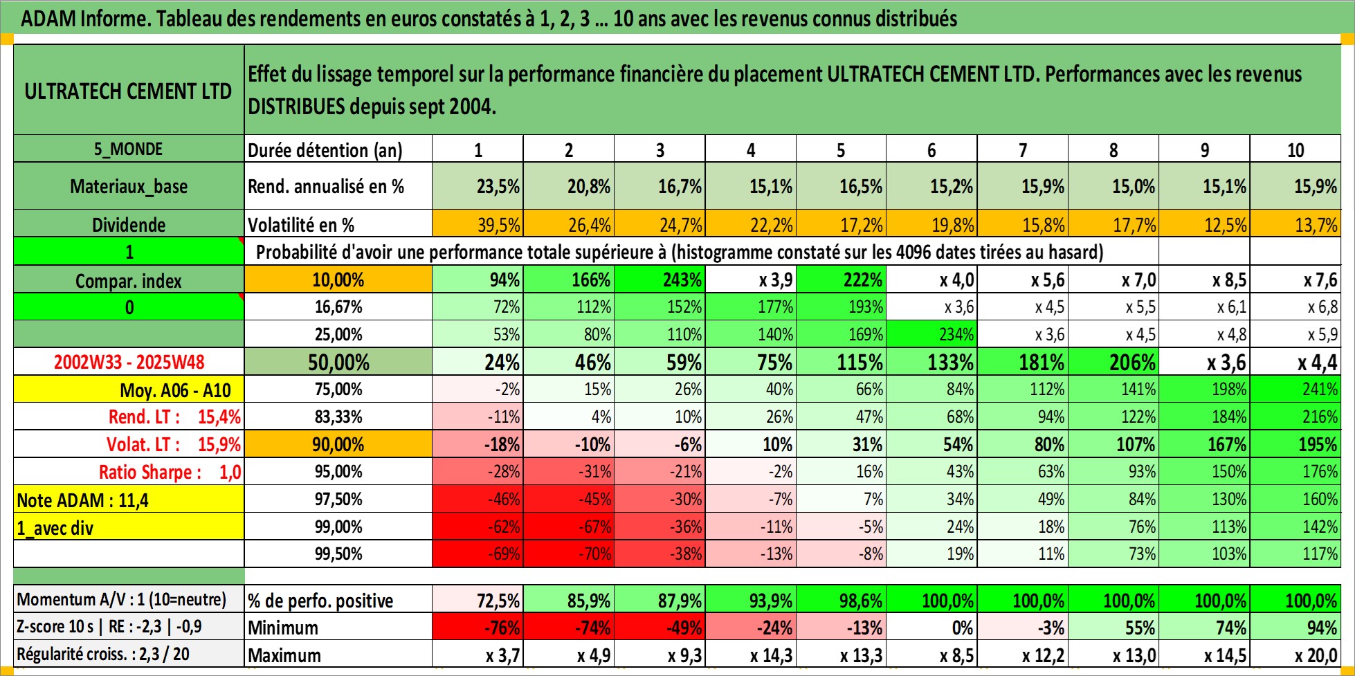 Site dédié aux investisseursPage dédiée sur site financeAnalyse des valorisations hebdomadaires de l'action ULTRATECH CEMENT LTD. Cet actif est cote en INR. Les valorisations sont en contrevaleur EURO et couvrent les semaines 2002W33 a 2025W48. Les revenus de cet actif financier sont pris en compte depuis la semaine 2004W40. La note globale ESG de cet actif est estimee a 3.0 (apres rebasage entre 0 et 20).