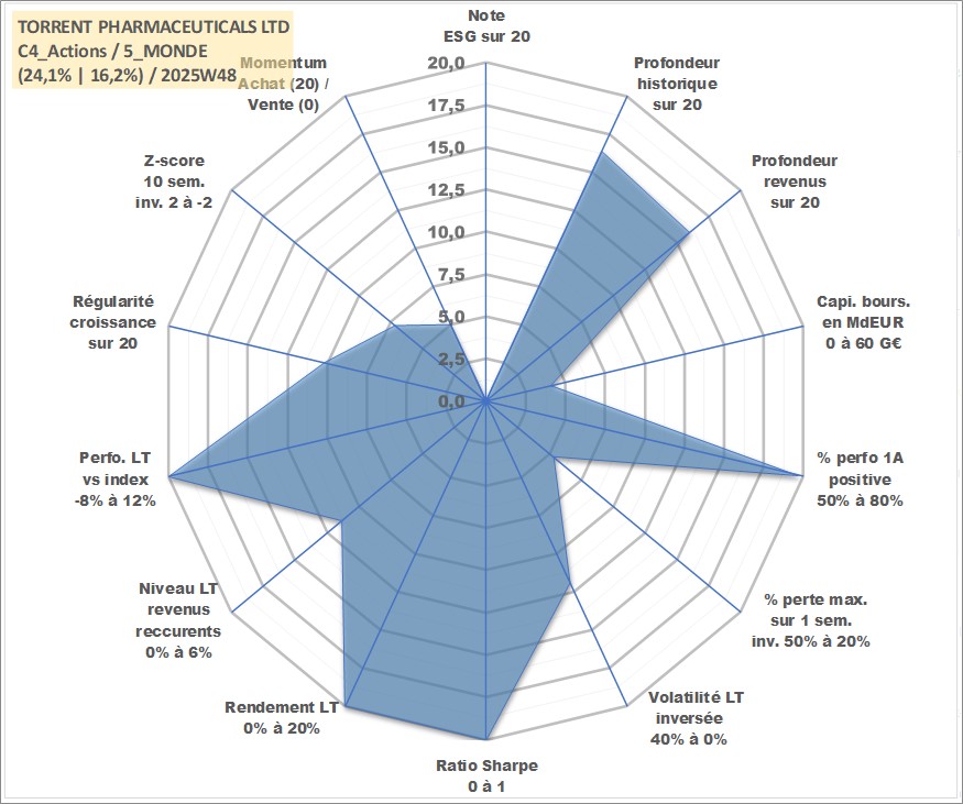 Site dédié aux investisseursPage dédiée sur site financeAnalyse des valorisations hebdomadaires de l'action TORRENT PHARMACEUTICALS LTD. Cet actif est cote en INR. Les valorisations sont en contrevaleur EURO et couvrent les semaines 2002W27 a 2025W48. Les revenus de cet actif financier sont pris en compte depuis la semaine 2003W24. La note ESG de cet actif n'est pas connue.