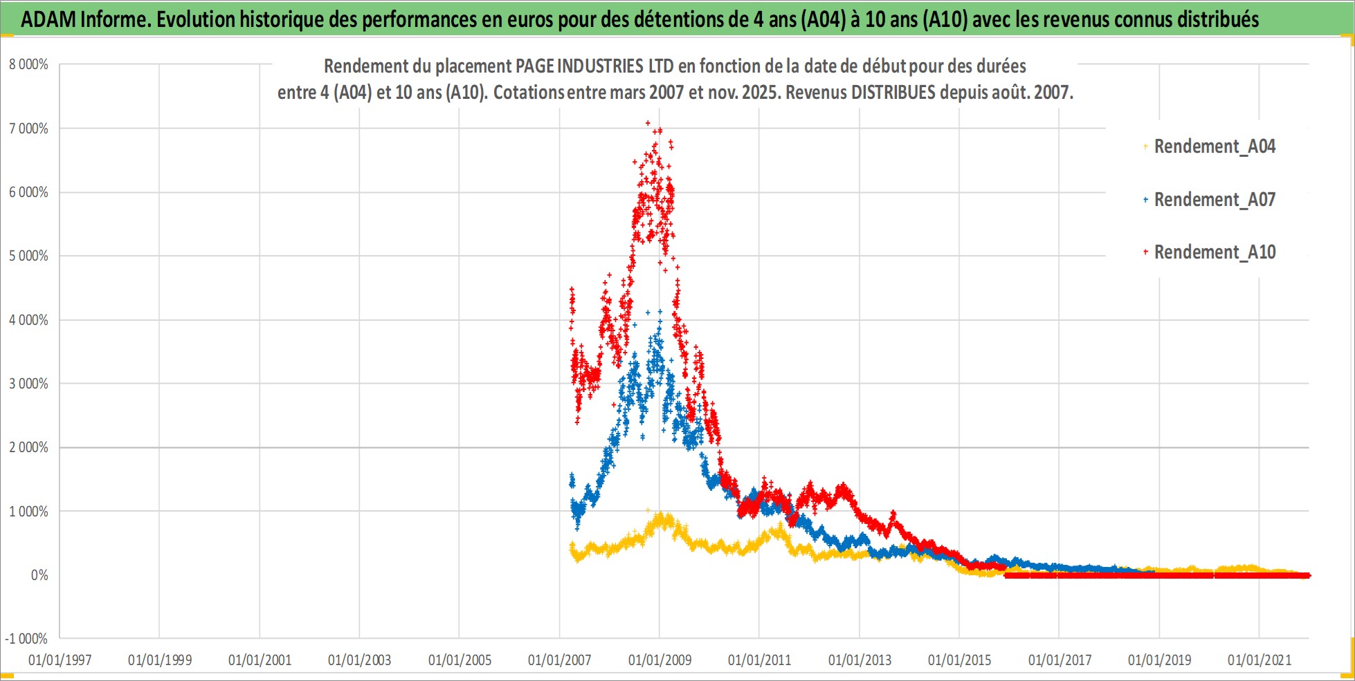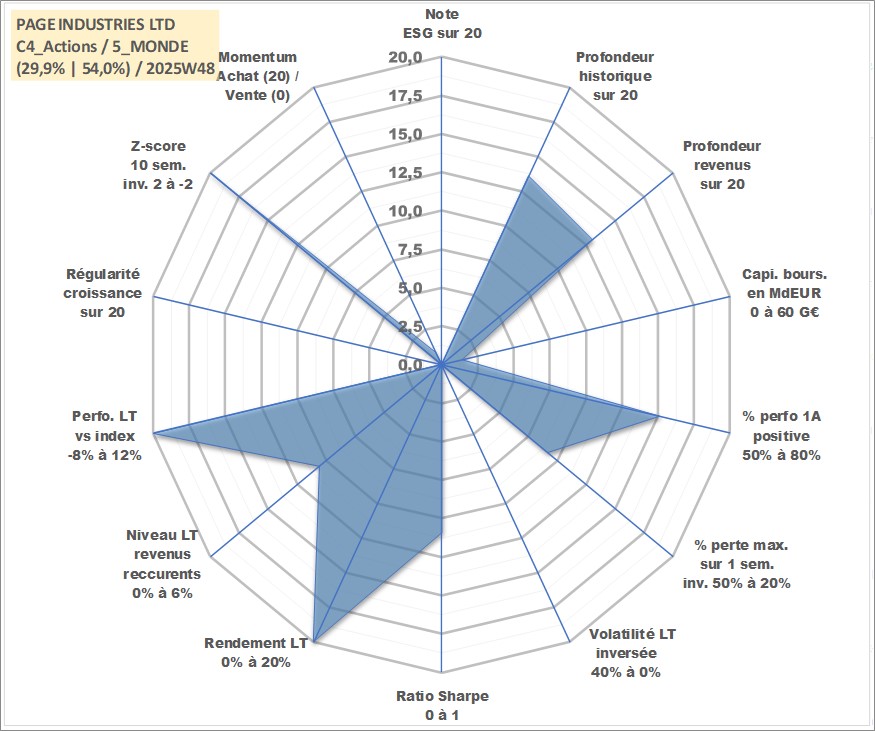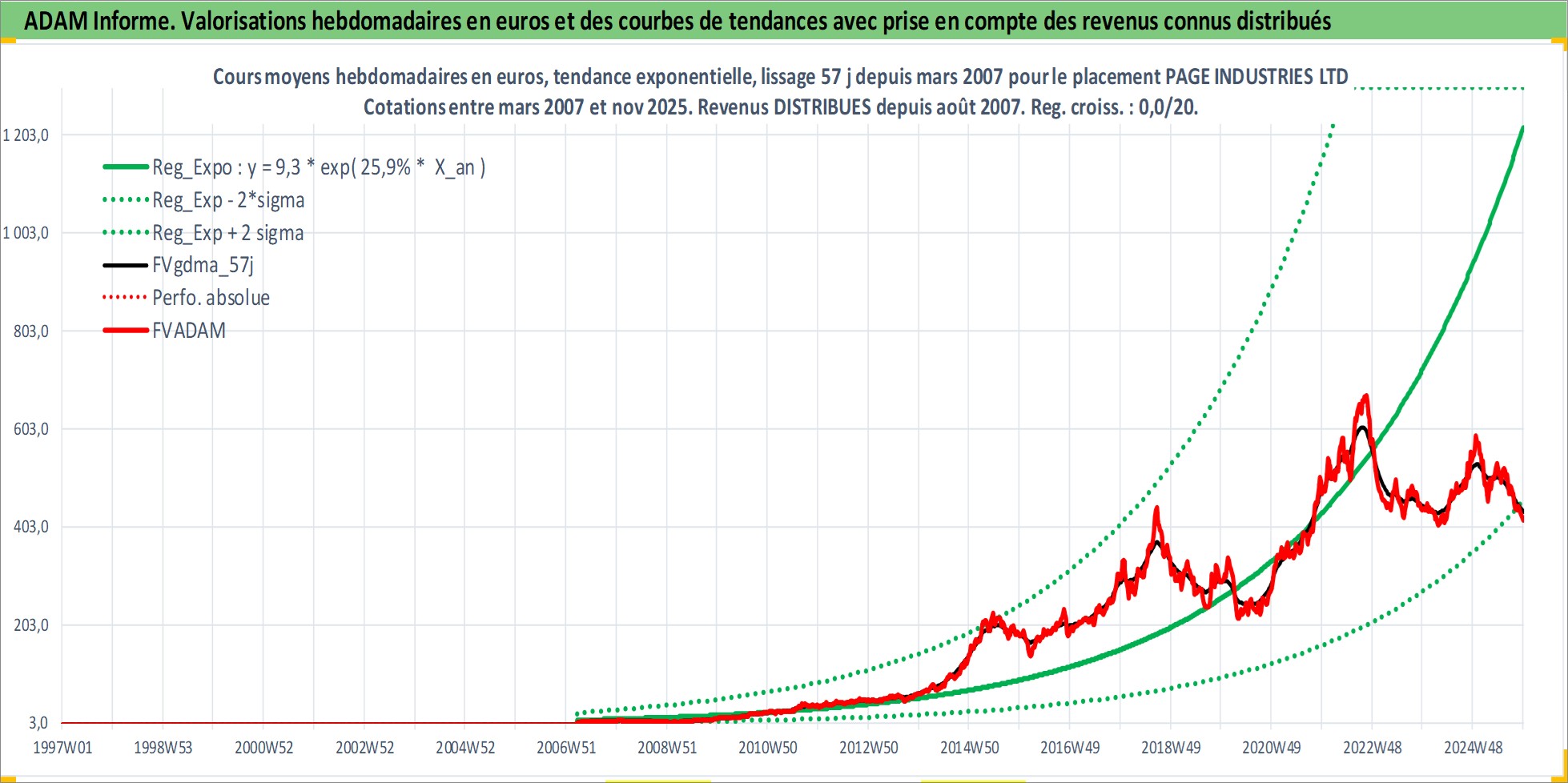 Site dédié aux investisseursPage dédiée sur site financeAnalyse des valorisations hebdomadaires de l'action PAGE INDUSTRIES LTD. Cet actif est cote en INR. Les valorisations sont en contrevaleur EURO et couvrent les semaines 2007W11 a 2025W48. Les revenus de cet actif financier sont pris en compte depuis la semaine 2007W35. La note ESG de cet actif n'est pas connue.
