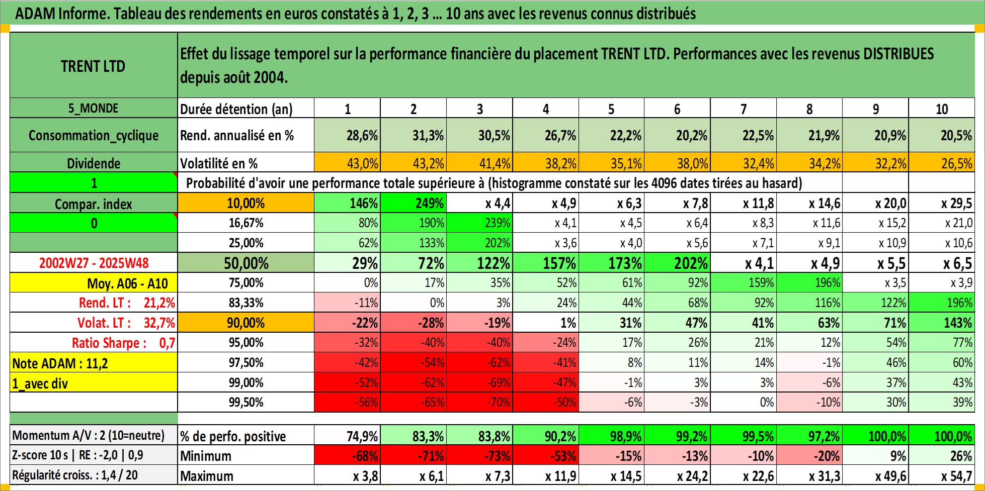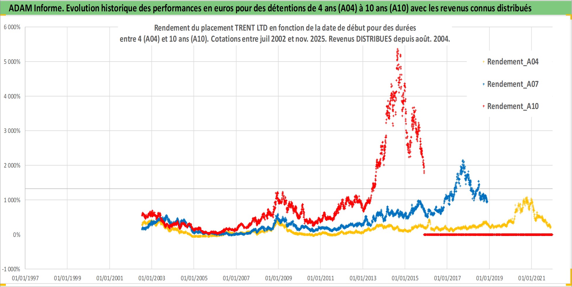 Site dédié aux investisseursPage dédiée sur site financeAnalyse des valorisations hebdomadaires de l'action TRENT LTD. Cet actif est cote en INR. Les valorisations sont en contrevaleur EURO et couvrent les semaines 2002W27 a 2025W48. Les revenus de cet actif financier sont pris en compte depuis la semaine 2004W32. La note ESG de cet actif n'est pas connue.
