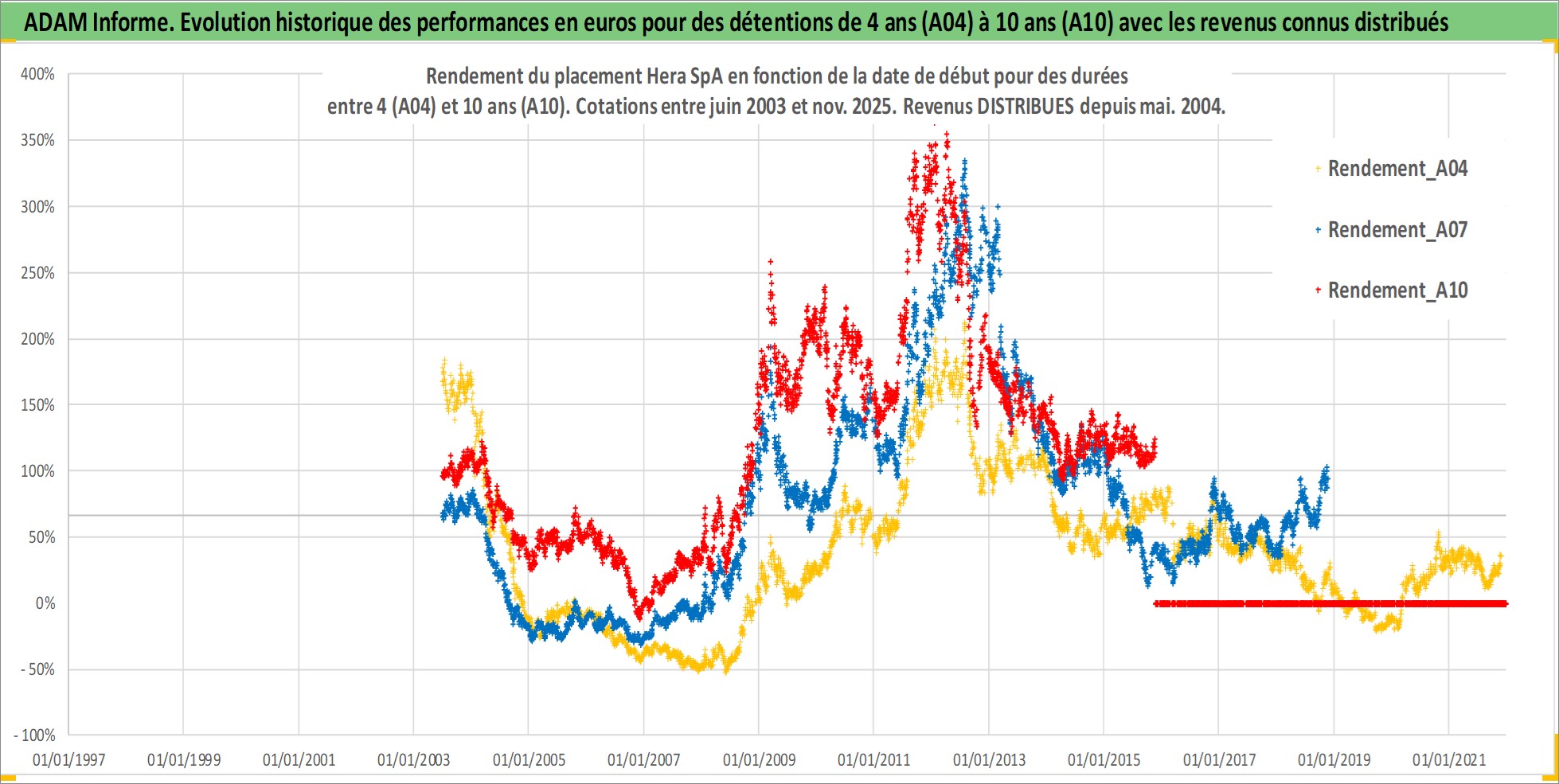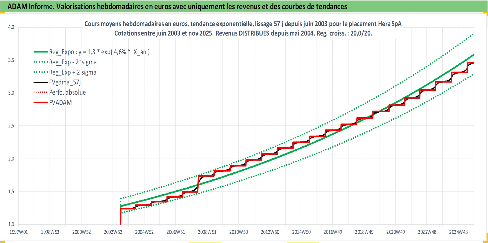 Site dédié aux investisseursPage dédiée sur site financeAnalyse des valorisations hebdomadaires de l'action Hera SpA. Cet actif est cote en EUR. Les valorisations couvrent les semaines 2003W26 a 2025W48. Les revenus de cet actif financier sont pris en compte depuis la semaine 2004W23. La note ESG de cet actif n'est pas connue.