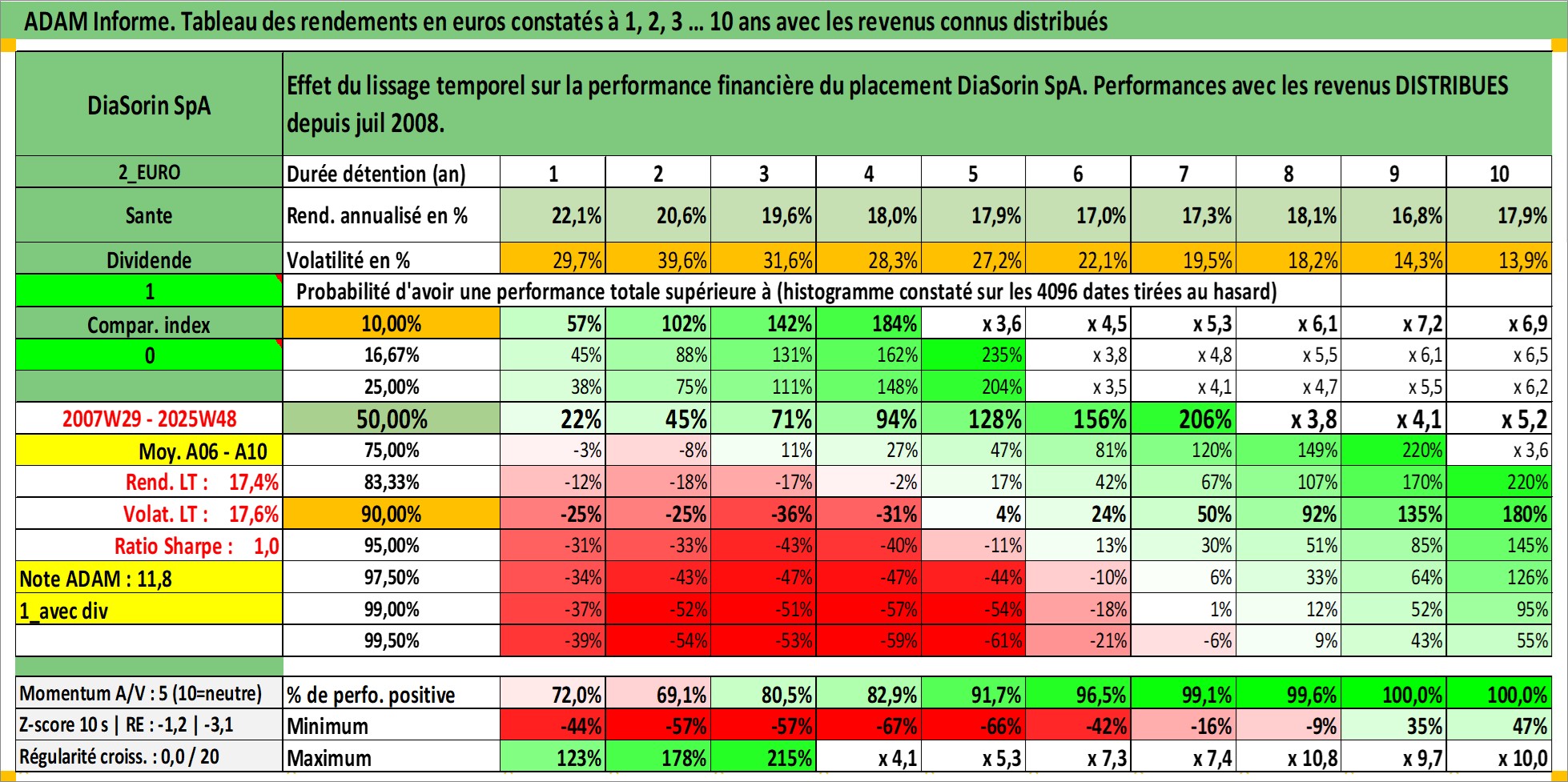 Site dédié aux investisseursPage dédiée sur site financeAnalyse des valorisations hebdomadaires de l'action DiaSorin SpA. Cet actif est cote en EUR. Les valorisations couvrent les semaines 2007W29 a 2025W48. Les revenus de cet actif financier sont pris en compte depuis la semaine 2008W29. La note ESG de cet actif n'est pas connue.