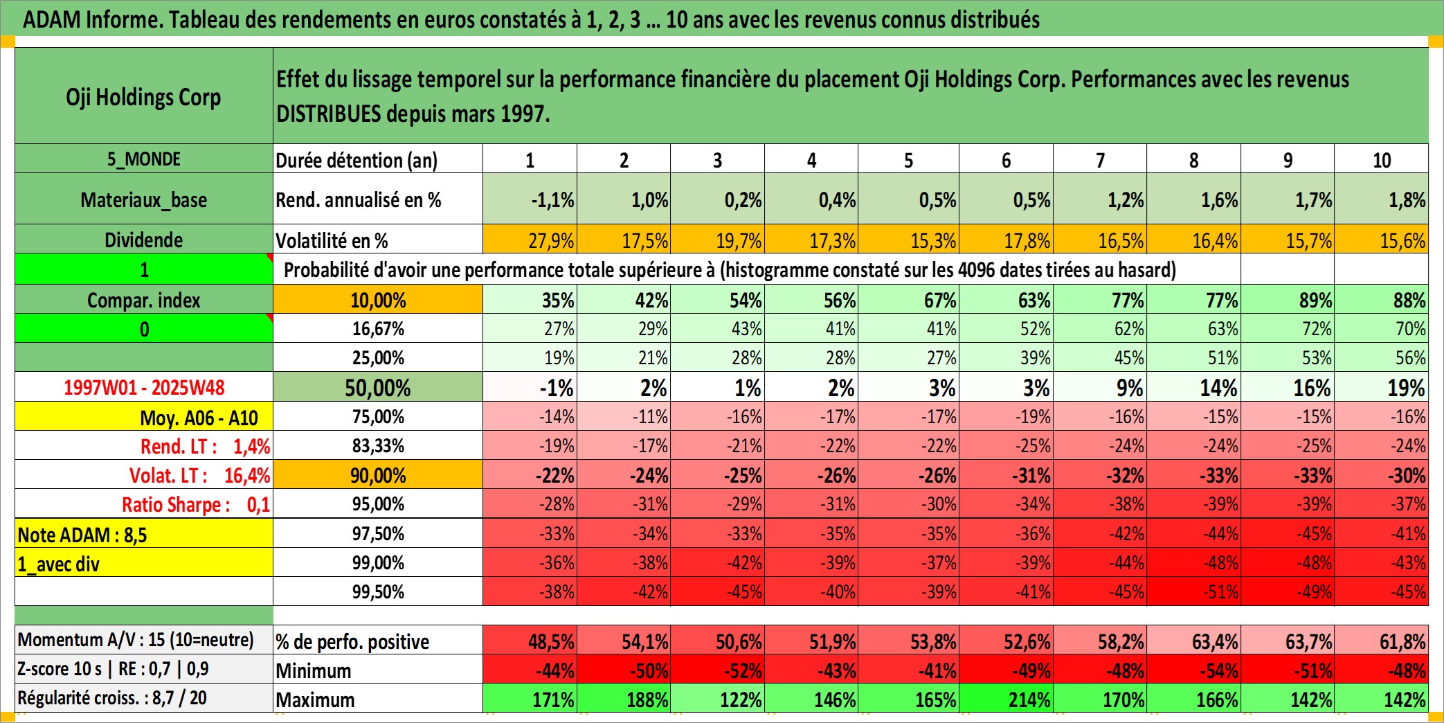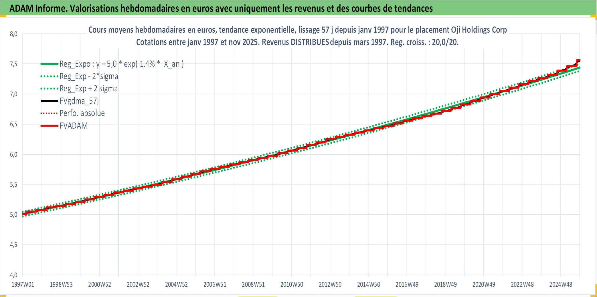 Site dédié aux investisseursPage dédiée sur site financeAnalyse des valorisations hebdomadaires de l'action Oji Holdings Corp. Cet actif est cote en JPY. Les valorisations sont en contrevaleur EURO et couvrent les semaines 1997W01 a 2025W48. Les revenus de cet actif financier sont pris en compte depuis la semaine 1997W13. La note ESG de cet actif n'est pas connue.