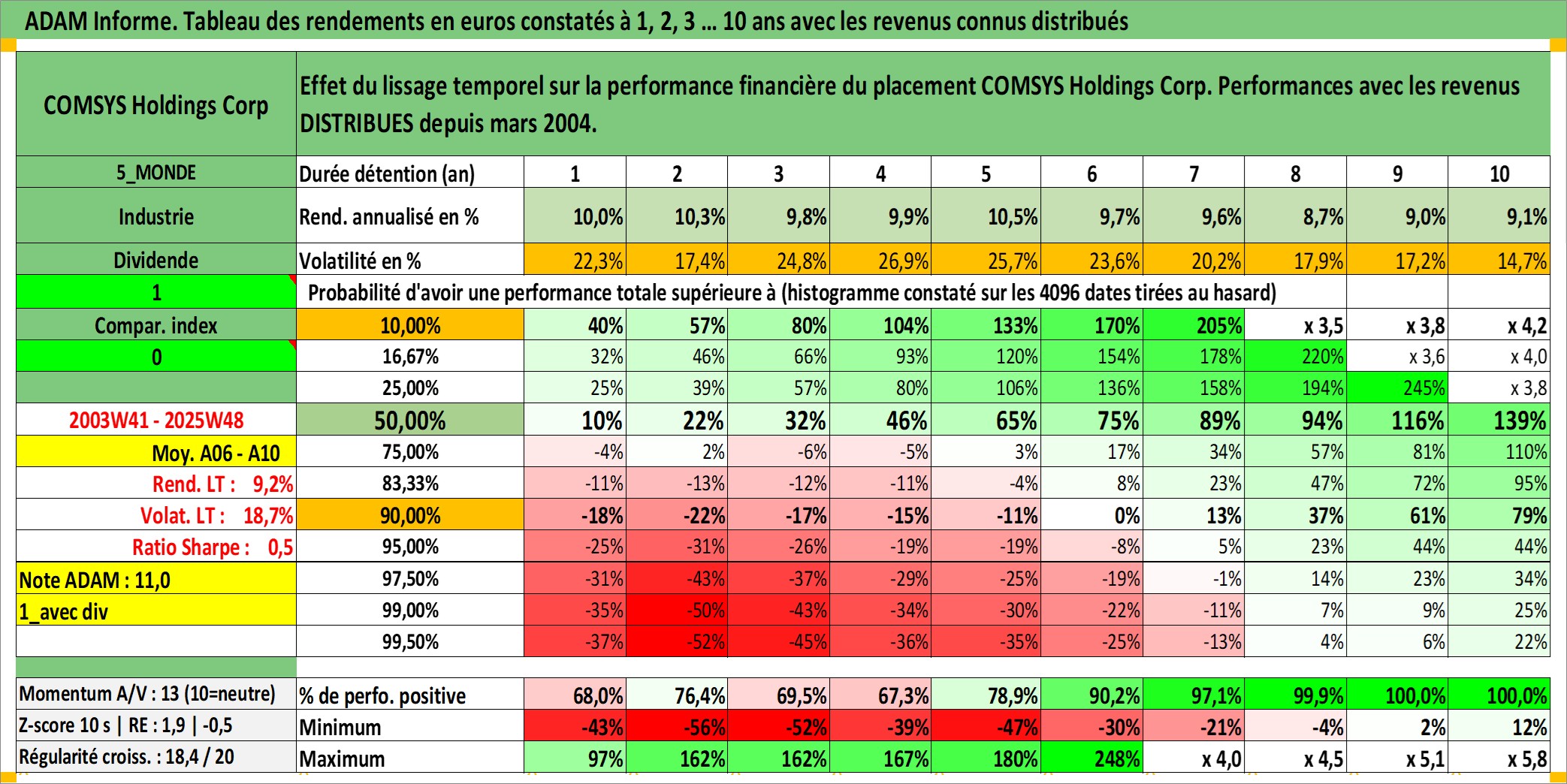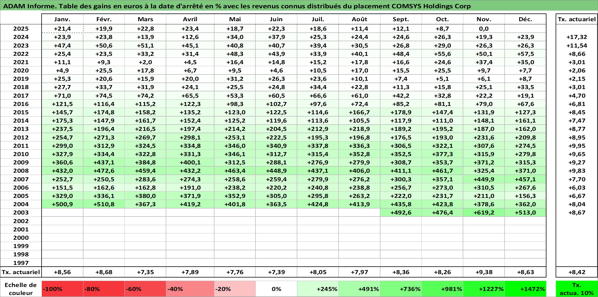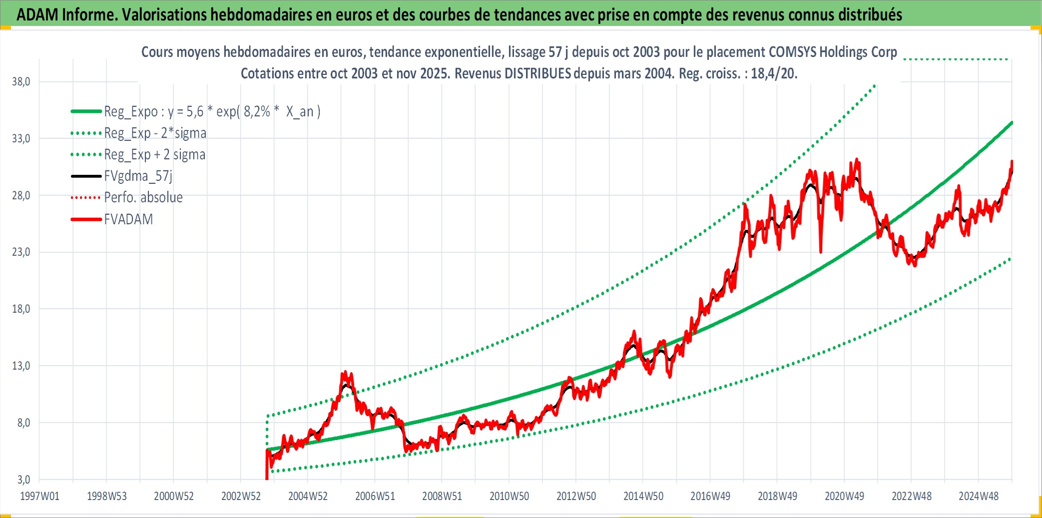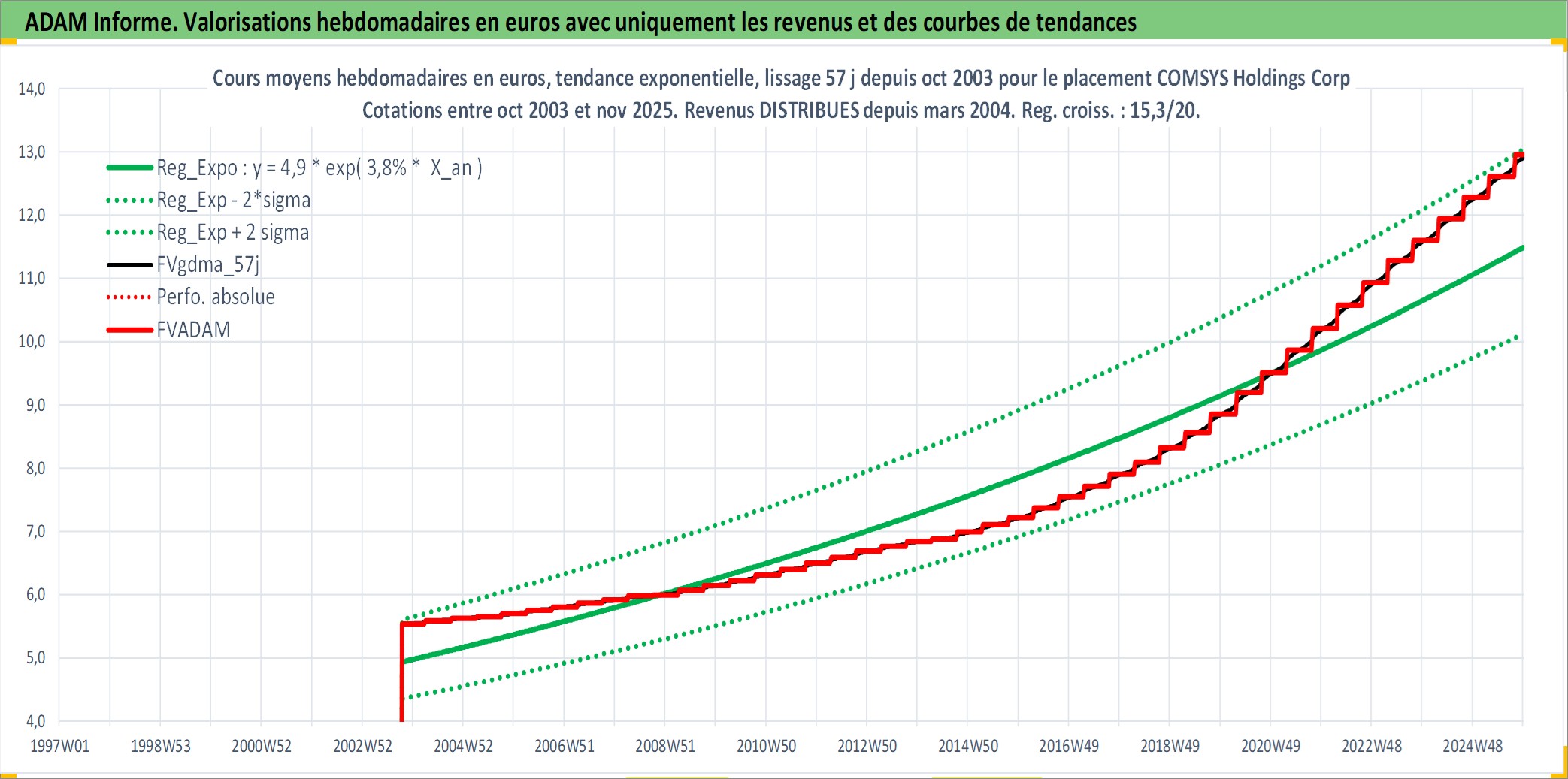 Site dédié aux investisseursPage dédiée sur site financeAnalyse des valorisations hebdomadaires de l'action COMSYS Holdings Corp. Cet actif est cote en JPY. Les valorisations sont en contrevaleur EURO et couvrent les semaines 2003W41 a 2025W48. Les revenus de cet actif financier sont pris en compte depuis la semaine 2004W13. La note ESG de cet actif n'est pas connue.