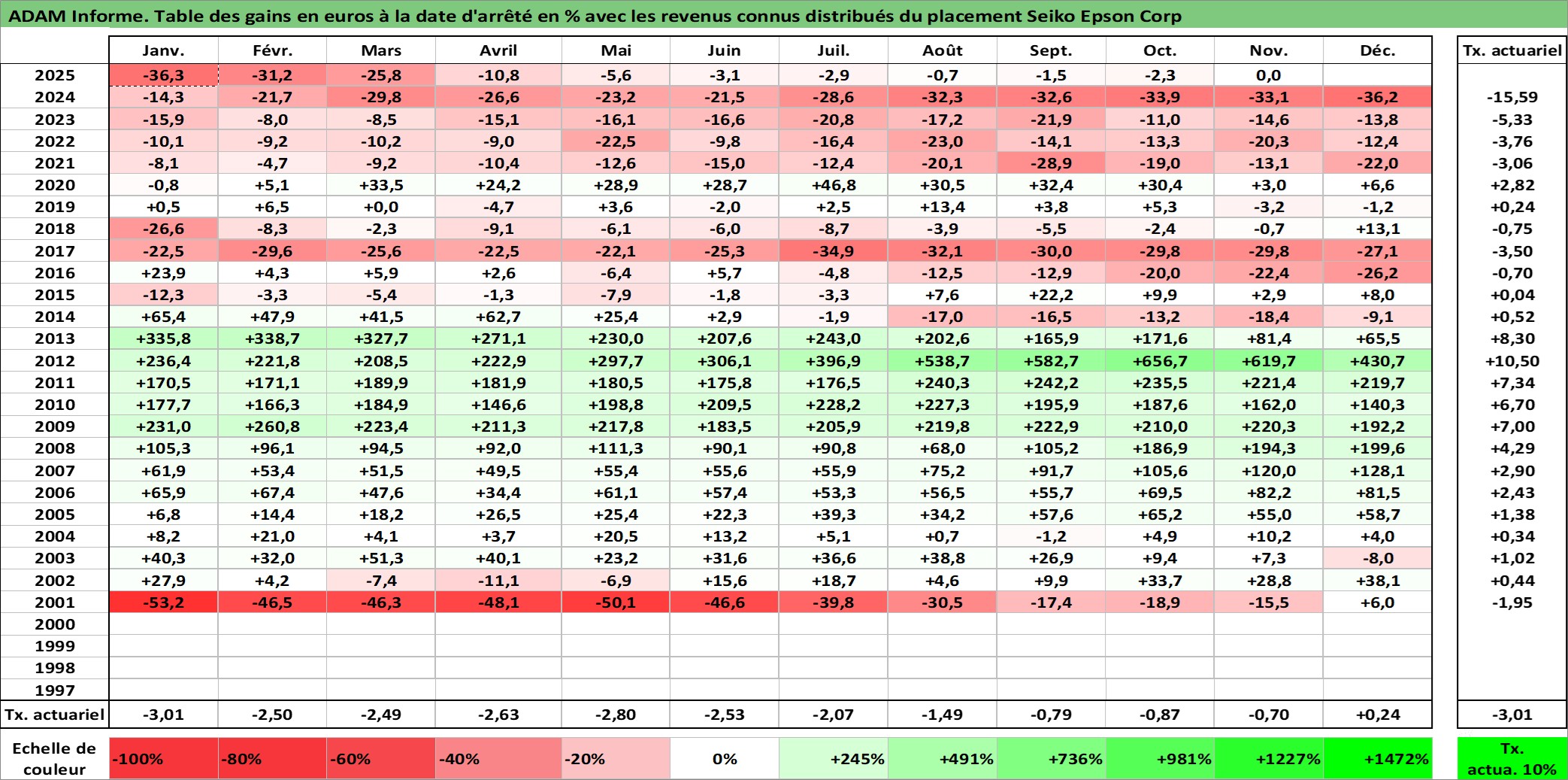 Dernière perfo 10 ans en %