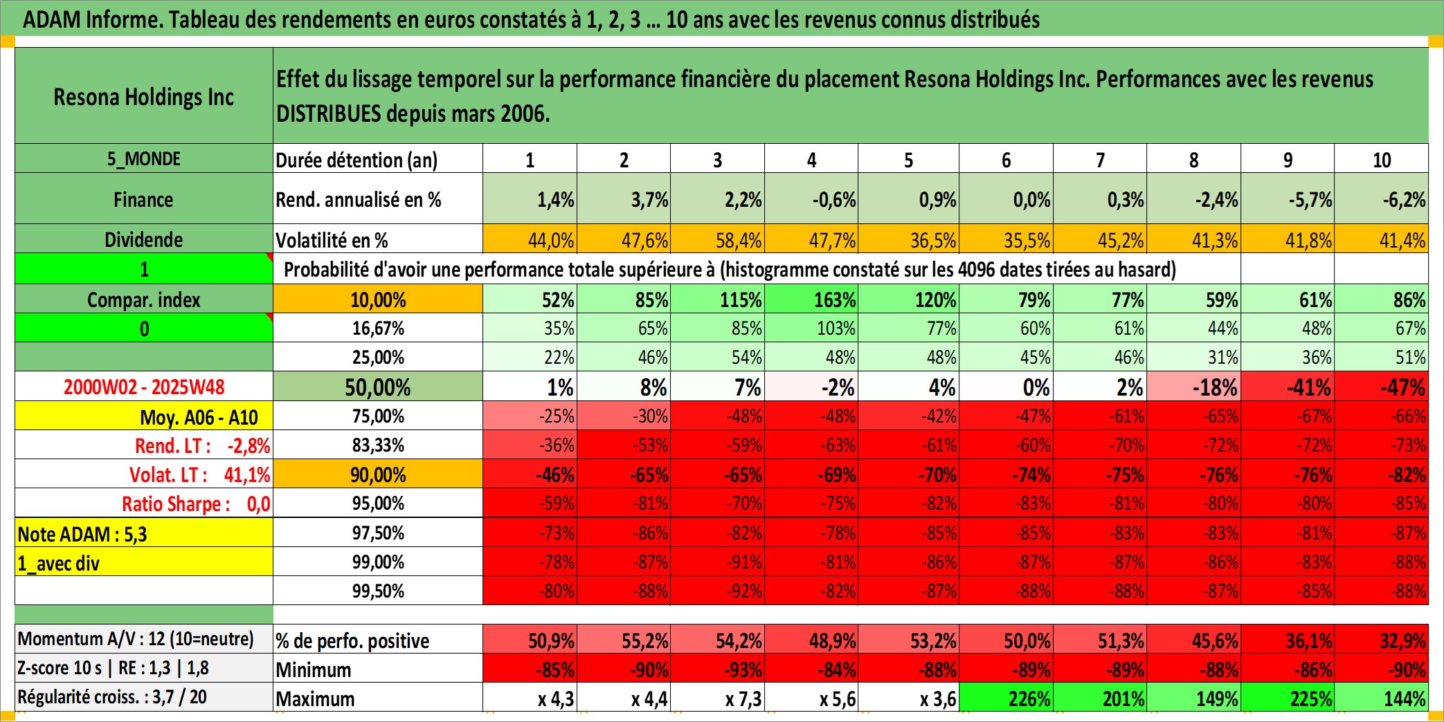 Site dédié aux investisseursPage dédiée sur site financeAnalyse des valorisations hebdomadaires de l'action Resona Holdings Inc. Cet actif est cote en JPY. Les valorisations sont en contrevaleur EURO et couvrent les semaines 2000W02 a 2025W48. Les revenus de cet actif financier sont pris en compte depuis la semaine 2006W13. La note globale ESG de cet actif est estimee a 8.0 (apres rebasage entre 0 et 20).